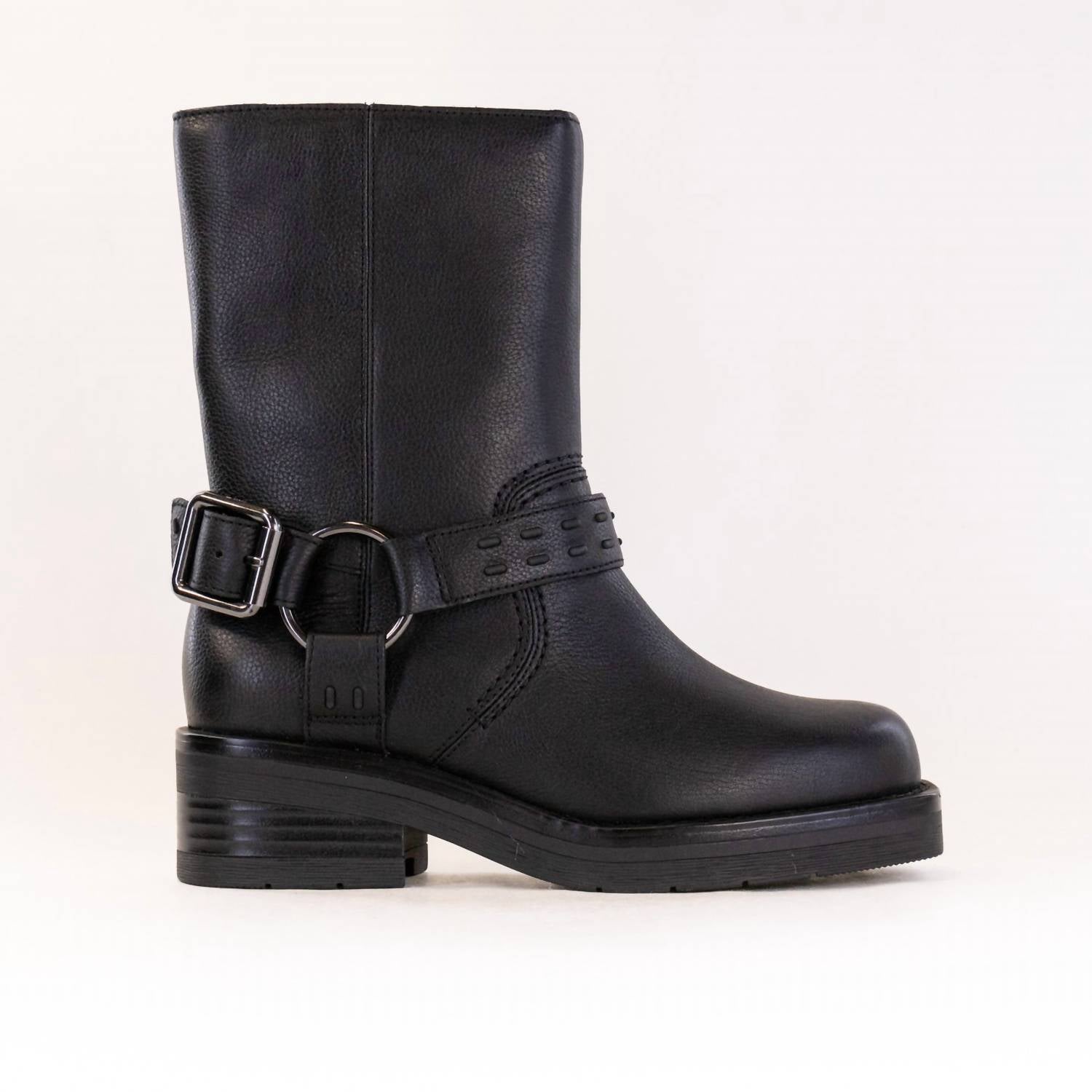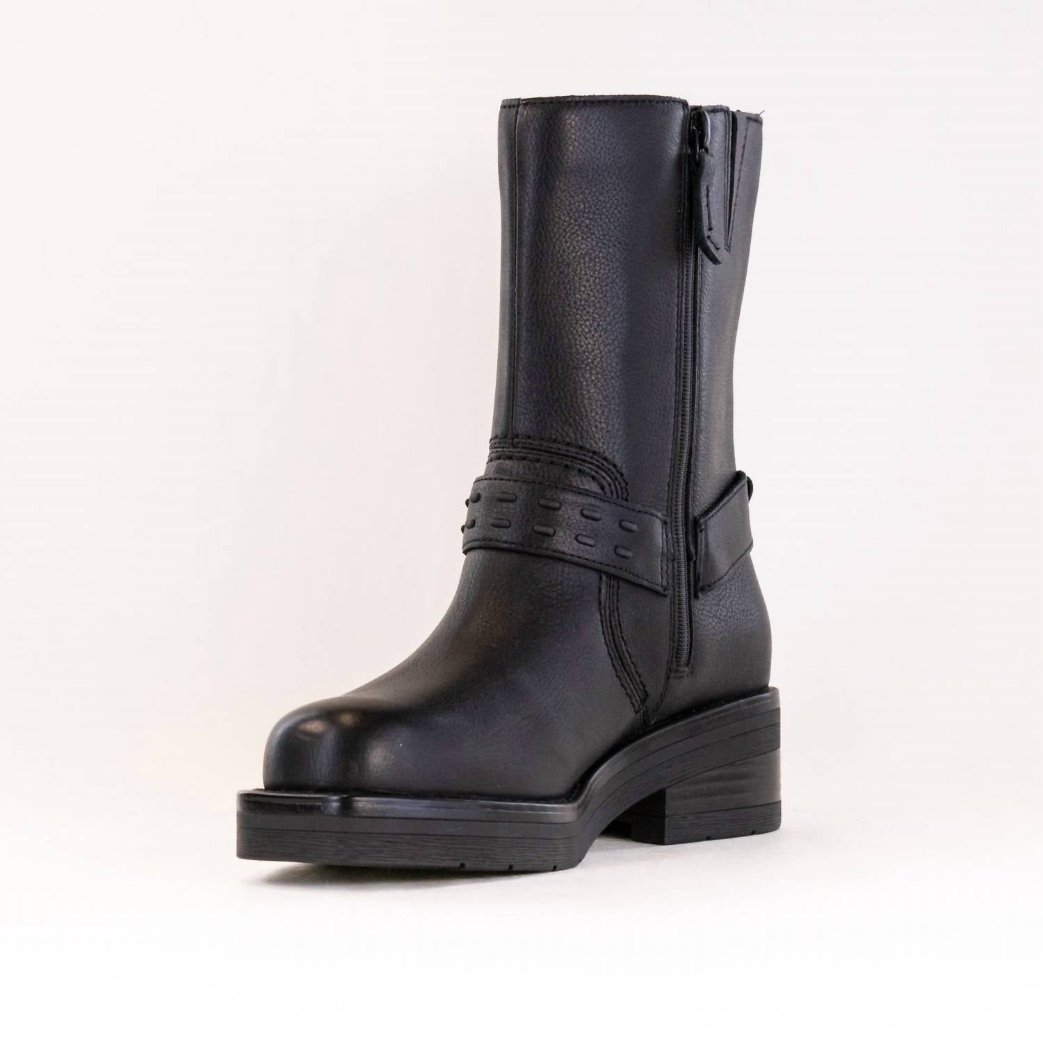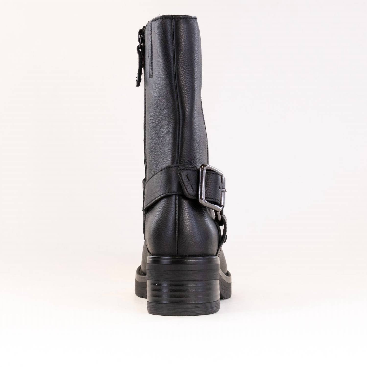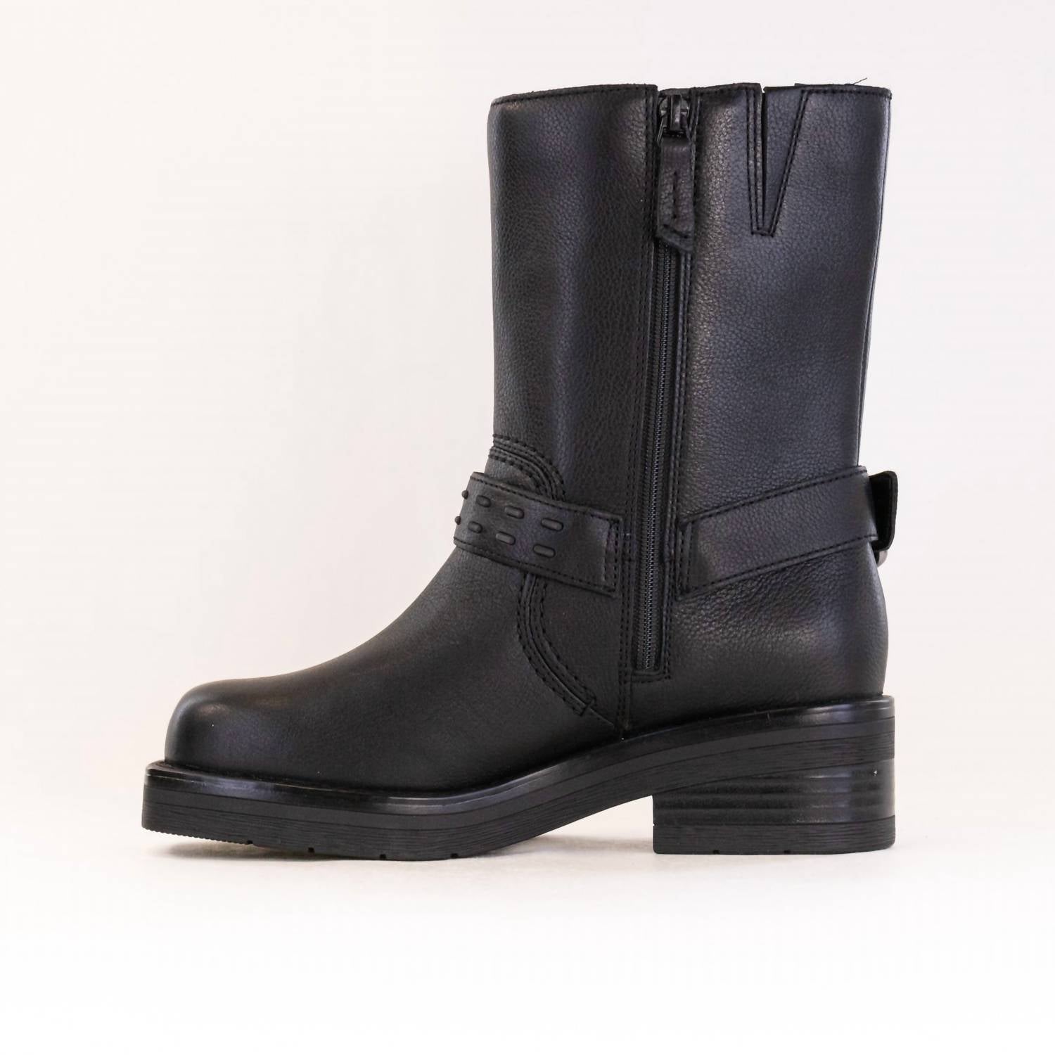 A stylish boot with a comfortable fit and the perfect amount of height. These classic boots are the perfect addition to any outfit and can be worn season after season. Experience the Women's Rebelle Up Boot by Clarks, expertly crafted for style and comfort. Featuring a premium black leather upper with Clarks-branded buckle detailing, these boots ensure a secure fit with a side zipper closure and elastic insert. Designed with a removable Contour Cushion footbed and a lightweight TPR sole, they promise lasting comfort and traction. Heel height: 2 inches. Perfect for a monochrome trend and ideal for spring vacations, these boots blend biker aesthetics with practical elegance.