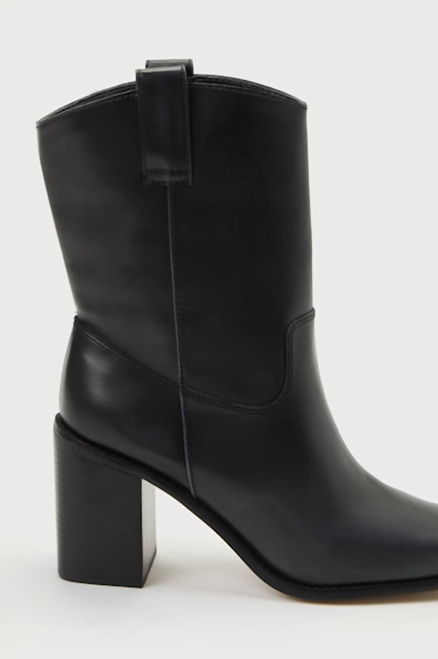 A stylish boot with a comfortable fit and the perfect amount of height. These classic boots are the perfect addition to any outfit and can be worn season after season. Elevate your ensemble with the Matisse Women's Dane Square Toe Boot, a chic addition to any wardrobe with its Western flair and sleek design. These ankle boots are crafted from genuine black leather, featuring a distinct tapered square toe and a 6" shaft height for a striking silhouette. They slip on effortlessly, showcasing Western-inspired seam detailing and a 3" classic stacked block heel. Imported with a cushioned insole and rubber sole for comfort and grip, they're perfect for fall adventures and are designed to present a trendy, pre-worn distressed look.