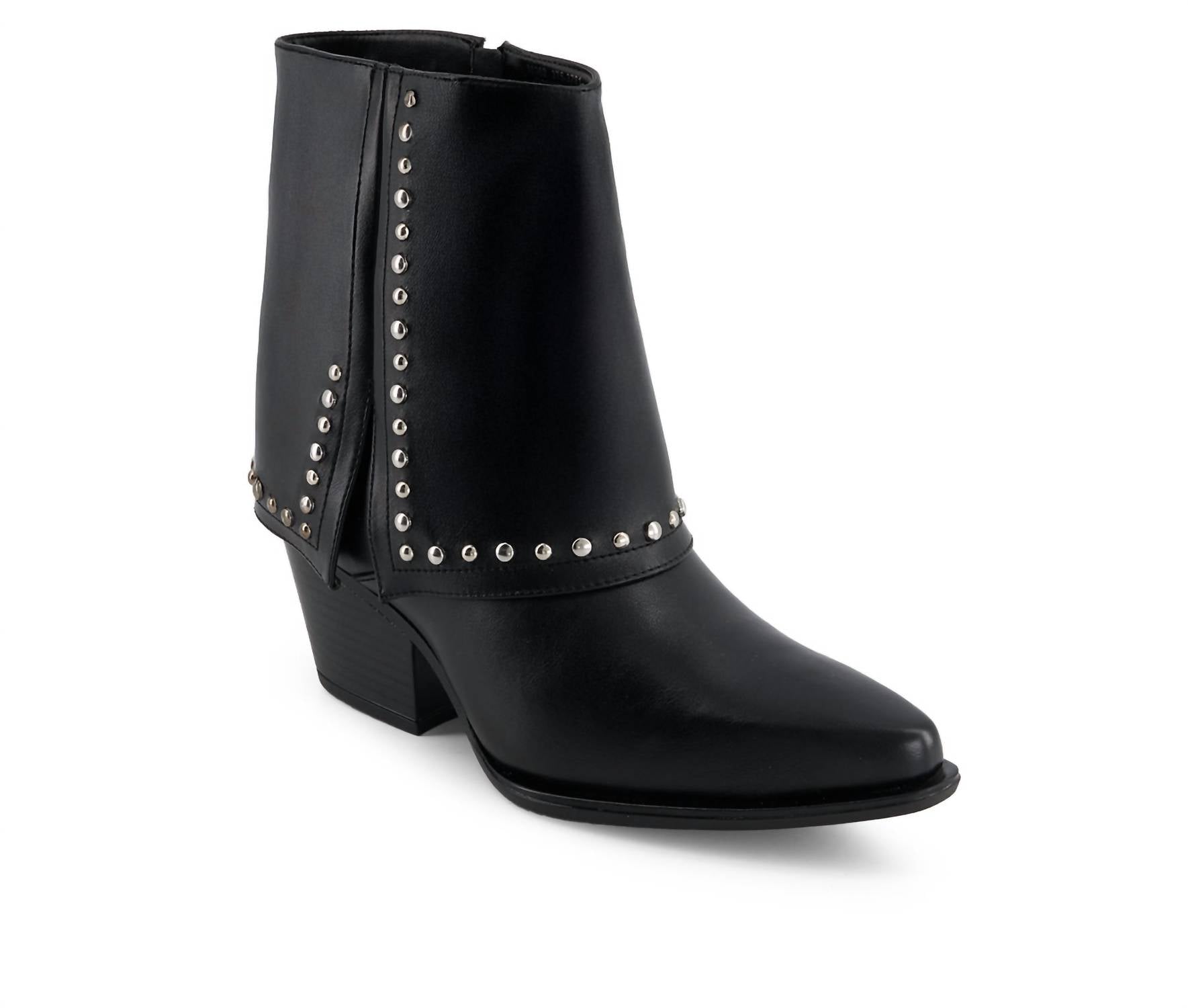 A stylish boot with a comfortable fit and the perfect amount of height. These classic boots are the perfect addition to any outfit and can be worn season after season. Introducing the Andrea Women's Foldover Fashion Boots, crafted from luxurious leather in a sophisticated black that elegantly complements any ensemble. These heeled boots feature a pointed toe and a block heel, standing at a comfortable 1.57 inches, perfect for the low heel enthusiast seeking style and comfort. Ideal for holiday parties or embracing streetwear trends this fall, these boots effortlessly add a chic element to your wardrobe. Made with a cushioned foam insole for added comfort, they promise a lightweight design that's perfect for Thanksgiving gatherings and beyond.