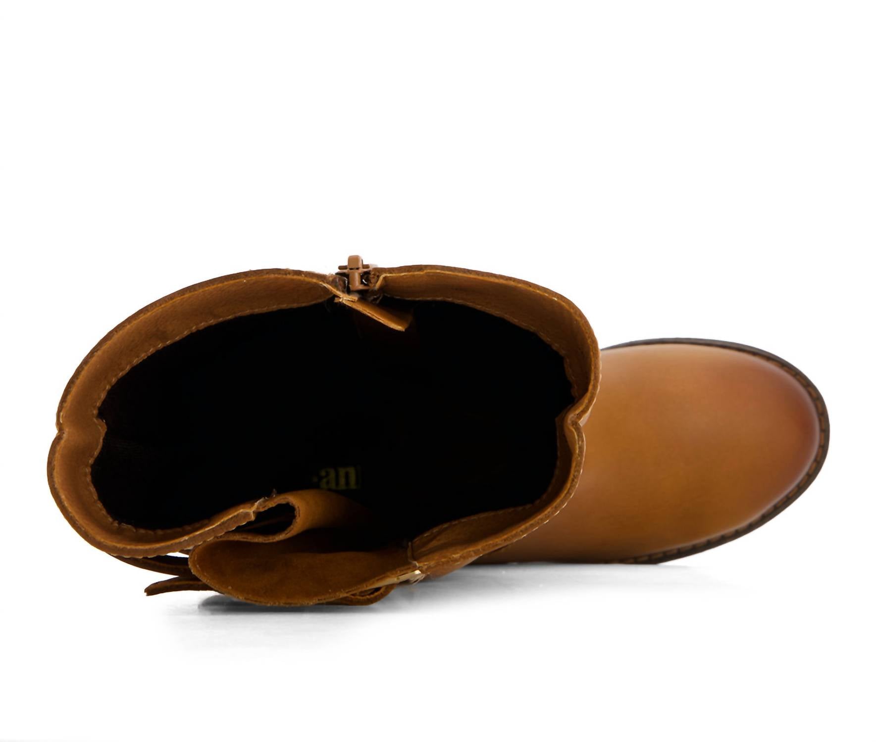 Step out in confidence and showcase your impeccable taste with these fashionable and versatile boots. Their classic style will have you reaching for these boots season after season. Step into sophistication with the Andrea Women's Genuine Leather Tall Riding Boots in classic brown. Crafted from premium leather, these boots boast a round toe design and a versatile block heel measuring 1.5 inches high, perfect for travel and streetwear trends. Their lightweight build and cushioned foam insole ensure comfort without sacrificing style, making them a summer staple. Ideal for any occasion, especially the 4th of July celebrations.