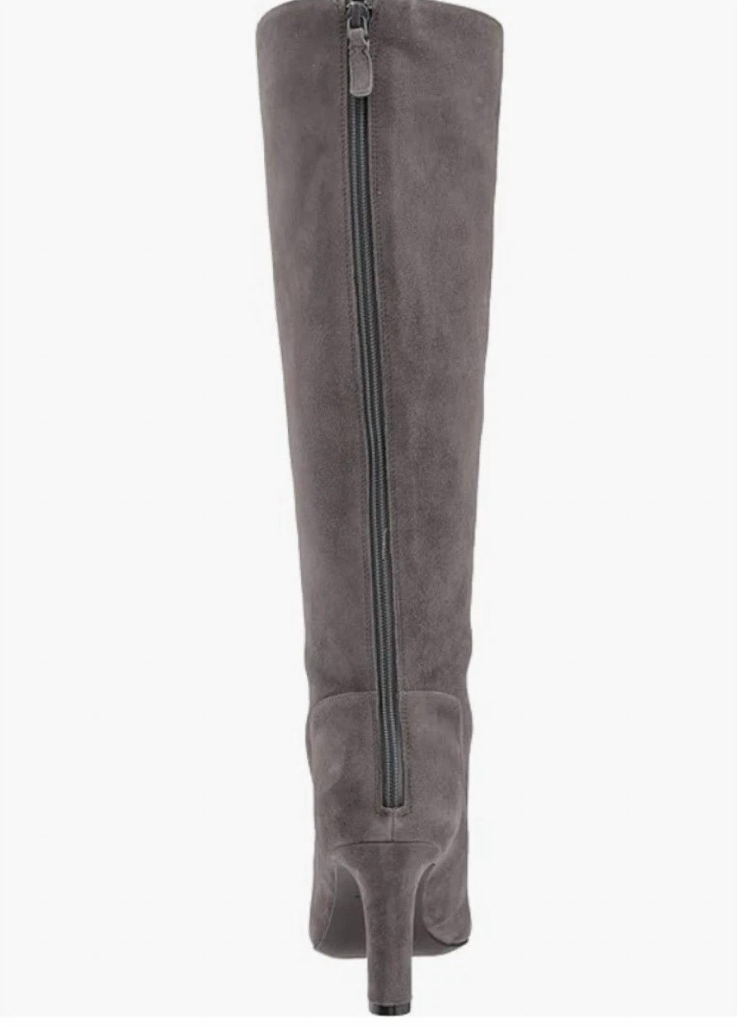 Upgrade your shoe game with these classic heeled boots, designed to merge sophistication and style. Comfortable enough for long days or a night out on the town. Modern comfort meets a versatile design with the Cole Haan Arlean Boot Supple suede upper material Back-zip closure Soft pointed toe Soft fabric lining Padded non-removable insole Wrapped heel Suede Leather Upper, Synthetic Lining & Sole Heel Height: 3 in Shaft height 14.75"