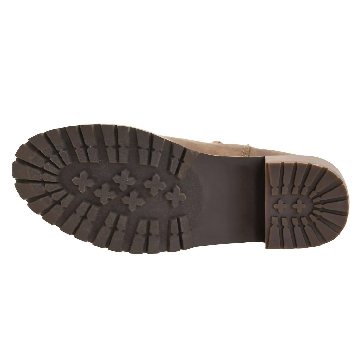 Upgrade your shoe game with these classic heeled boots, designed to merge sophistication and style. Comfortable enough for long days or a night out on the town. Elevate your fall wardrobe with the Women's Doohickey Boots by Corkys Footwear, crafted in a chic taupe shade perfect for any outfit. Designed with a mid-height 2.25-inch block heel, these boots provide just the right amount of lift without compromising on comfort. The round toe shape and stretchy panels offer easy on-and-off wear, while Corkys Soft memory foam insoles ensure all-day comfort. Proudly step into autumn with these stylish heeled boots.
