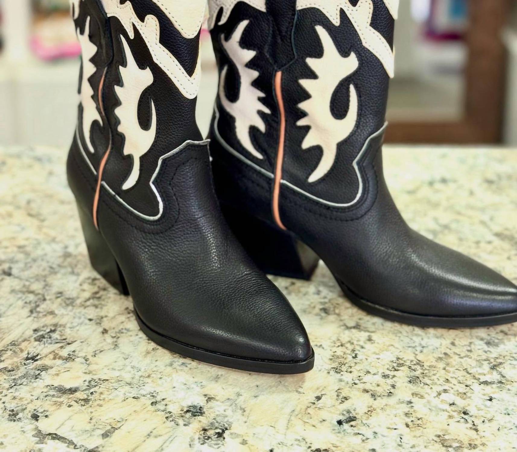 A stylish boot with a comfortable fit and the perfect amount of height. These classic boots are the perfect addition to any outfit and can be worn season after season. Step into the spotlight with Dolce Vita's Women's Landen Leather Boots, designed to captivate with their striking two-tone and on-trend western styling. Crafted from premium leather, these boots feature a pointed toe and a substantial block heel, perfect for making a statement. Ideal for music festivals or any standout fall occasion, they blend authentic details with contemporary flair. With their bold design, these boots ensure you'll turn heads wherever you go.
