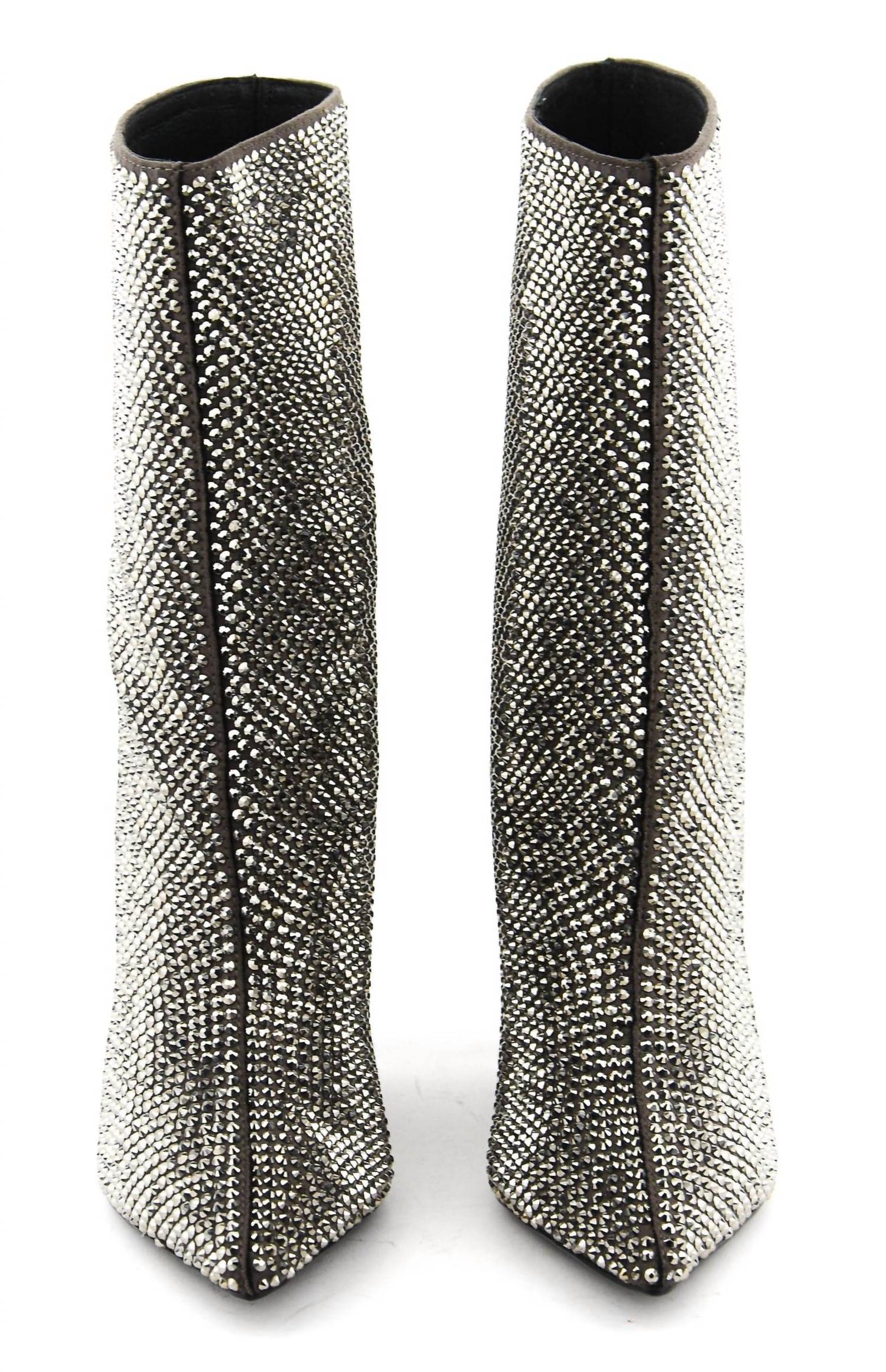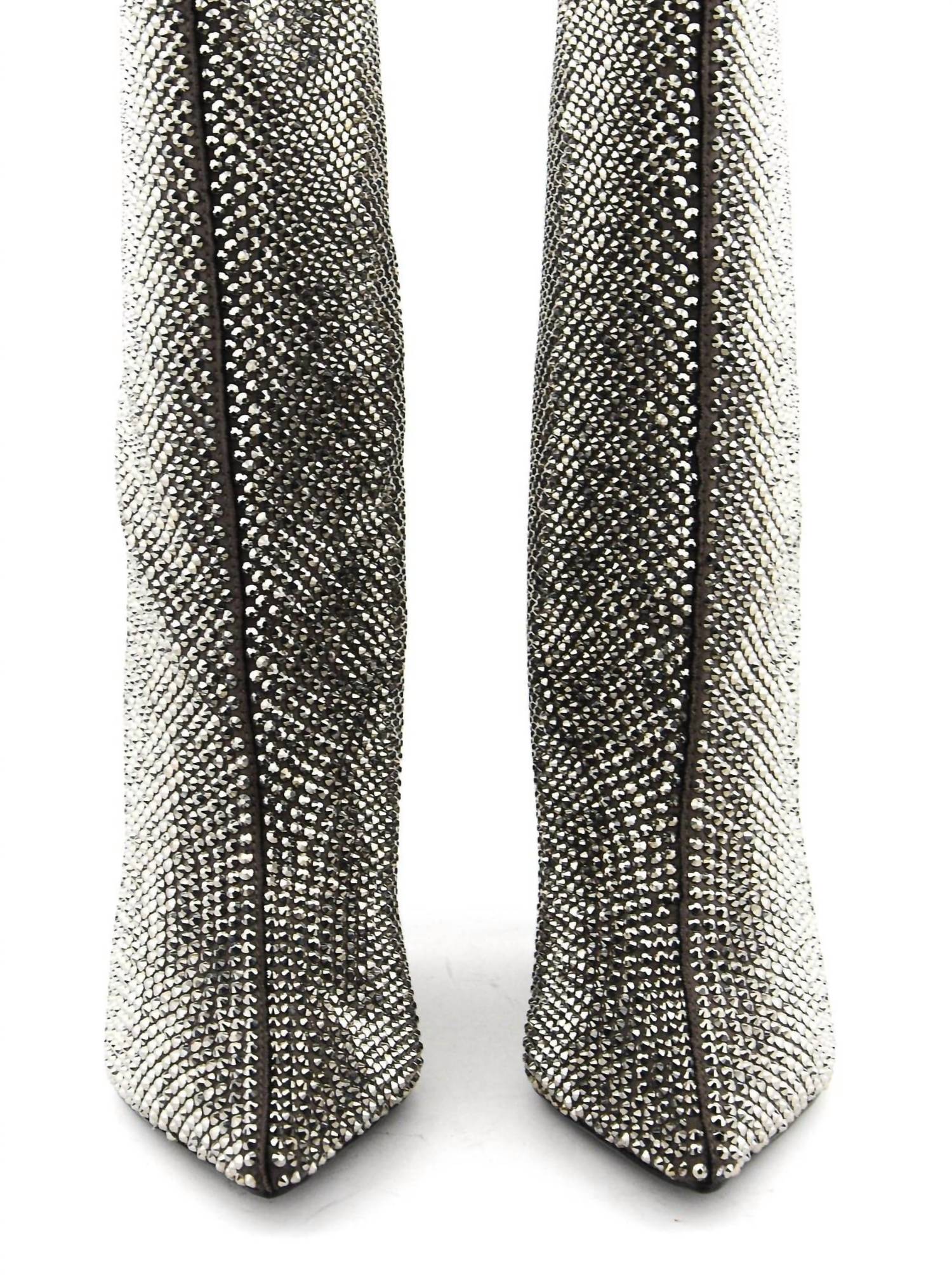 Step into elegance with the Women's Phoebe Glitter Botines Boots from LOLA CRUZ, perfect for your next evening event. These heeled boots in a striking lead color feature a pointed toe and stiletto heel, epitomizing quiet luxury for the fall season. Ideal for adding a touch of sparkle to your outfit, these boots are designed with fashion-forward style for the modern woman. Embrace sophistication and make a statement with these eye-catching boots.