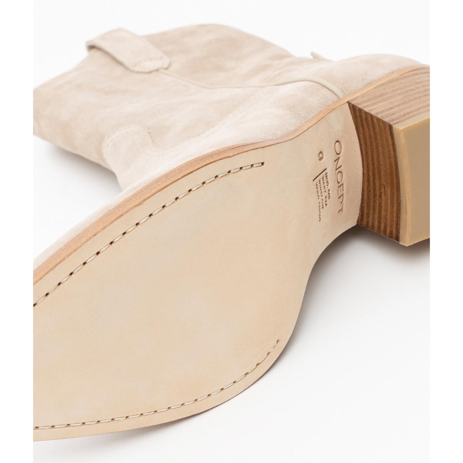 Upgrade your shoe game with these classic heeled boots, designed to merge sophistication and style. Comfortable enough for long days or a night out on the town. Step into elegance with the Winslow Block Heel Boot by Oncept, crafted from sumptuous Italian cashmere suede and lavishly lined with leather. Ideal for a Spring holiday party, these monochrome heeled boots feature an almond toe and a block heel, offering both style and comfort. Imported from Italy, they boast a bio foam sock cushion, reminiscent of sneaker insoles, and a recycled insole board for added sustainability. To maintain their pristine sand color, a protective spray is recommended.