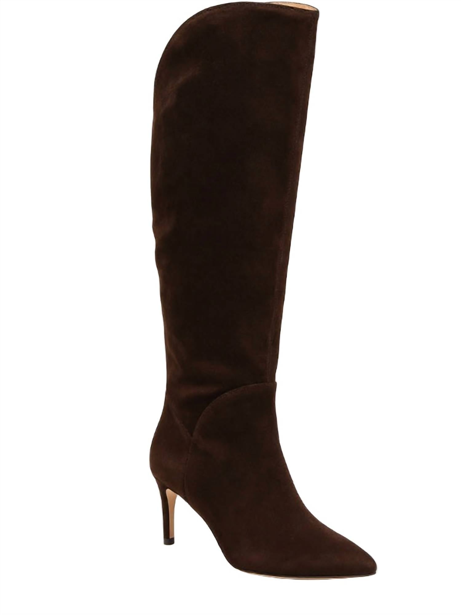 Step out in confidence and showcase your impeccable taste with these fashionable and versatile boots. Their classic style will have you reaching for these boots season after season. Step into quiet luxury with the Women's Gaia Suede Boots by Paris Texas, featuring a sophisticated pointed toe design in rich Ebano hue. Crafted from calf suede, these heeled boots offer a comfortable 60mm kitten heel, perfect for an elegant evening event. Made in Italy, they boast a timeless style that's just right for fall. Designer ID: PX1489 XV003.