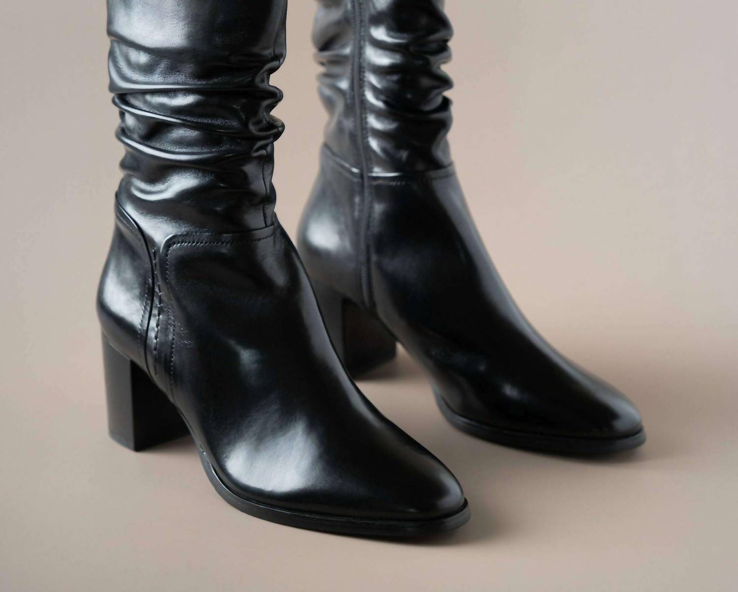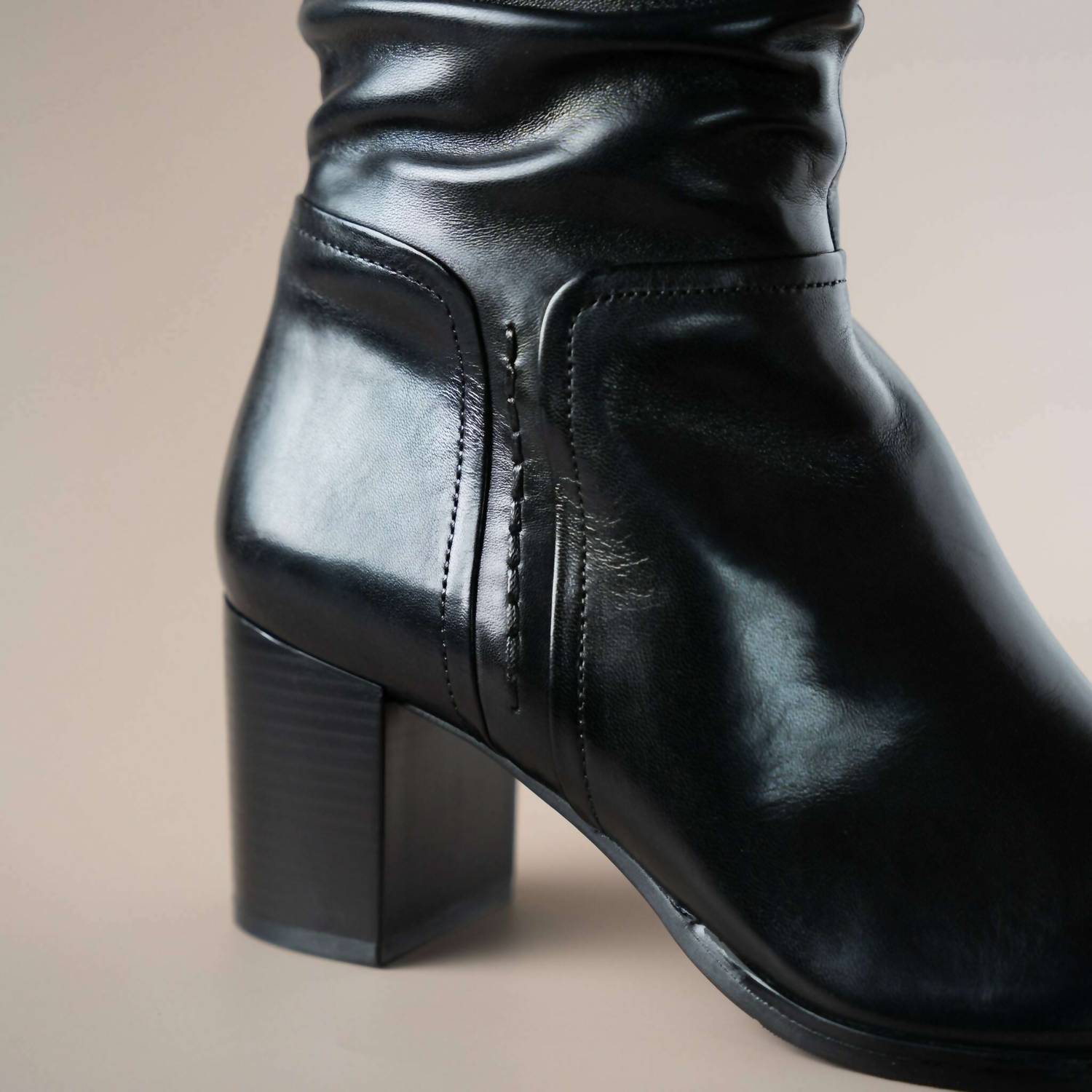 A stylish boot with a comfortable fit and the perfect amount of height. These classic boots are the perfect addition to any outfit and can be worn season after season. Elevate your shoe collection with the Women's Joan Boots by Regarde Le Ciel, designed to blend elegance and comfort effortlessly. These striking mid-calf heeled boots are crafted from luxurious black leather, featuring a supportive block heel with a 2.5" height, perfect for fall travel. Inside, a plush fleece lining and ample cushioning ensure all-day comfort, while the pointed toe and narrow fit offer a sleek silhouette. Ideal for quiet luxury enthusiasts, these boots promise style without sacrificing comfort.