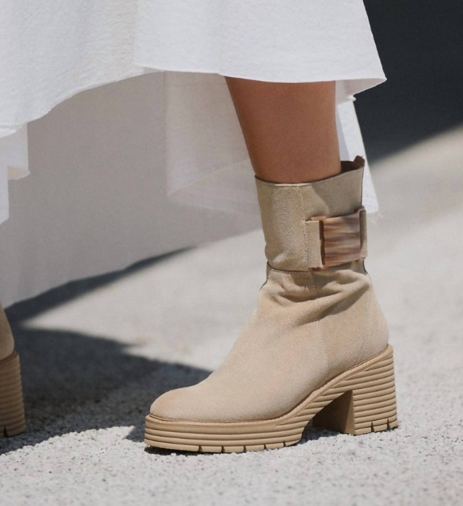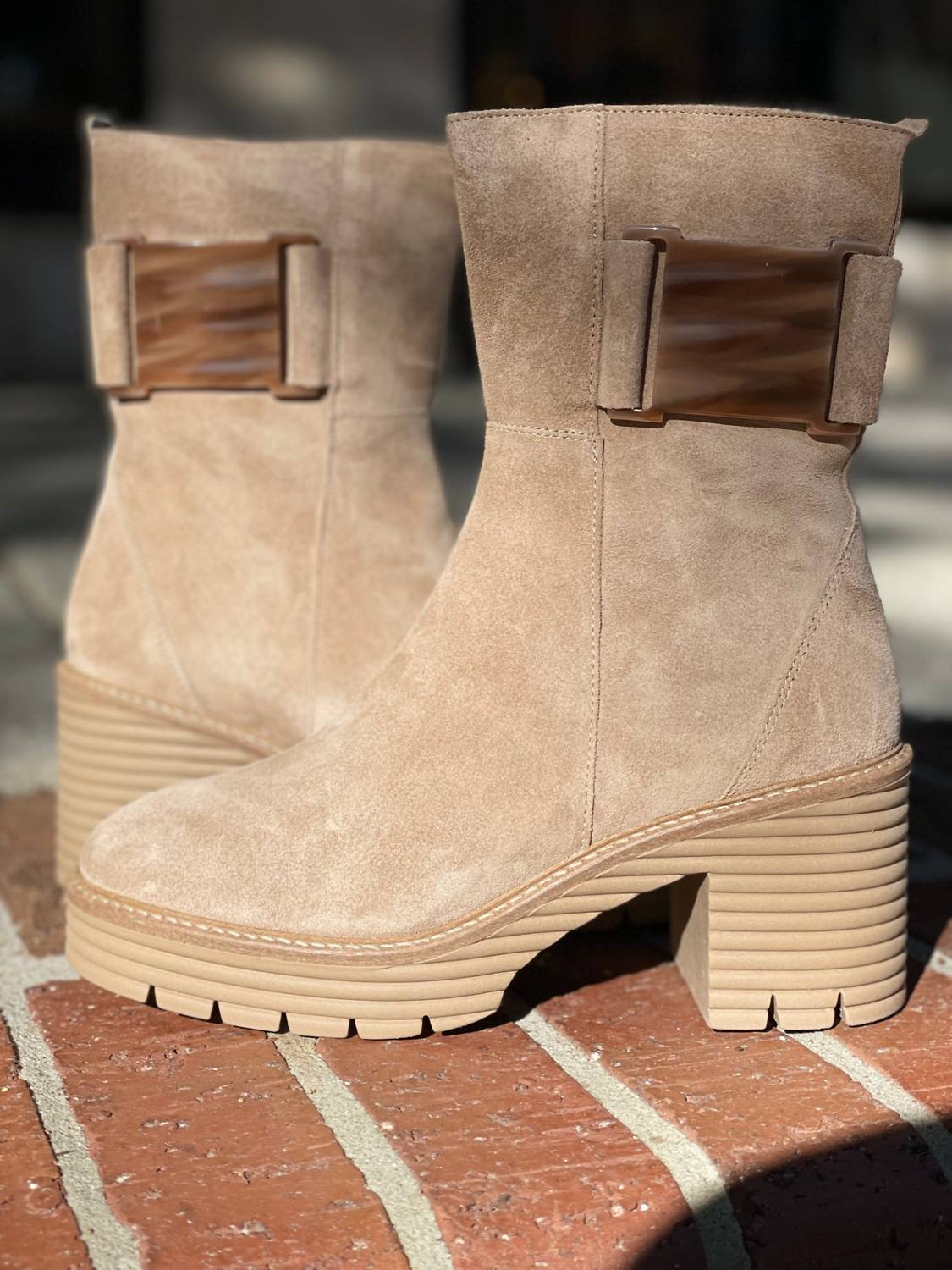 Step into sophistication with the Women's Montez Boots by Softwaves in a stylish Sahara hue. Crafted from luxurious suede, these minimalist boots feature a comfortable block heel and a chic round toe shape, perfect for your fall travel adventures. Ideal for Thanksgiving gatherings, the soft suede provides a trendy touch to any elegant outfit. These heeled boots are designed specifically for women, offering a perfect blend of style and comfort for the season.