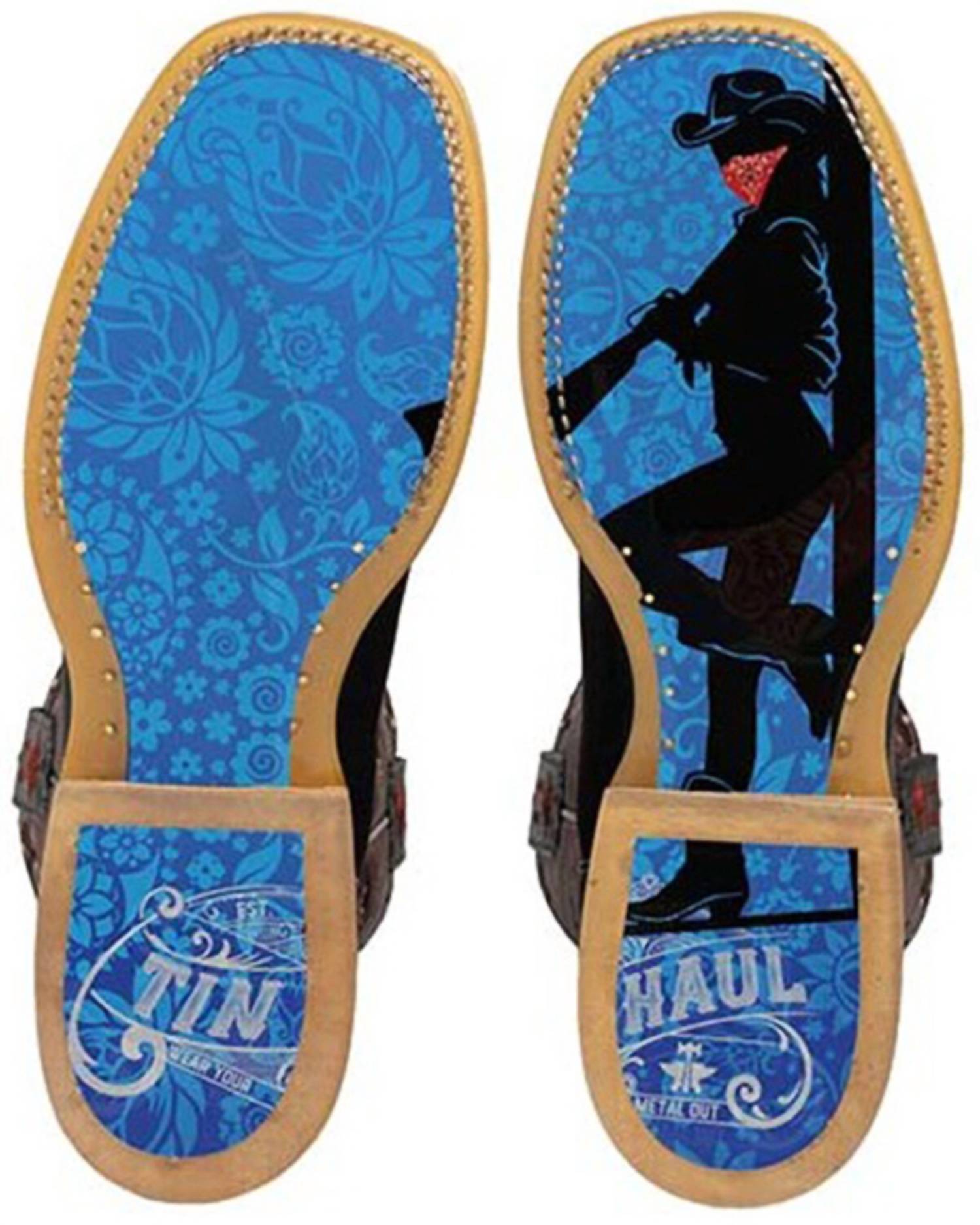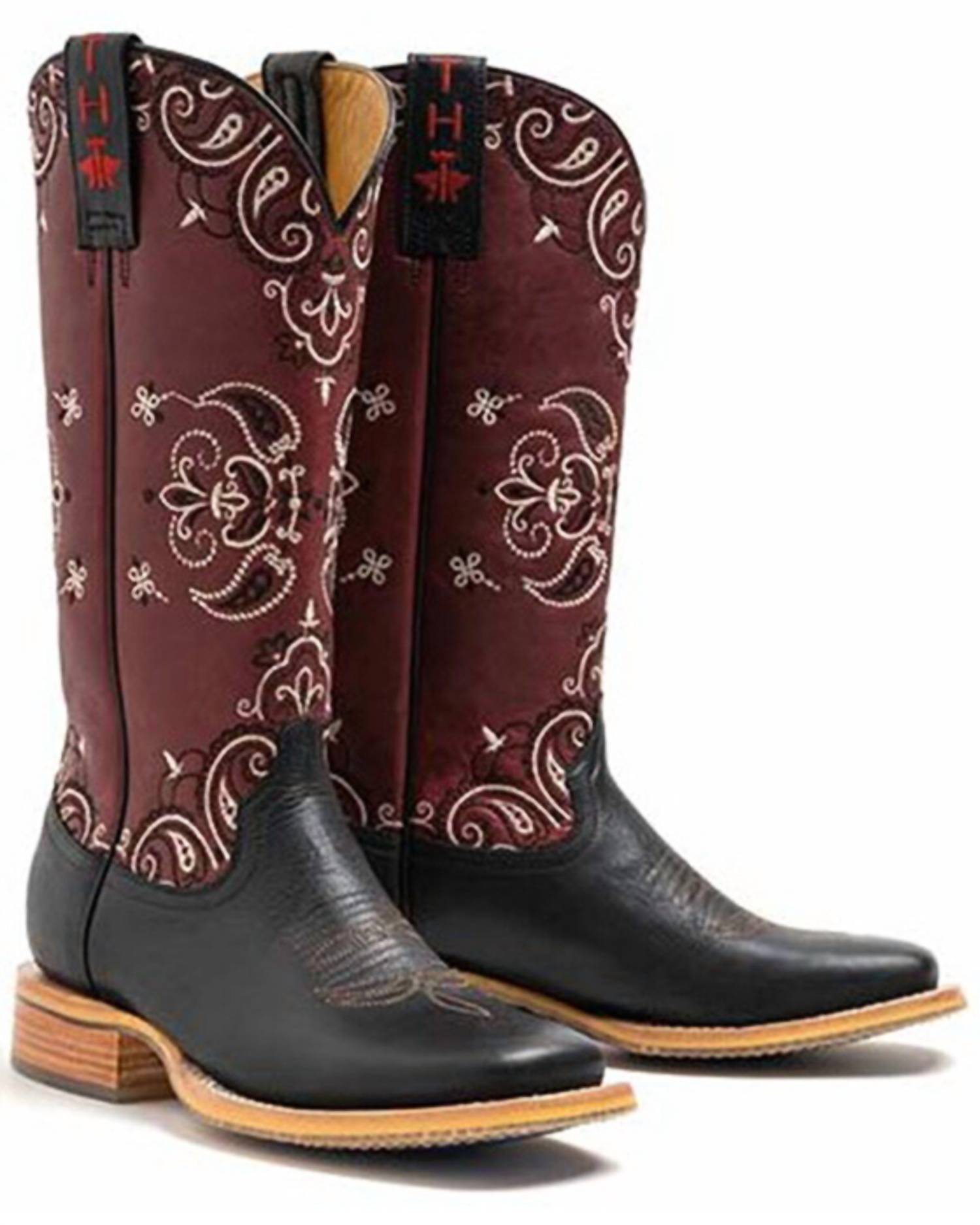 A stylish boot with a comfortable fit and the perfect amount of height. These classic boots are the perfect addition to any outfit and can be worn season after season. Step into Western flair with the Women's Bandida Boots by Tin Haul, an essential fall accessory. Crafted with a bandana print leather exterior, these heeled boots feature a comfortable 13" shaft and square toe design. Revel in cushion comfort supported by a walking heel and secure fit with a double welt construction. Complementing their style and function, these boots are tailored for Thanksgiving festivities and the Western trend.