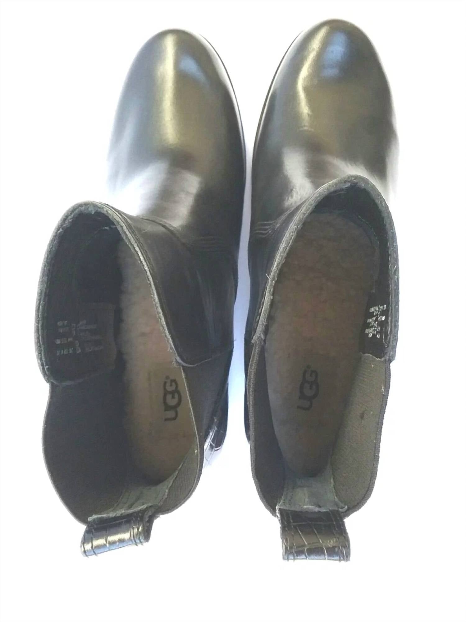 A stylish boot with a comfortable fit and the perfect amount of height. These classic boots are the perfect addition to any outfit and can be worn season after season. Presenting the Women's Keller Croco Ankle Boots by UGG, a stylish blend of edge and comfort in sleek black. Crafted with embossed leather, these boots offer a 5" shaft height and a walk-all-day 1.75" block heel. Striking the perfect balance between tough and comfortable, they feature a foam and sheepskin insole and a durable rubber outsole. With their round toe design and luxurious materials, these boots are imported and ready to elevate your style.