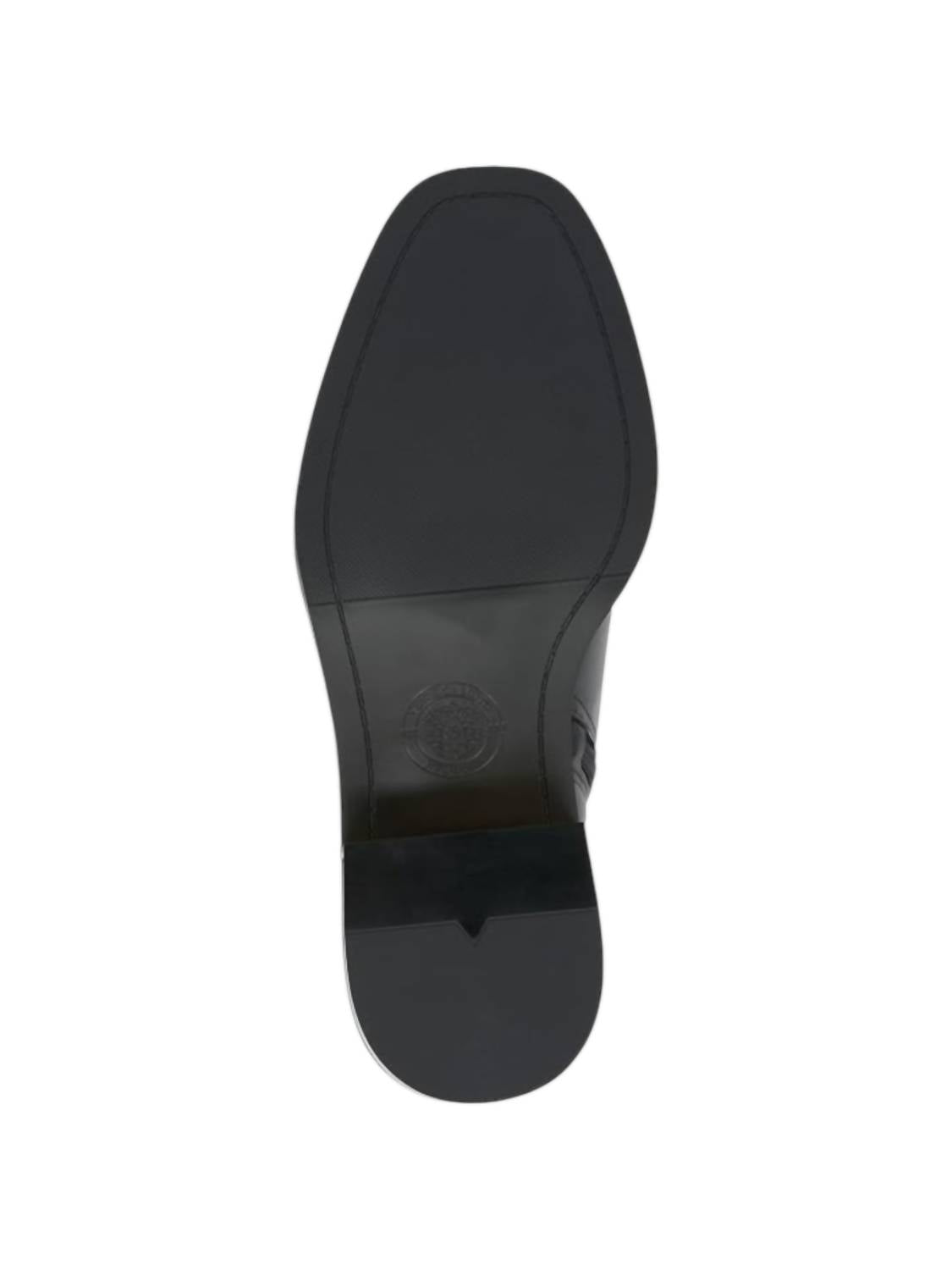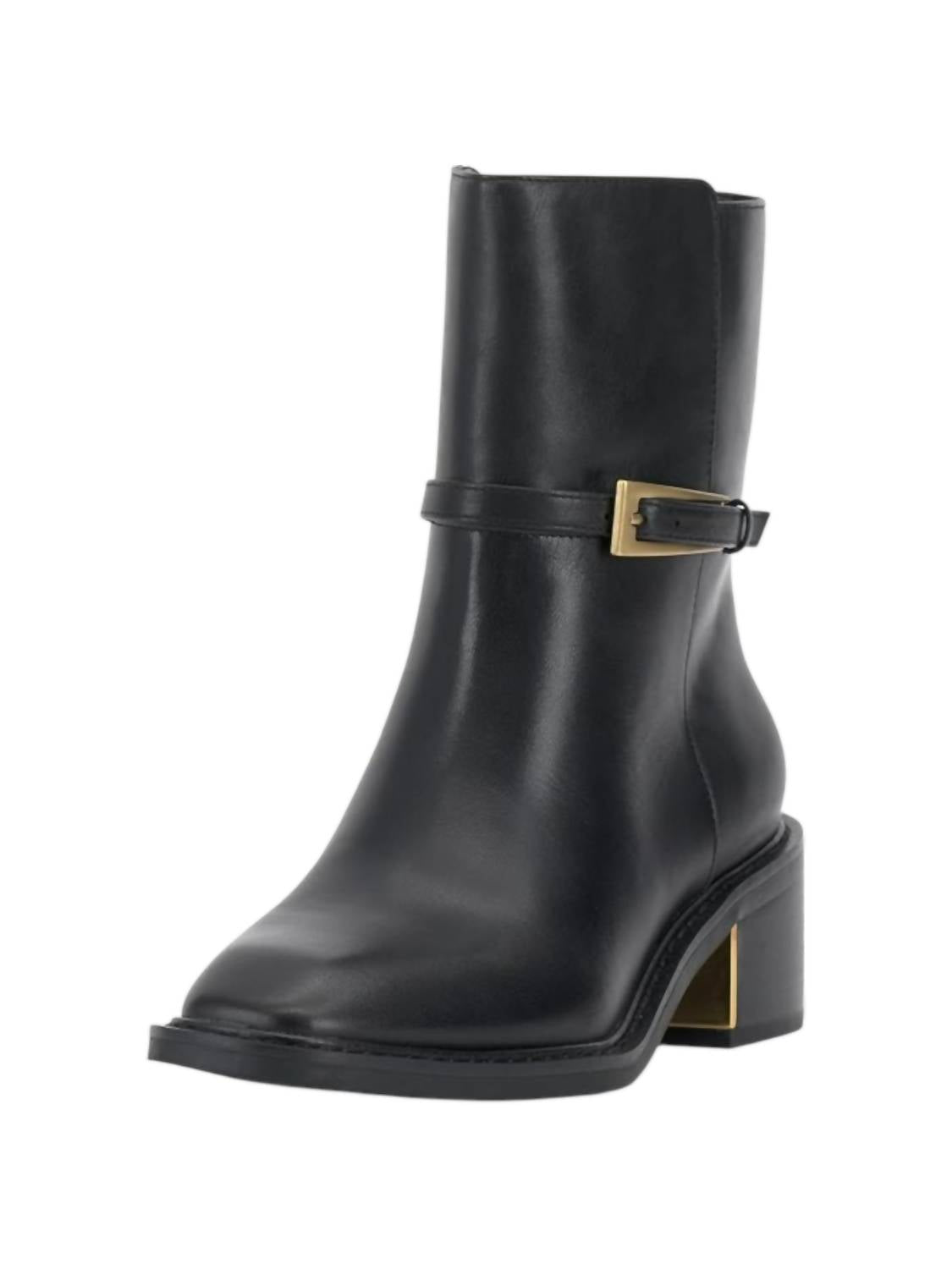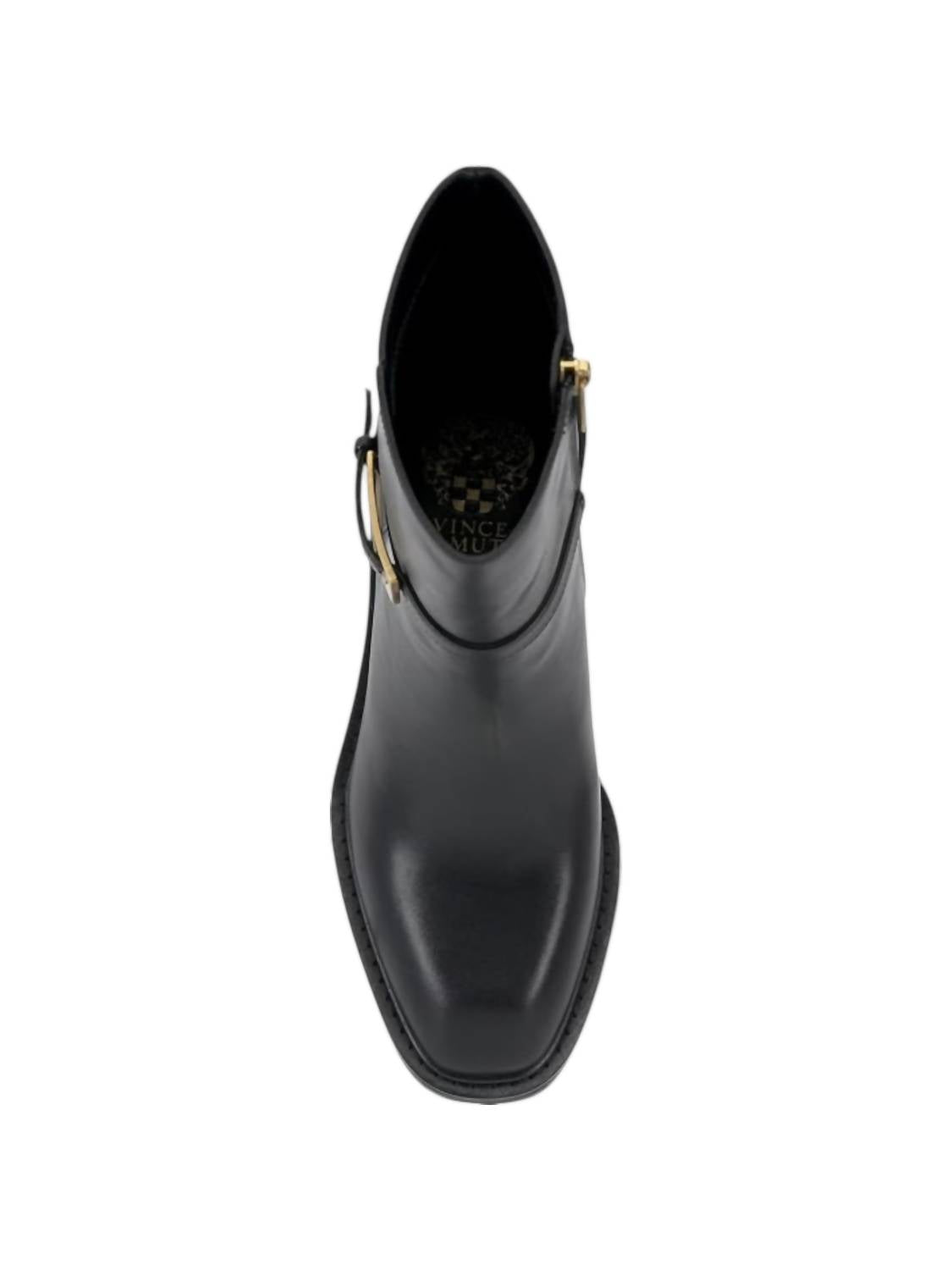 Upgrade your shoe game with these classic heeled boots, designed to merge sophistication and style. Comfortable enough for long days or a night out on the town. Step into sophistication with the Women's Gali Boots by Vince Camuto, crafted in rich black leather with a distinctly brushed hardware finish. These heeled boots flaunt a 1 3/4" block heel and a 6 1/2" shaft, offering both style and comfort. Featuring a chic squared-off toe, the boots are completed with a convenient side zip closure. Made with a synthetic lining and a rubber and synthetic sole, these imported gems are perfect for elevating any outfit.