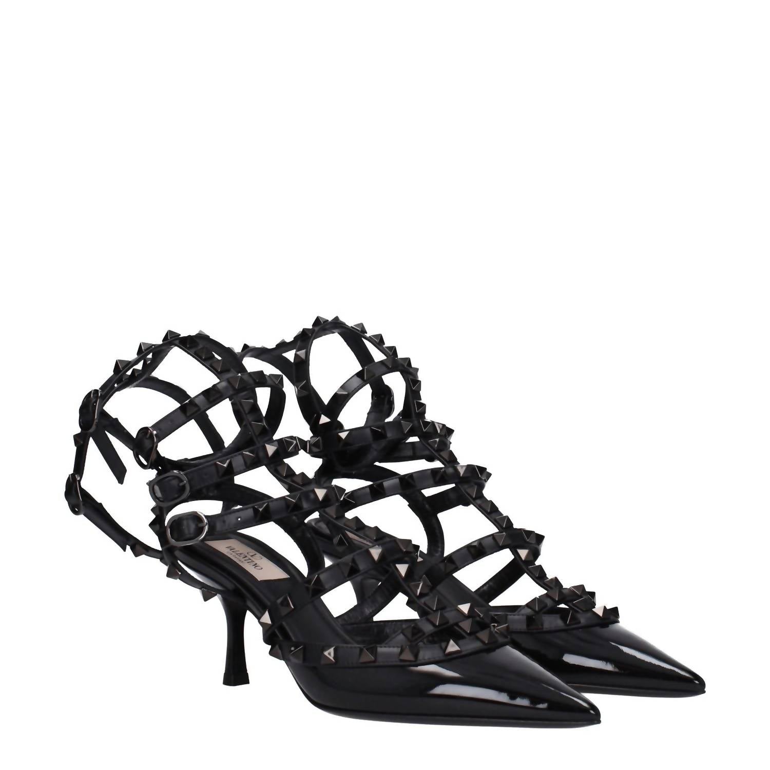 Don't be deceived, these heels are comfy as can be. Step into elegance with the Women's Rockstud Leather Stiletto Heels by Valentino Garavani, crafted in sleek patent leather. The sophisticated pointy toe design is complemented by a mid-height 7 cm heel, perfect for adding a touch of refinement to any ensemble. Featuring studs for a modern edge, these heels come with a stylish stiletto heel and secure with a buckle closure.