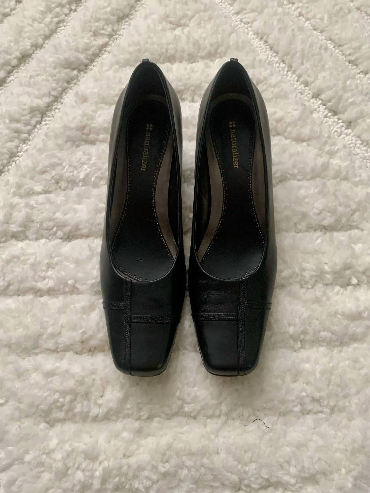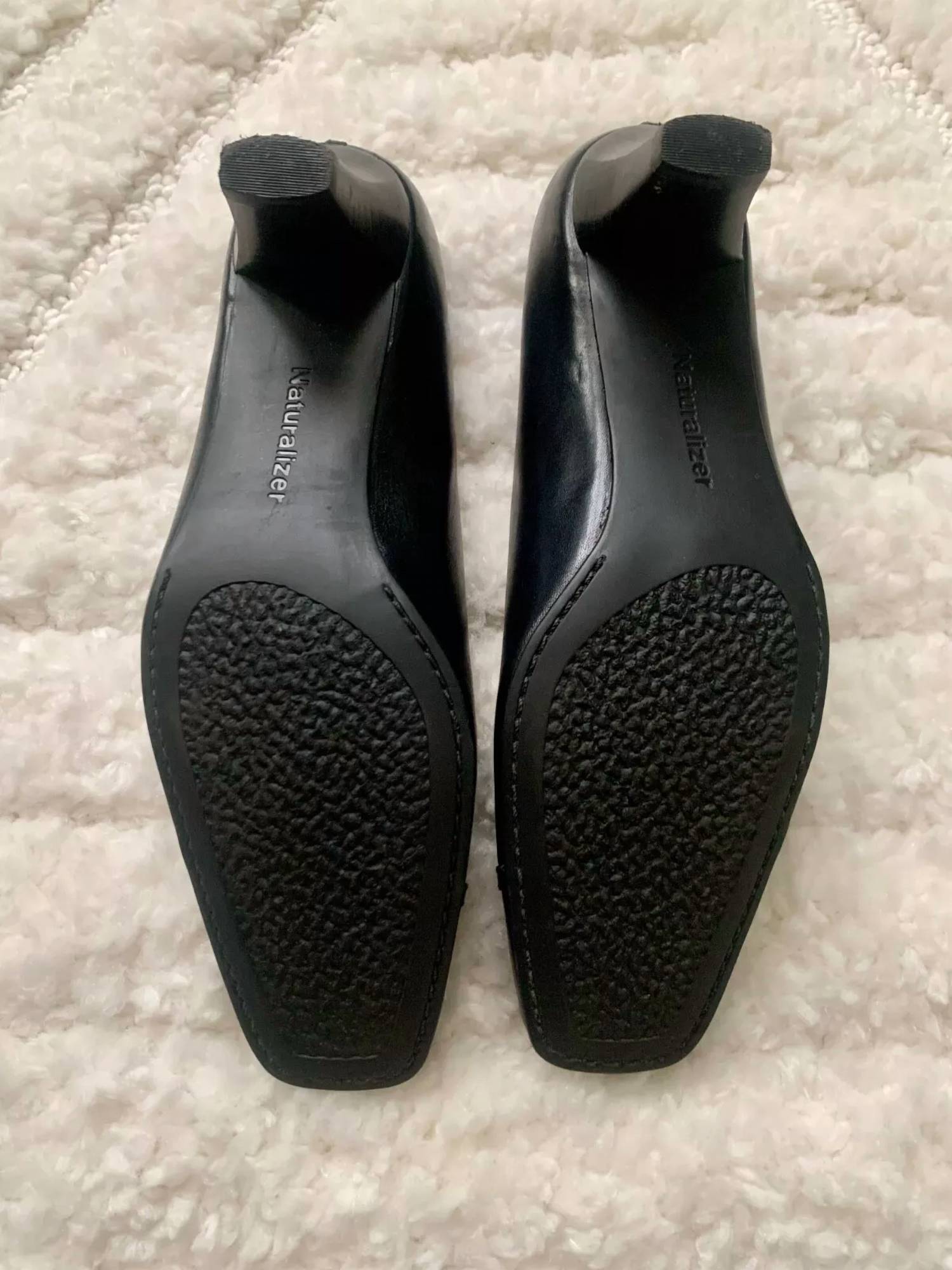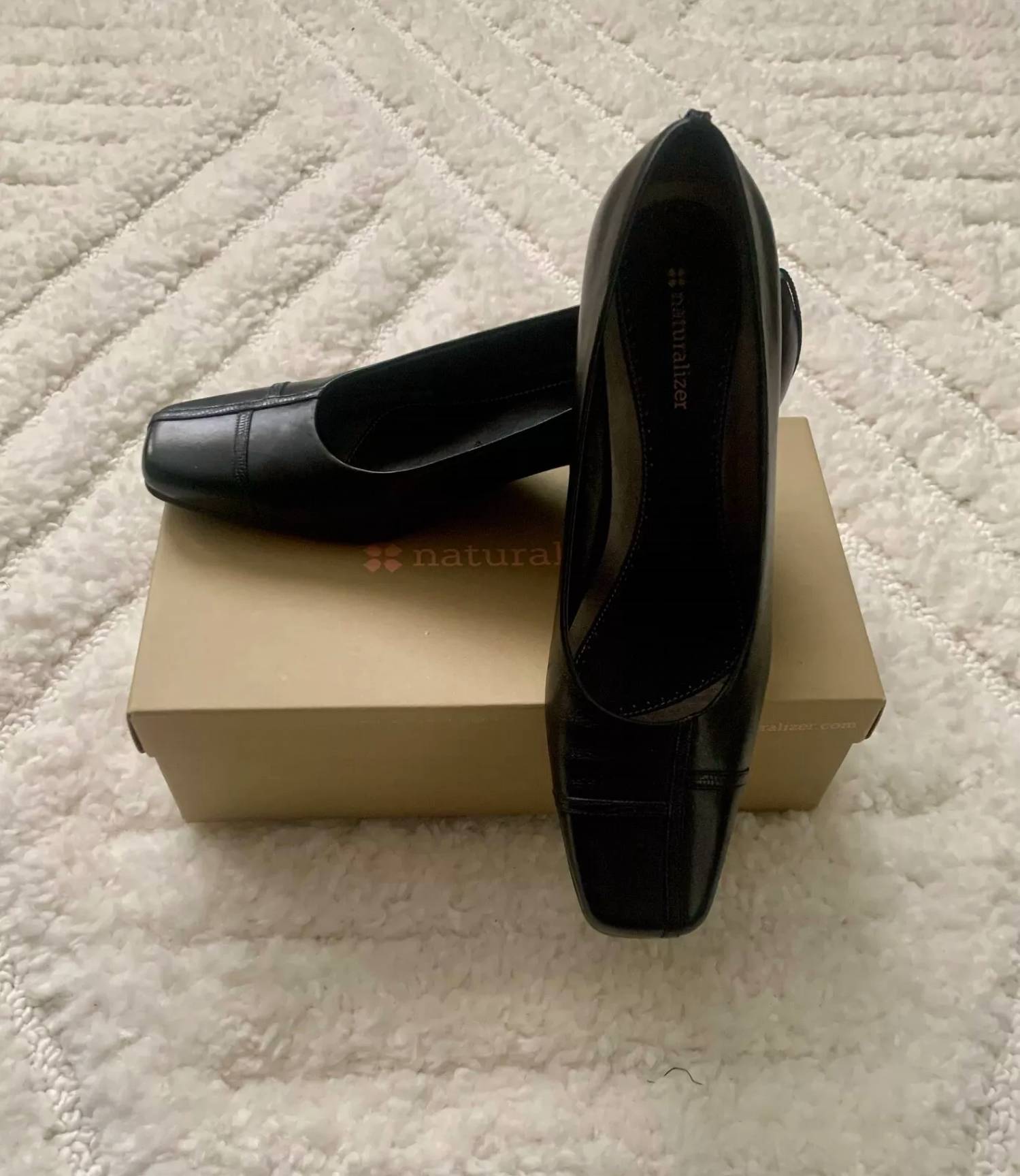 Pair these beauties with your favorite skinny jeans or dress for a night out on the town. Introducing the Women's Abdella Pump by Naturalizer, a chic addition to your workwear and evening event wardrobe. These pumps are crafted with black leather uppers and feature a squared toe design for a modern look. The 3/4" contoured rubber sole ensures both style and comfort. Complete with leather and fabric lining, these pumps are a reliable choice for any occasion.