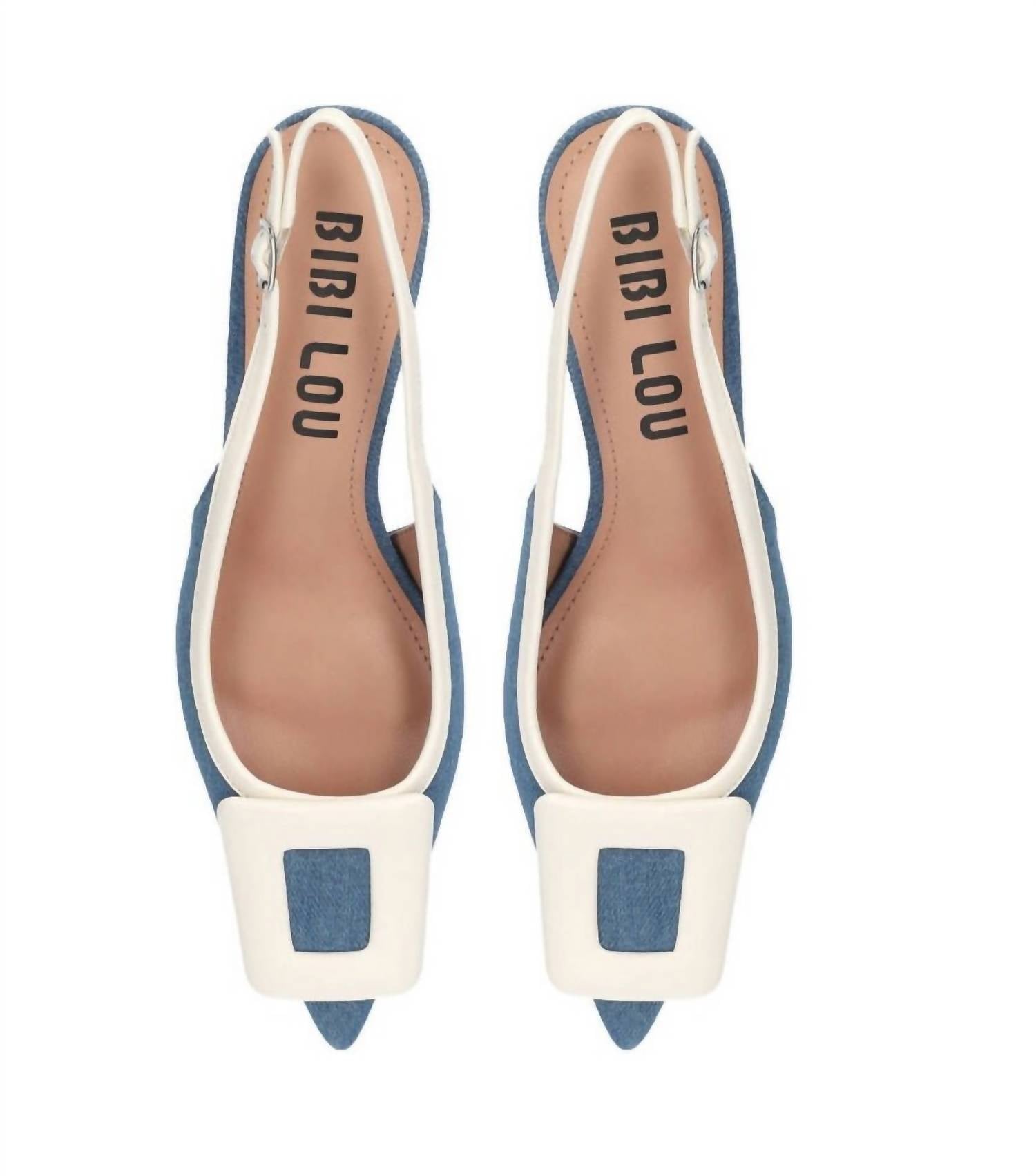 The perfect height for day to night. Step out in effortless elegance with the Women's Bonnie Heels from Bibi Lou, perfect for your next evening event. These blue denim slingback pumps boast a pointed toe design and a chic kitten heel, offering a mid-height lift at 2.16 inches. Crafted with a denim upper and complemented by a leather lining, they promise both style and comfort. The sleek buckle closure ensures a secure and confident fit.