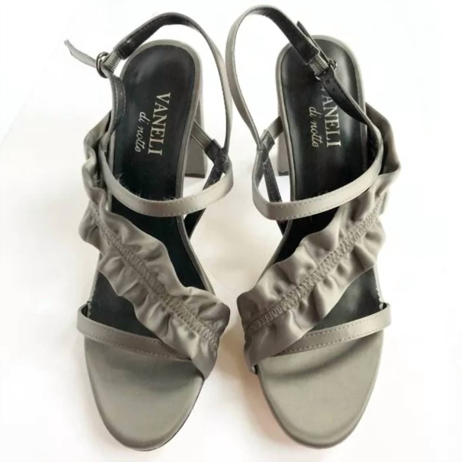 Step into glamour with the Women's Beyla Slingback Heels by VANELi. Made from luxurious leather, these stylish heels boast a sophisticated pewter satin finish. Designed for adult women, the heel height stands at an elegant 3.9 inches, complete with an open toe silhouette. Perfect for any occasion where you want to make a lasting impression.