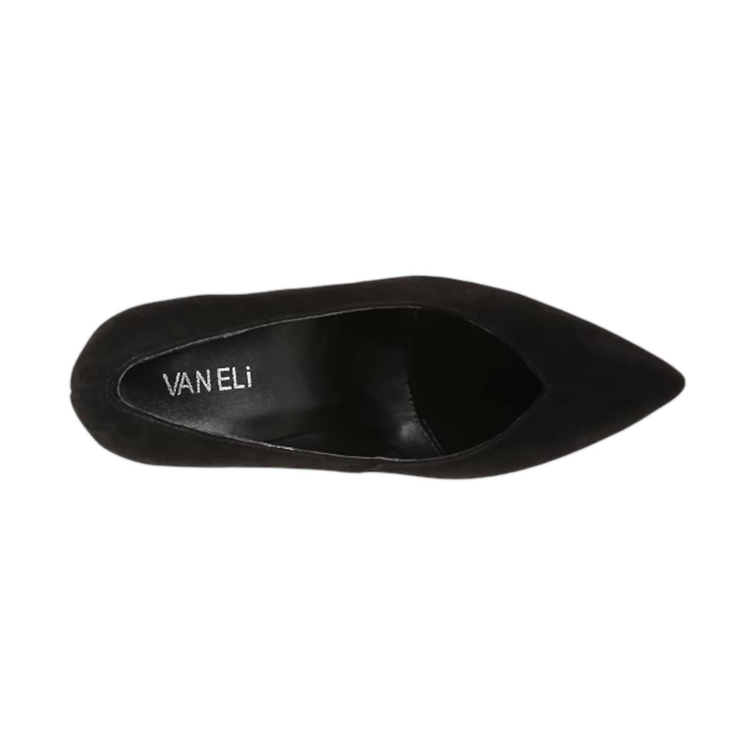 Step out in effortless style with the Ileane heels by VANELi, perfect for any sophisticated occasion. Crafted in a classic black suede, these women's heels feature a synthetic sole for lasting durability. Designed with a convenient pull-on closure, they boast an impressive 4 inches of heel height that adds a touch of elegance to your ensemble. Ideal for the modern adult woman seeking timeless fashion.