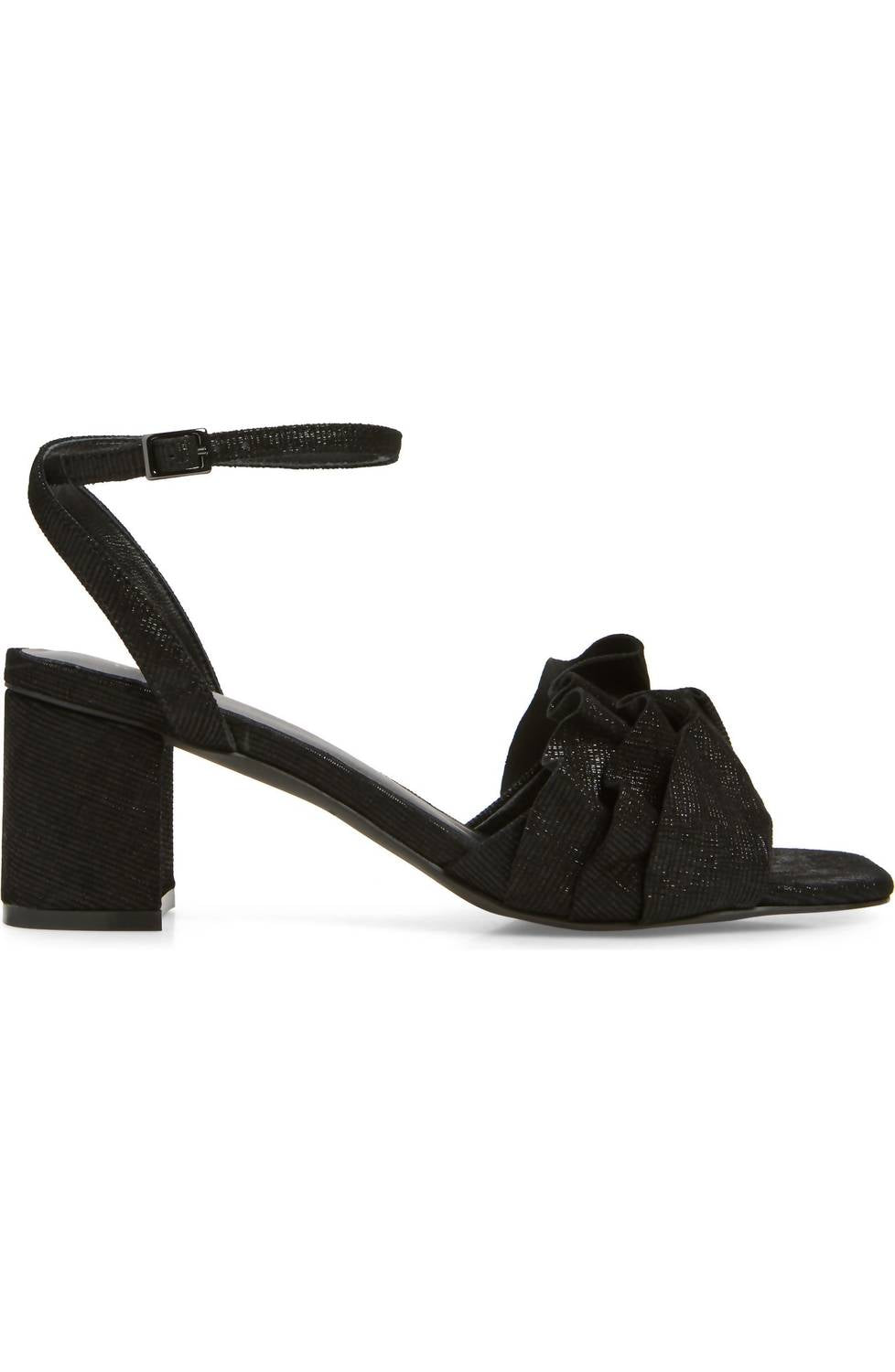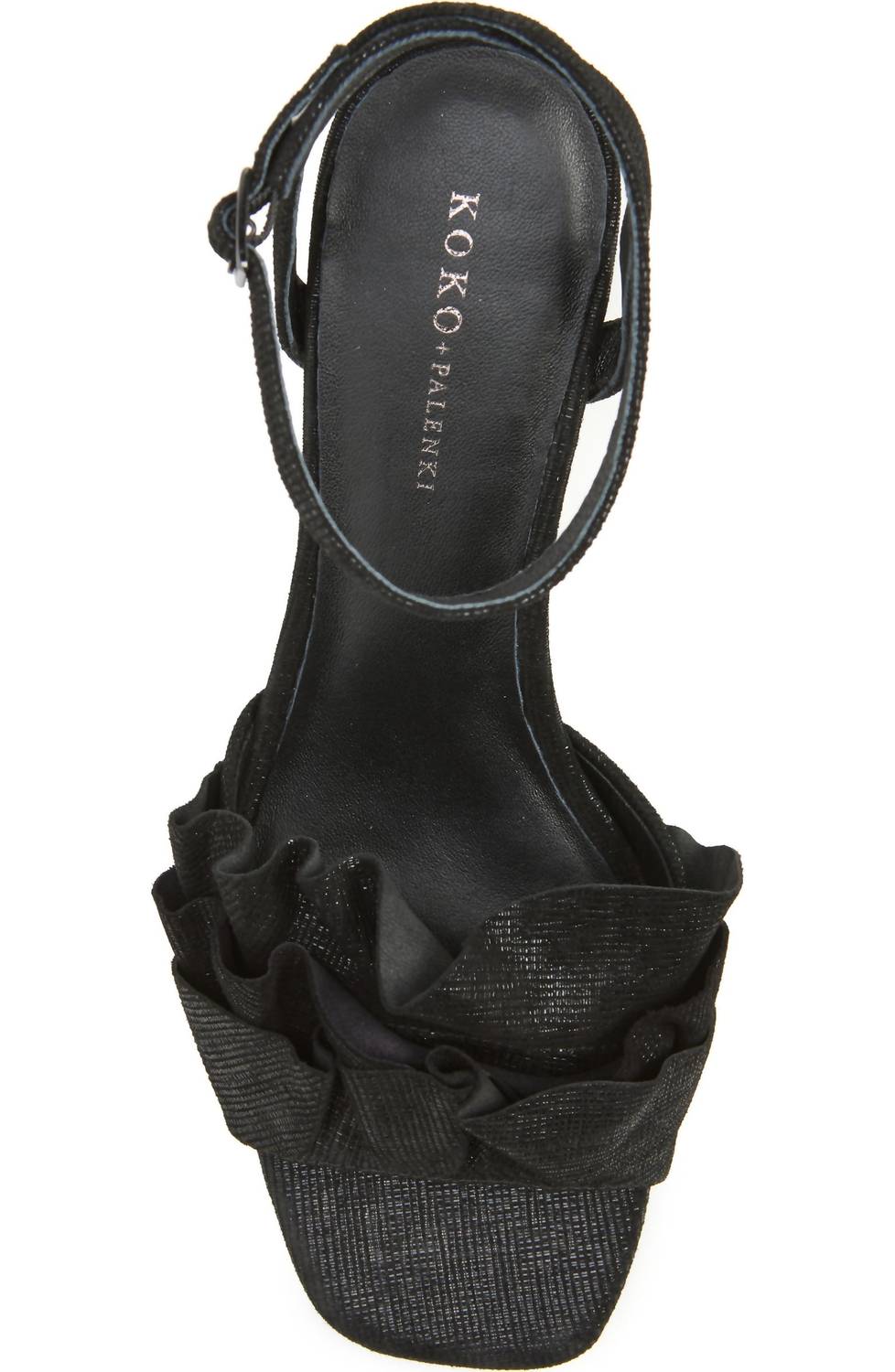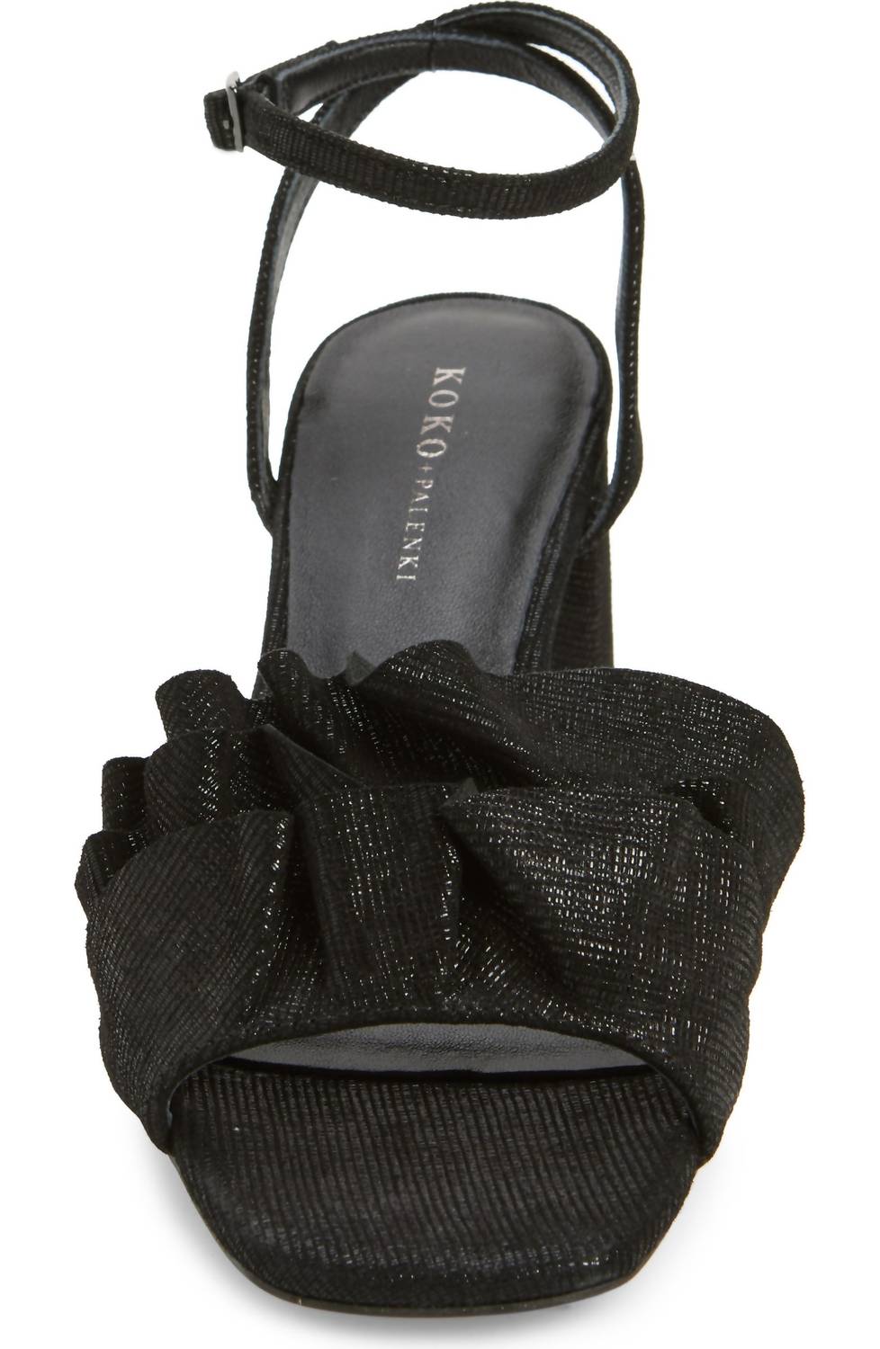 Pair these beauties with your favorite skinny jeans or dress for a night out on the town. The Women's Serenity Square Toe Sandal by Koko + Palenki combines elegance with a hint of sparkle, thanks to its metallic fibers. Featuring an adjustable ankle strap with a buckle closure and hidden elastic inset for a snug fit, these sandals are crafted with a textile upper and synthetic lining and sole. Designed in black metallic leather, they present a stylish squared toe and a stable block heel with a height of 2.25 inches. Imported from China.