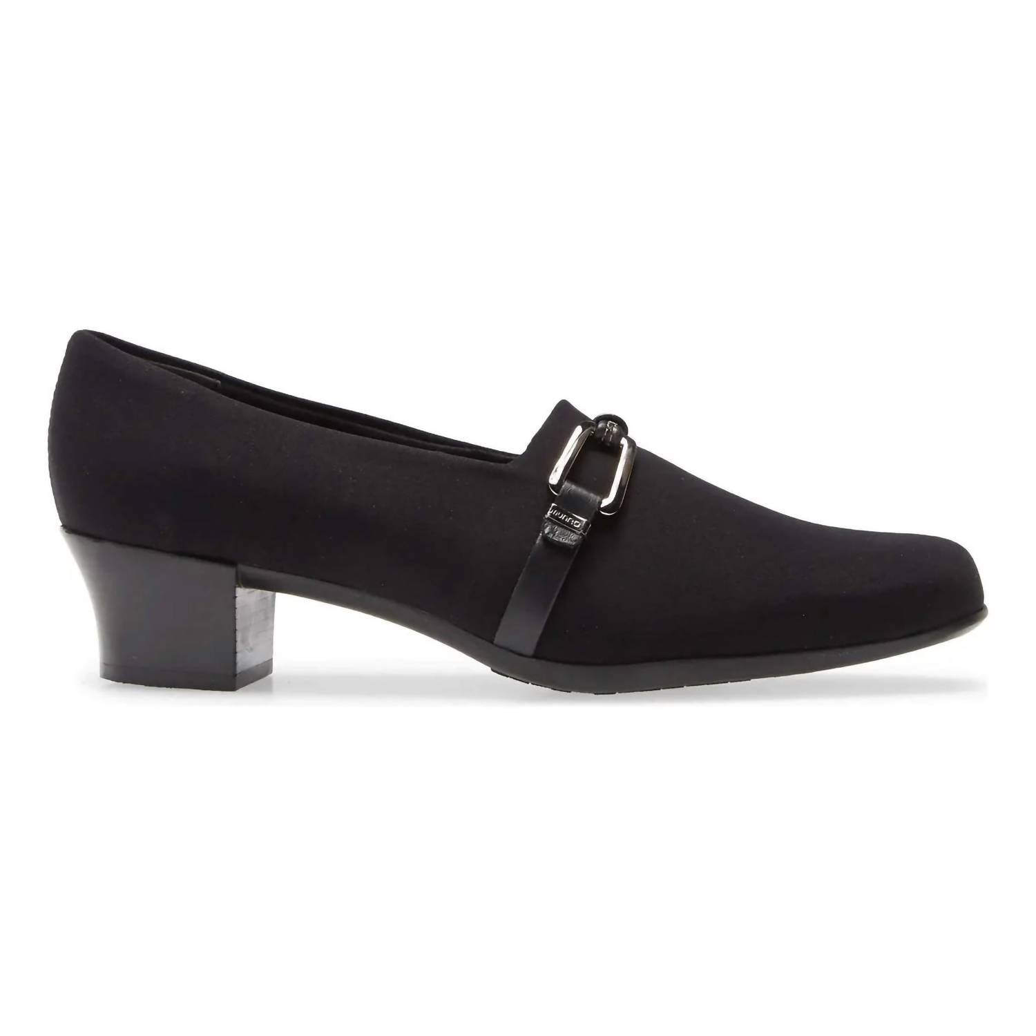 Pair these beauties with your favorite skinny jeans or dress for a night out on the town. Step into elegance with the Munro Women’s Cindi II Black Combo, a striking pair perfect for any occasion. Featuring a fabric upper with a leather strap, these heels are designed with a latex rubber outsole that offers both shock absorbency and flexibility. With an almond toe shape and block heel, the contoured footbed and pig leather inside counter pocket ensure superior comfort and stability. Additionally, the knit soft lining wicks away moisture, making it an ideal choice for fall workwear and church events.