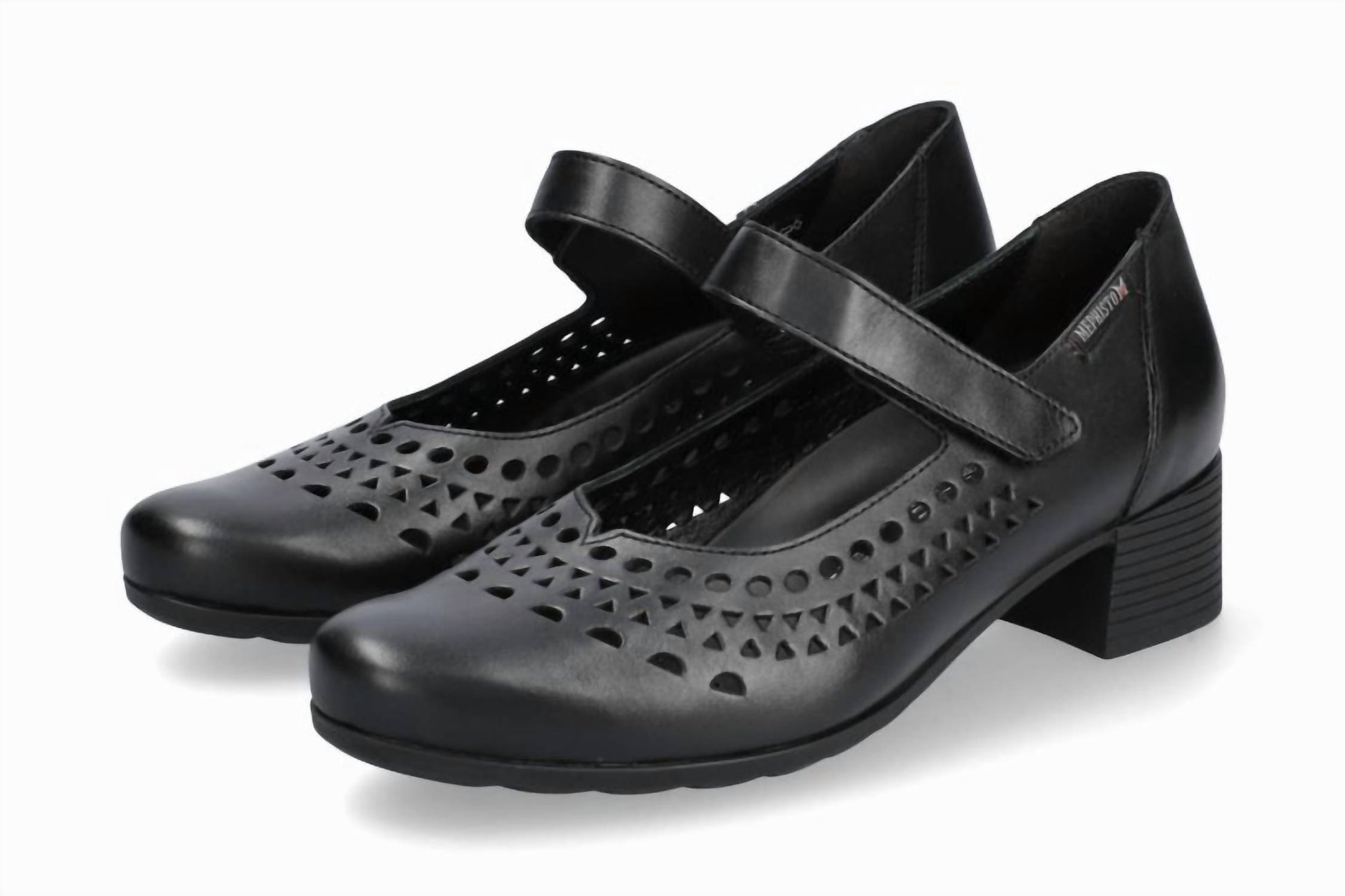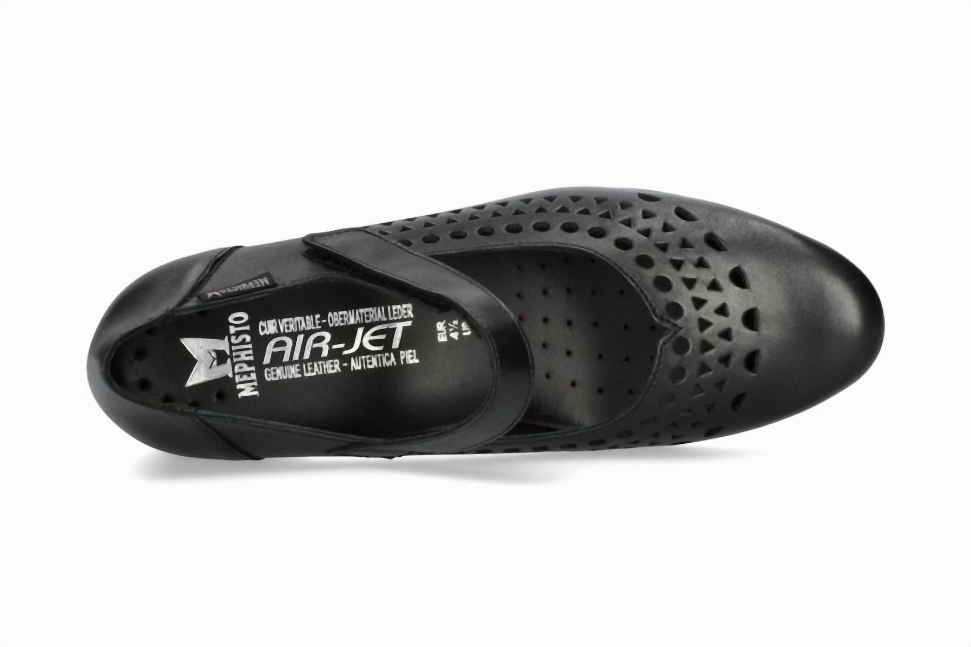 The perfect height for day to night. Step into ultimate comfort with the MEPHISTO Women's Gilia Hand Made Mary Jane Pumps, crafted from smooth full grain leather for a stylish look. The finely perforated design and adjustable hook-and-loop closure make these shoes both chic and practical for all occasions. Enjoy the benefits of the SOFT-AIR technology in the midsole and a leather lining that promotes good foot hygiene. With a separate block heel of 3 cm (1.18 inches) and a standard G width, these round-toe ballerinas cater to both comfort and elegance.