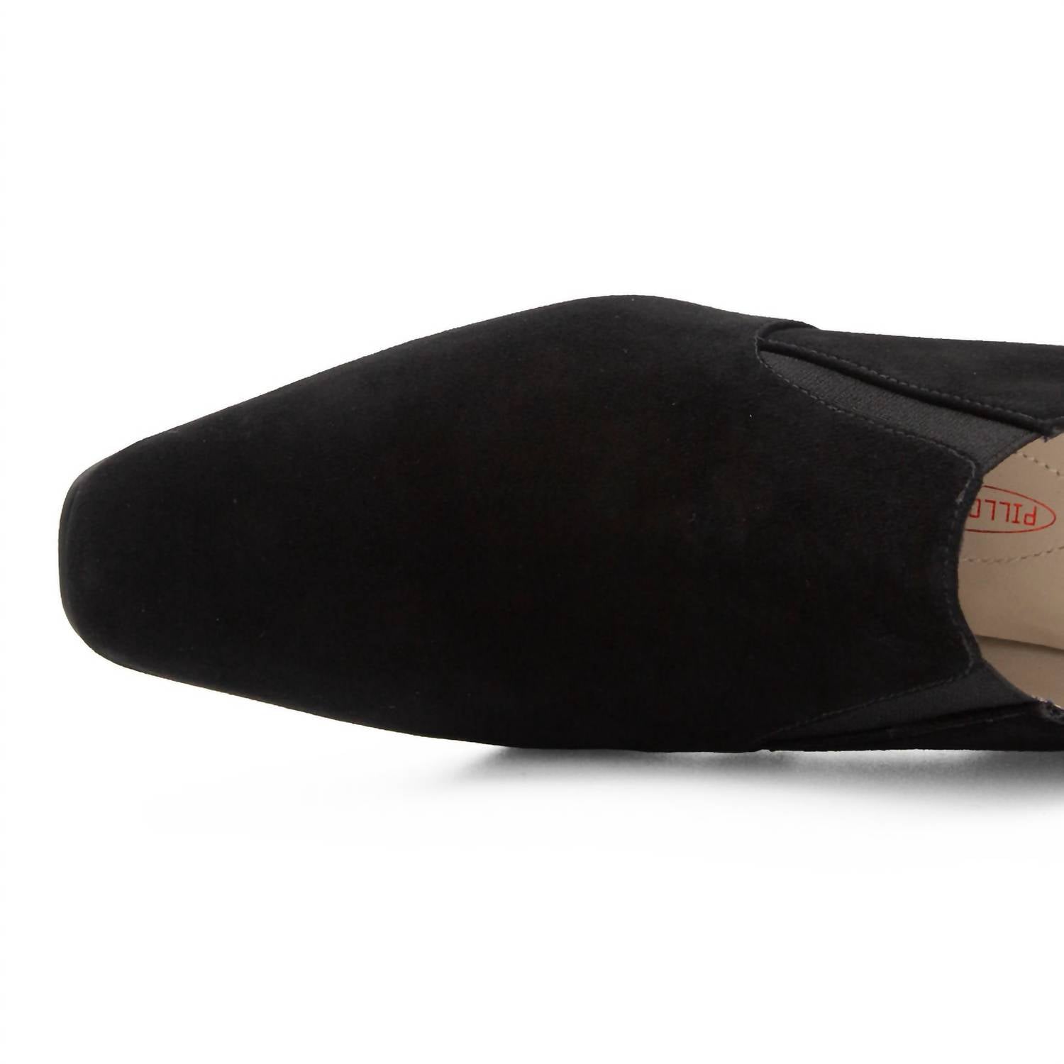 Step out in style with the Women's Fanello Heel Bootie by Amalfi by Rangoni, crafted from premium black suede for a chic and sophisticated look. Featuring a block heel and a pointed toe, these booties are perfect for workwear and evening events alike. With a heel height of 2.5 inches, they offer just the right amount of lift for comfort and elegance. Ideal for the spring season, these booties seamlessly blend fashion and function.