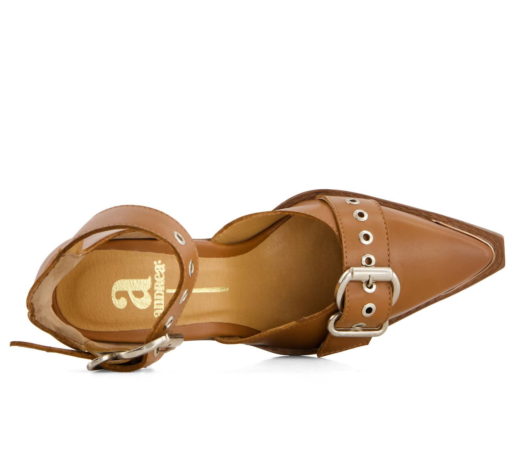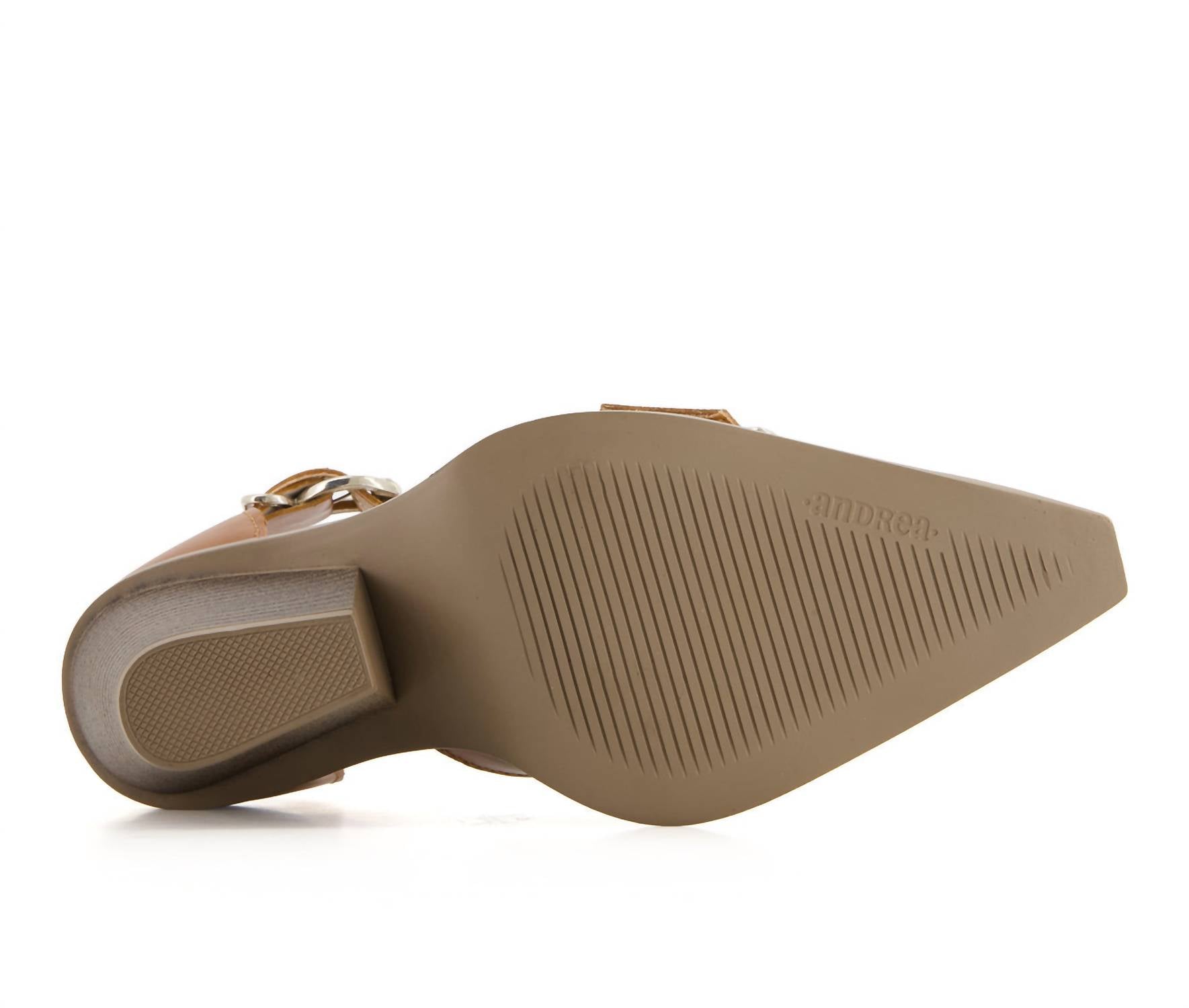 Don't be deceived, these heels are comfy as can be. Introducing the women's Pointed Toe Riveted Ankle Strap Pumps by Andrea, a stylish choice in brown for your spring occasions. These pumps feature a trendy Boho Chic design with a wedge heel and pointed toe, perfectly suitable for Thanksgiving events. Crafted from rubber with a 2.25-inch mid heel height, they offer both elegance and comfort. Enjoy the lightweight construction and foam insole for all-day support.