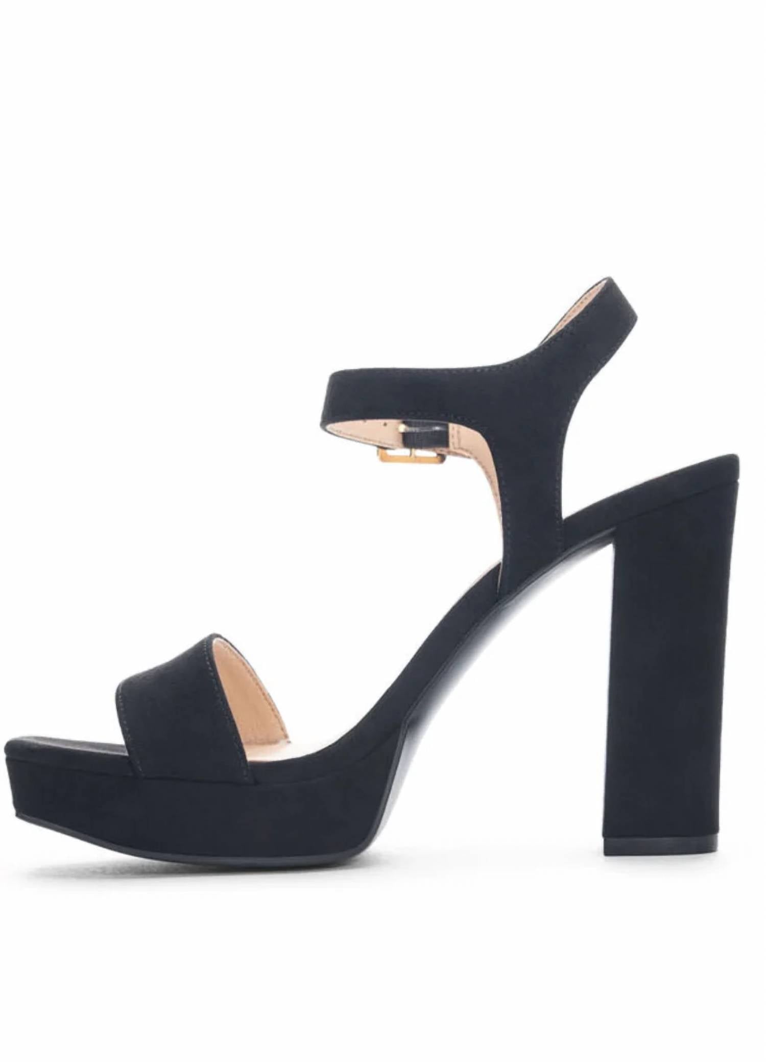 The perfect height for day to night. Step into elegance with the Alanah Heels by CHINESE LAUNDRY, crafted for the modern woman. These black microsuede heels boast a 4.5" chunky block heel and an open toe design, perfect for a sophisticated dinner party look. Featuring an adjustable strap across the foot, they offer both comfort and a stylish touch. Made from durable manmade materials, these high heels align perfectly with the quiet luxury trend for spring.
