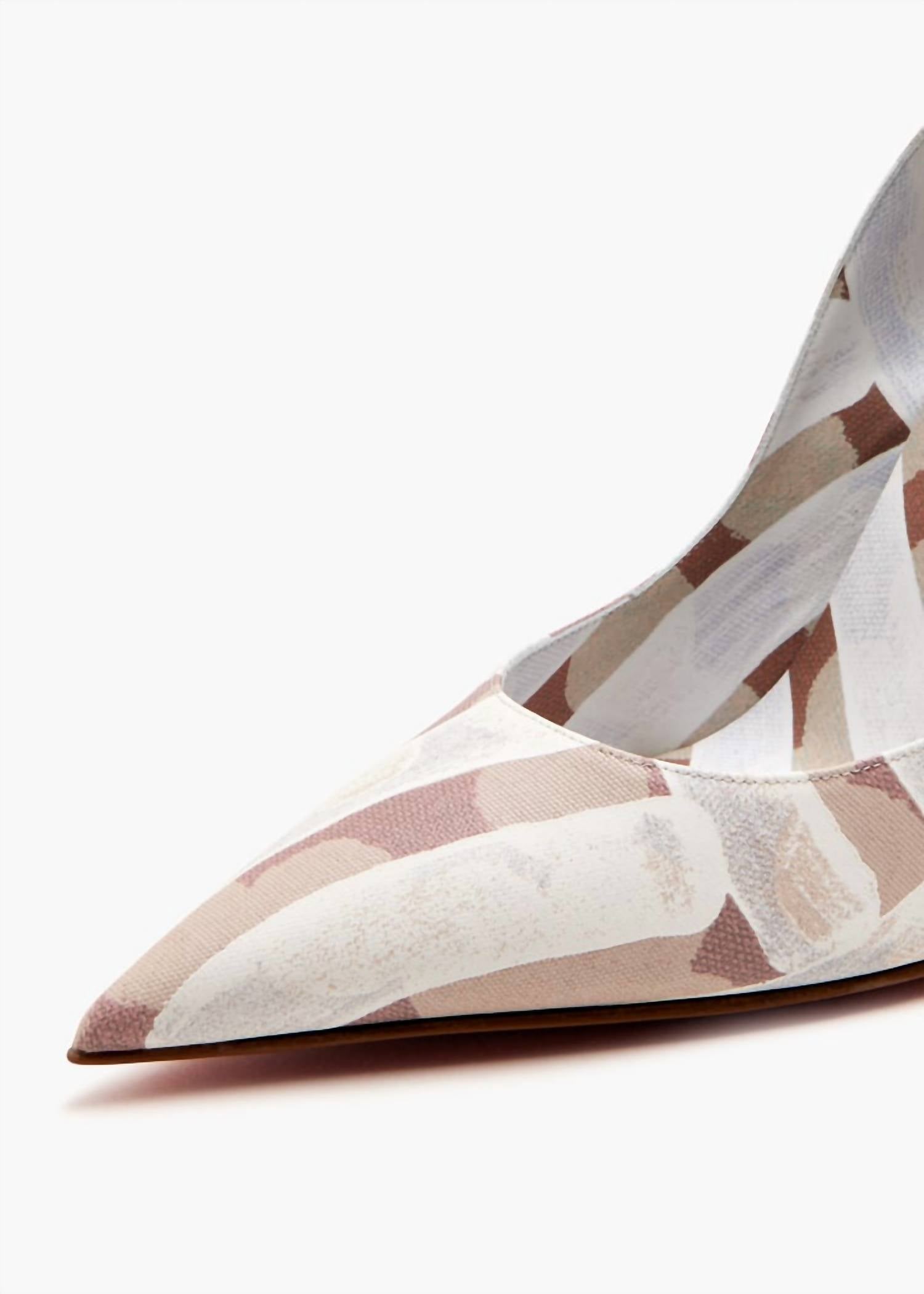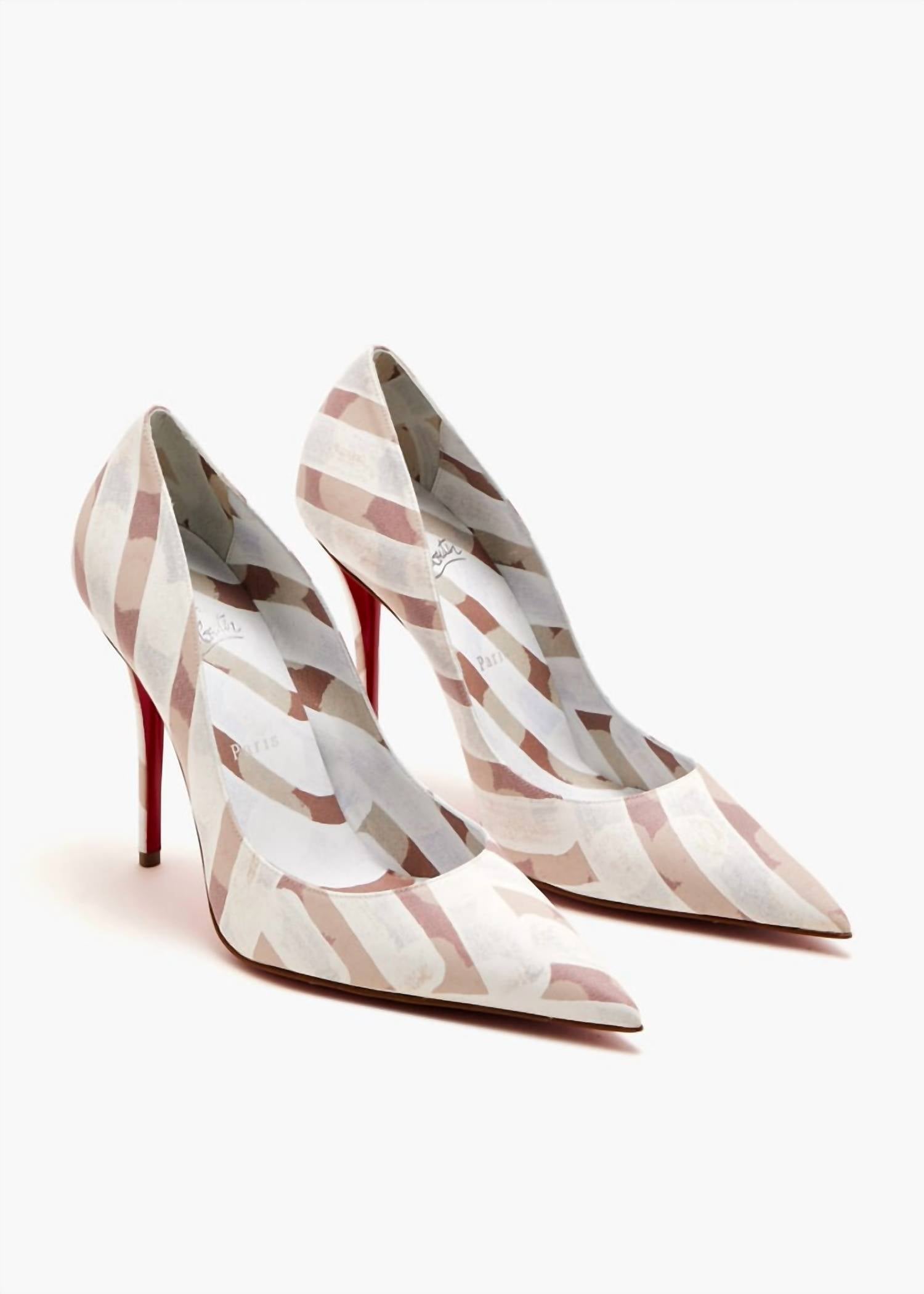 Pair these beauties with your favorite skinny jeans or dress for a night out on the town. Elevate your ensemble with the Women's Miss Z 100 Pumps by Christian Louboutin, crafted for discerning elegance. These sophisticated heels feature a pointed-toe design and chic 10cm stiletto heels, ideal for adding quiet luxury to your summer and New Year's Eve occasions. Made in Italy, they boast a beige water-repellent Gaagal fabric exterior, designed by Australian artist Otis Hope Carey, with a leather lining for added refinement. Recognizable by the iconic Everlasting Red Soles, these pumps fit large to size and are advised to be worn a half or full size smaller for optimal comfort.