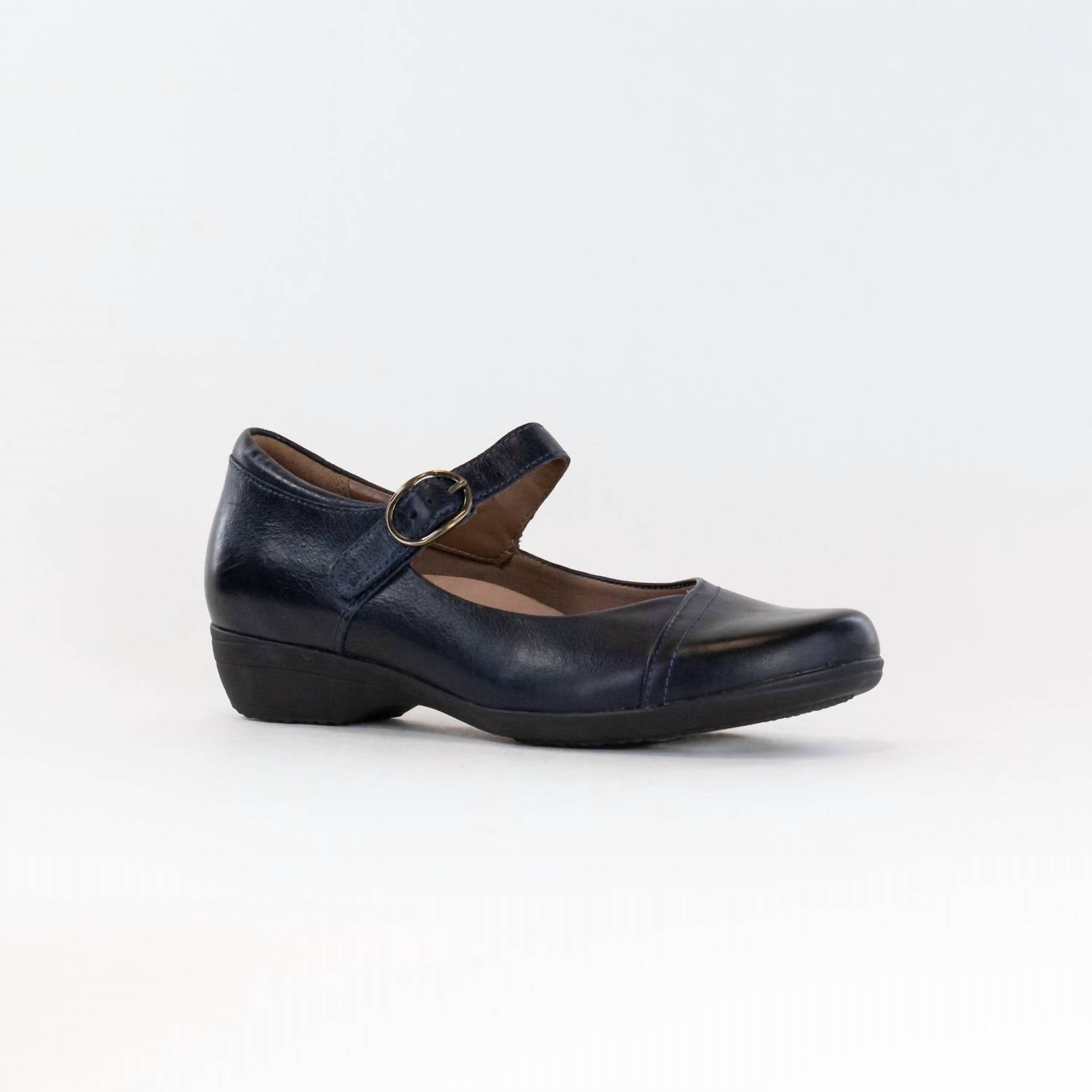 Don't be deceived, these heels are comfy as can be. Step into comfort and style with the Women's Fawna Shoes by Dansko. These Navy Burnished Calf Mary Janes feature a classic round toe and an easy-to-wear 1.5" block heel, perfect for minimalist spring looks. Crafted from high-quality leather, they incorporate Dansko Natural Arch® technology for superior support and comfort all day long. The leather and soft textile lining with Aegis® Microbe Shield odor control ensures freshness, while the rubber outsole promises durability.