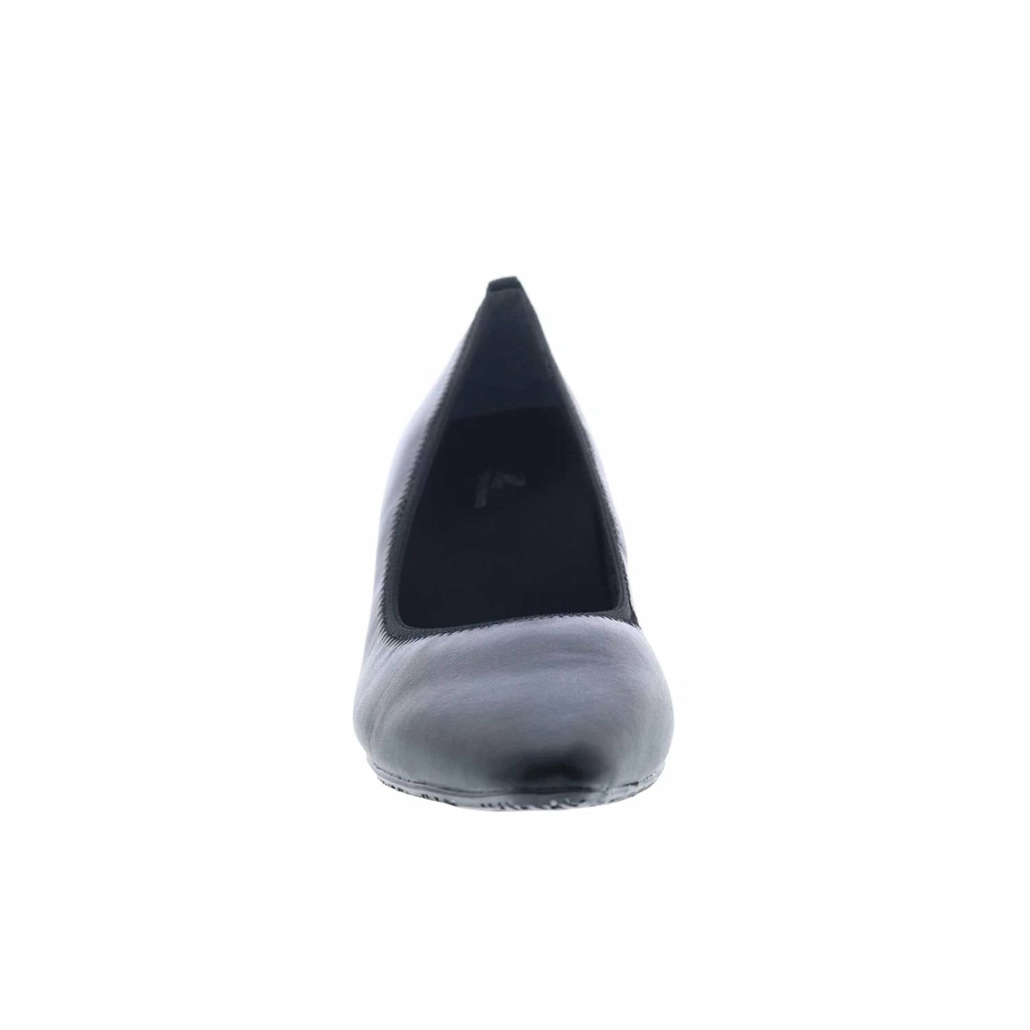Pair these beauties with your favorite skinny jeans or dress for a night out on the town. Elevate your style with the Women's Karat Leather Pump Heels by Ros Hommerson, crafted in classic black leather. These elegant pumps feature a sophisticated design with a removable footbed for added comfort, an elasticized topline, and a flexible rubber outsole. The 2-inch heel offers a tasteful lift, perfect for any occasion.