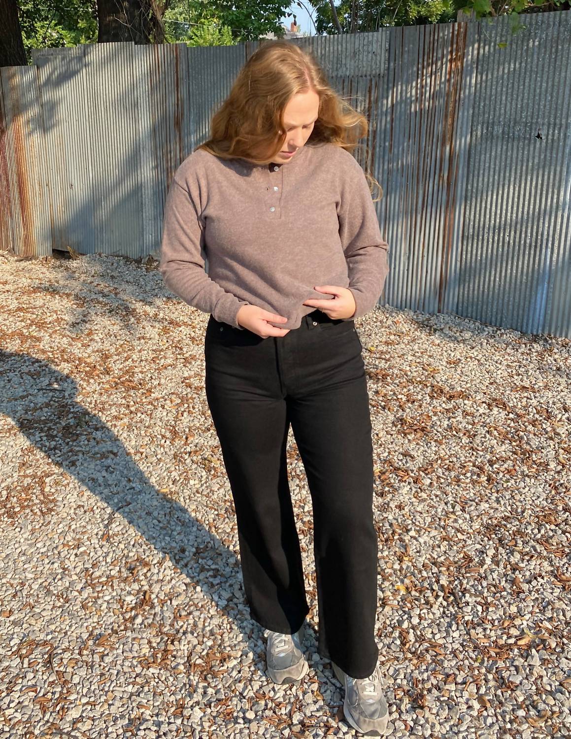 Tuck your favorite tee into these high-waist jeans for a more casual-cool feel. Discover the Mikey High Rise Straight Leg Denim Jeans by Boyish, a stylish addition to any wardrobe with a dark wash and relaxed fit. Crafted from a cotton blend, these jeans feature a button closure and a high waist with a solid pattern. With a five-pocket design, they bring practical style and comfort. Composition: 66% OCS Certified Organic Cotton, 33% Tencel Lyocell, 1% Recycled Elastane. Care instructions: Machine wash. Perfect for spring travel or casual streetwear occasions.