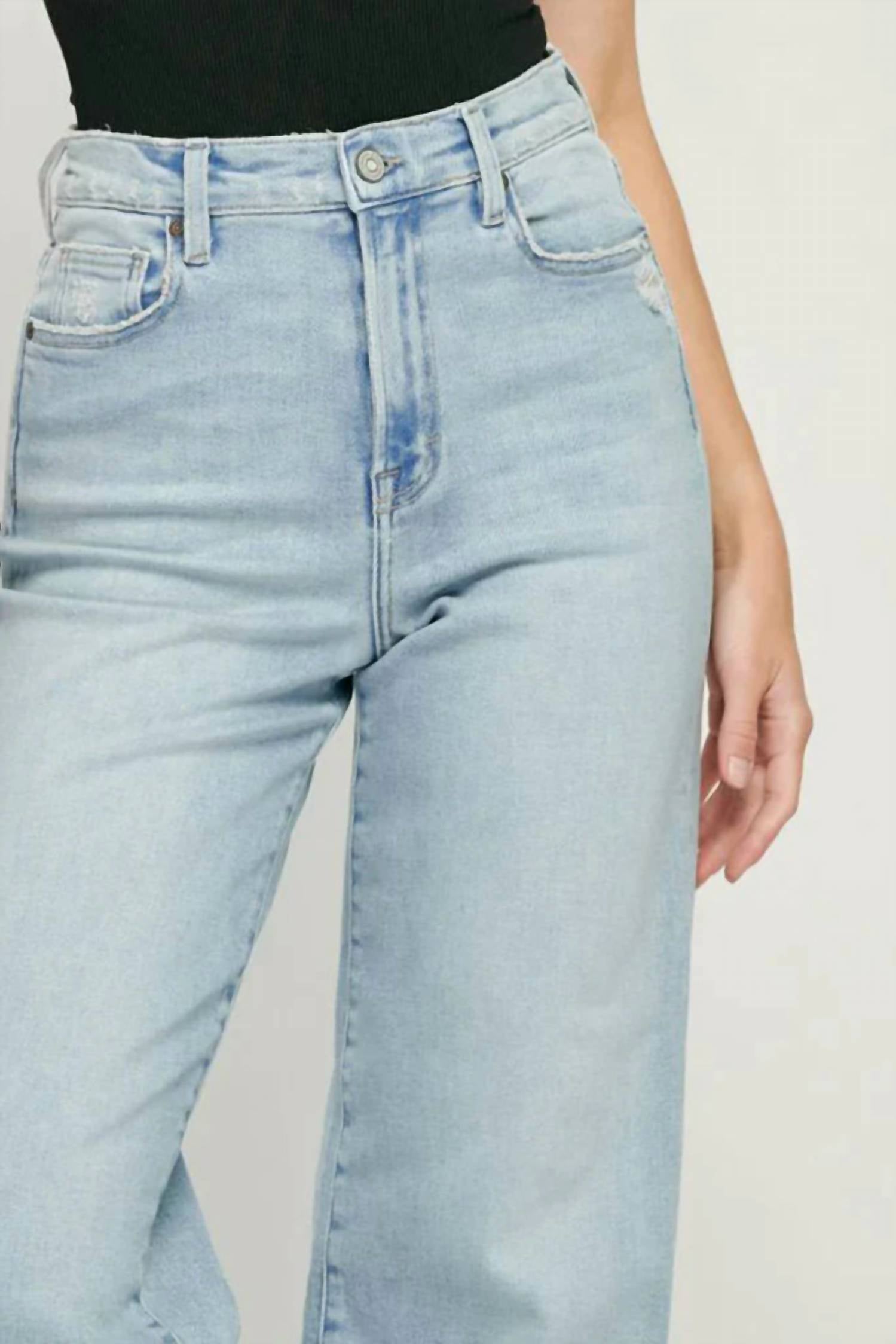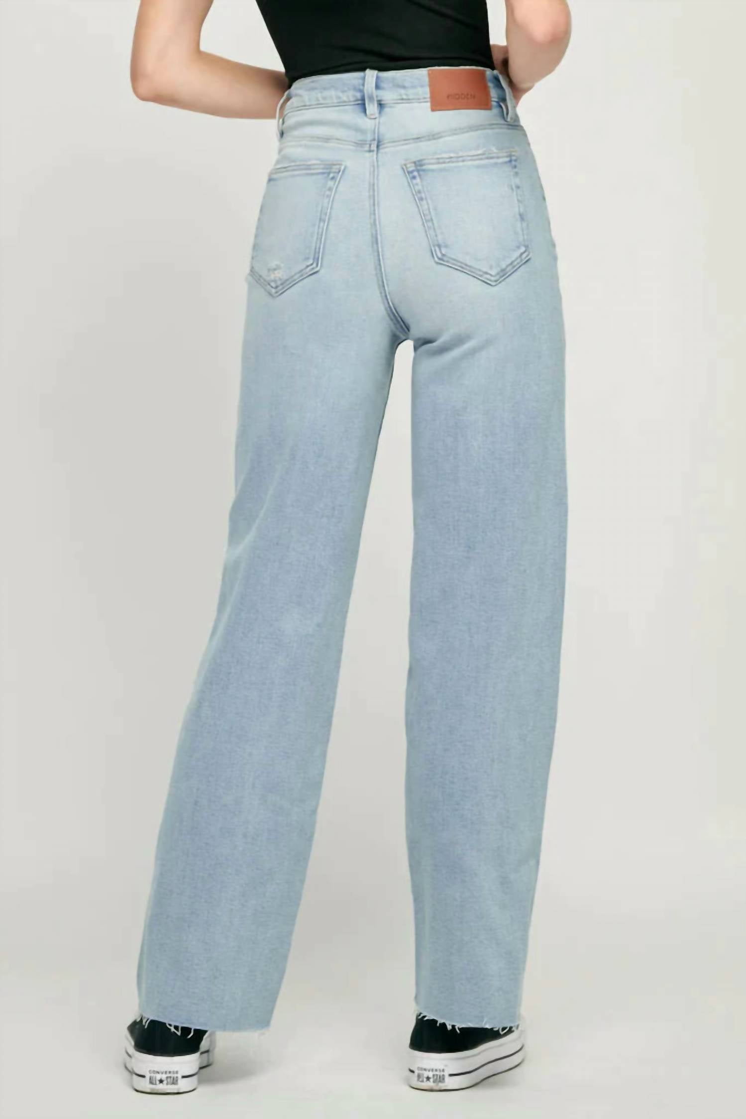 Tuck your favorite tee into these high-waist jeans for a more casual-cool feel. Discover the Logan High Rise Dad Jeans by HIDDEN, a timeless silhouette in a light wash perfect for streetwear and summer travel. These jeans boast a high-rise fit with a straight leg style, featuring an 11" rise and 31" inseam. They're crafted from a comfortable cotton blend comprising 93% cotton, 5% polyester, and 2% spandex, ensuring a slight stretch. Closure is a convenient button closure, and they're easy to care for with machine wash and tumble dry instructions. The model is wearing a size 26.