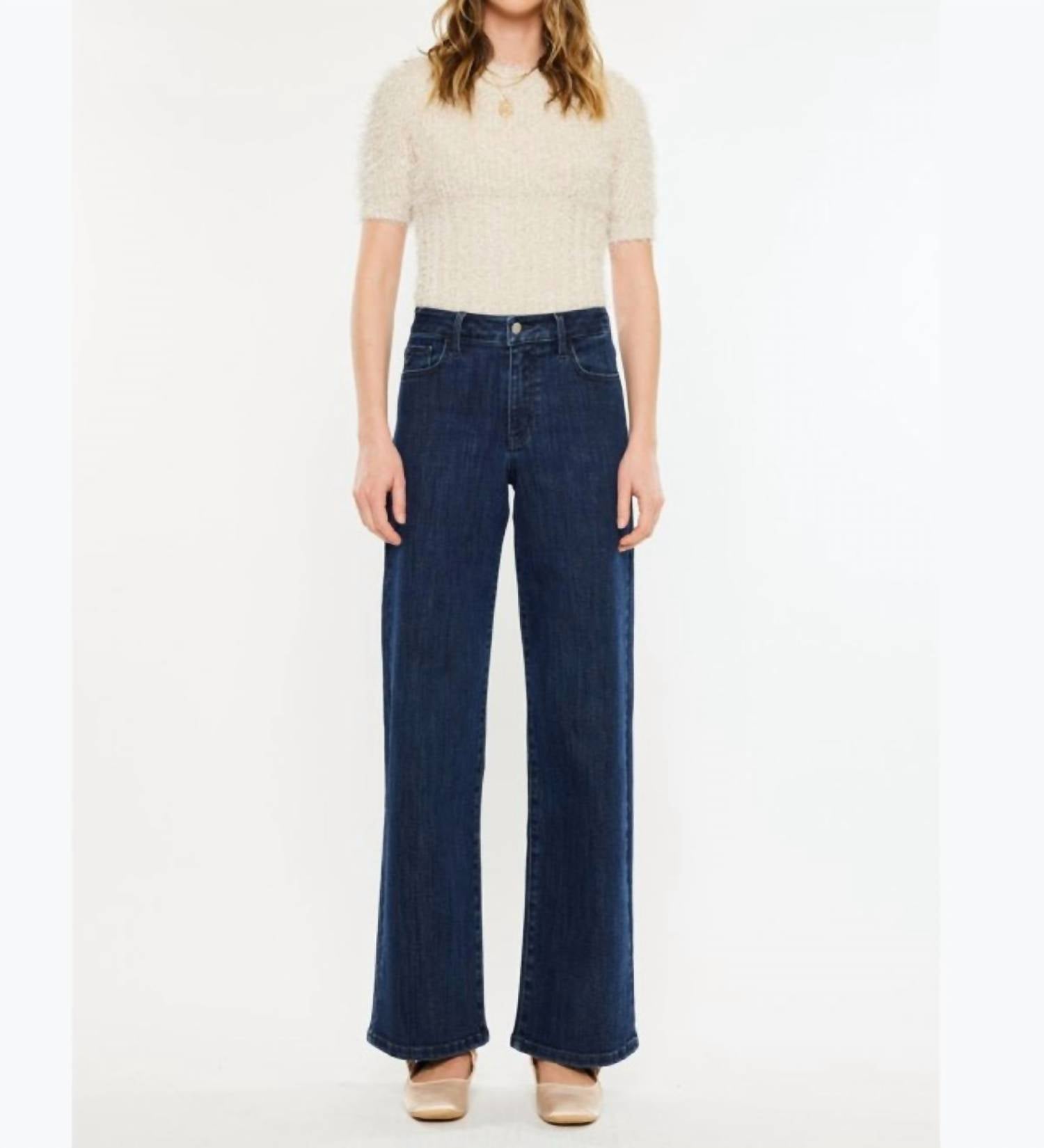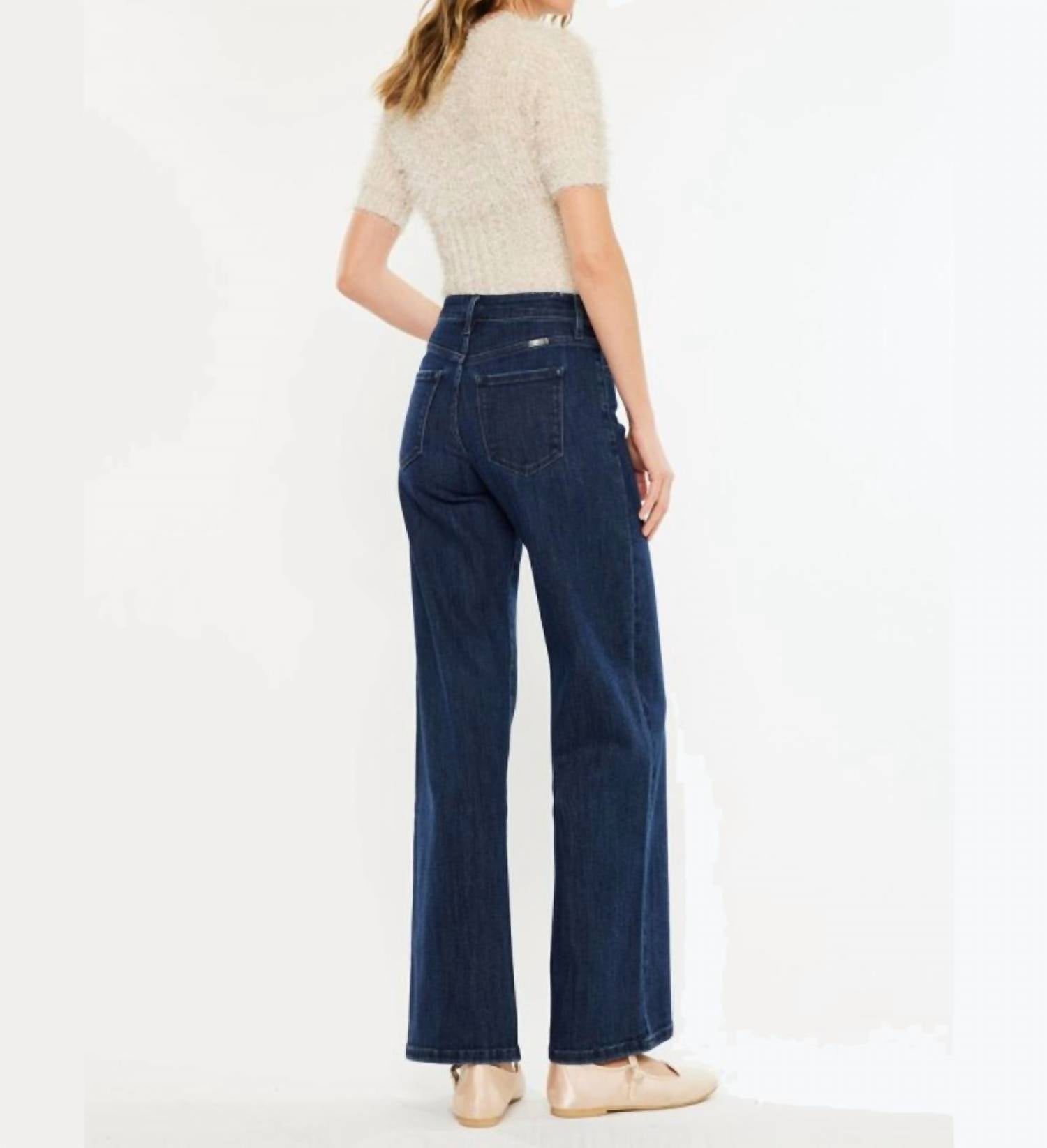 Fit to perfection, we love these high-waist jeans and you will too. Introducing the Camila High Rise Wide Leg Jeans by KanCan, a perfect blend of style and comfort in a textured blue hue. These dark wash jeans feature a high-rise 10.5" waist and a 31" inseam for a flattering fit, complete with five-pocket styling and a button closure. Crafted from a cotton blend composed of 65.4% cotton, 30.3% polyester, and 1.3% spandex, these jeans offer the perfect stretch and durability. Care instructions include machine wash and tumble dry, making them ideal for streetwear and holiday parties alike.