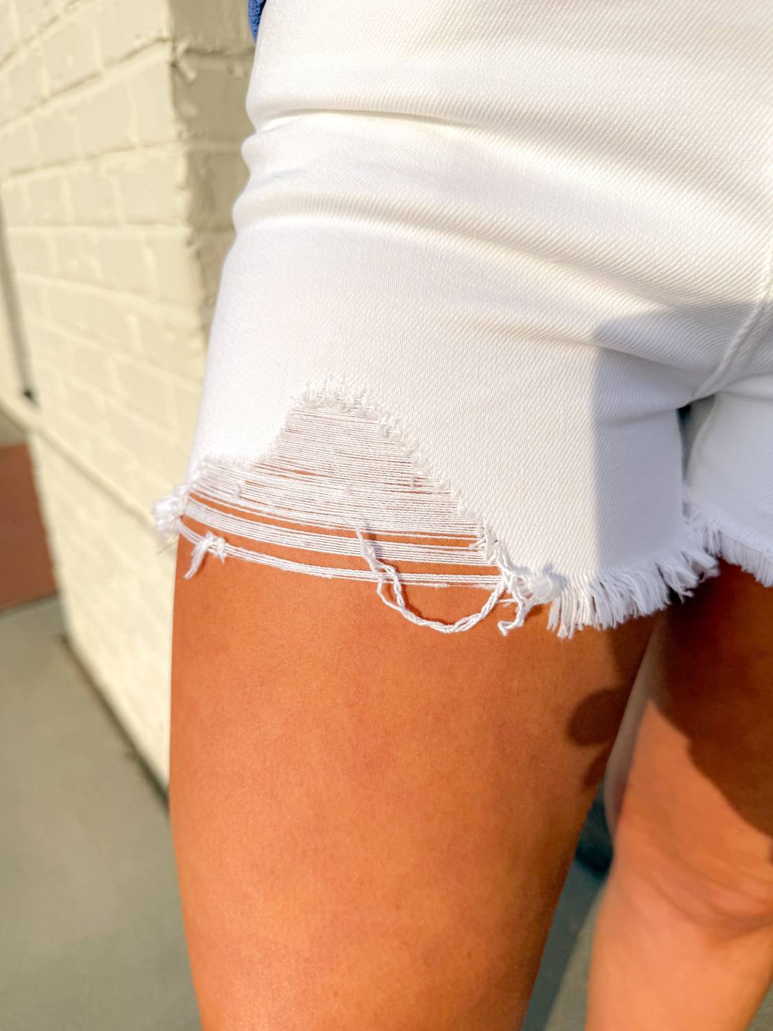 Tuck your favorite tee into these high-waist jeans for a more casual-cool feel. Elevate your casual wardrobe with the KanCan Play It Cool Distressed High Rise Shorts, a fusion of edgy and clean style perfect for versatile wear. These solid white denim shorts feature a flattering high rise, subtle distressing, and a trendy raw hemline. With a button closure and practical pockets, they offer just the right balance for game days, sunny getaways, or spring vacations. Care: Machine wash and tumble dry for easy maintenance.