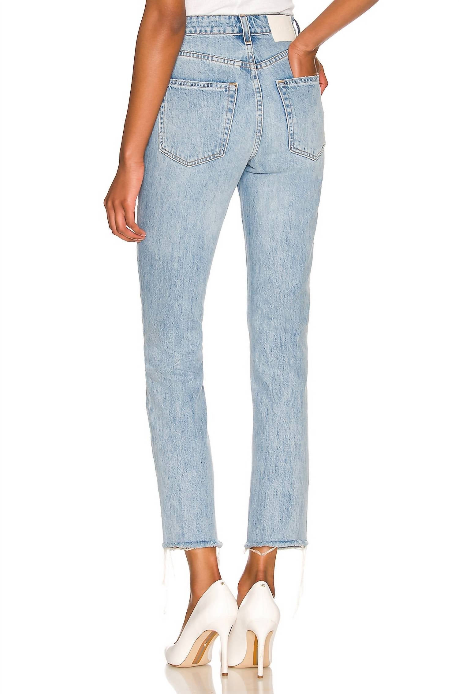 High-waist is here to stay and we especially love this style. The Karolina Petite High Rise Denim offers a classic silhouette with a modern edge. Designed with a flattering high waist and subtle distressed details, it delivers the perfect lived-in look. Made from 100% cotton, this rigid denim features light whiskering, raw-cut frayed hems, and a tapered leg that narrows from 36 cm at the knee to 32 cm at the leg opening. Complete with a button fly and 5-pocket styling, it's a must-have for everyday cool.