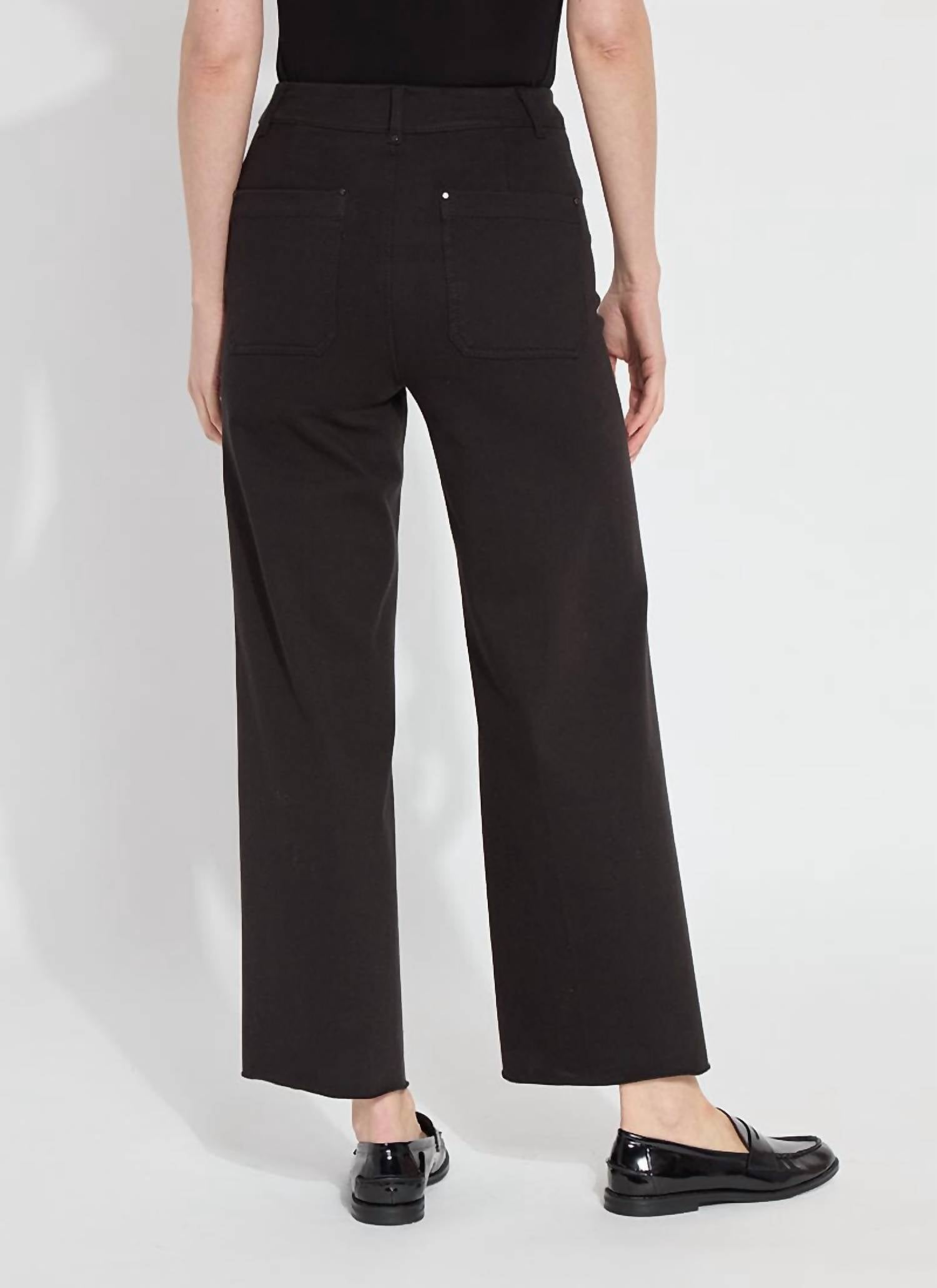 High-waist is here to stay and we especially love this style. Meet the Women's Erin High Waist Wide Leg Denim by Lysse, the perfect blend of style and comfort in classic black. These high-waisted jeans are crafted from a 4-way stretch cotton blend, ensuring a relaxed fit with an extra-wide leg and a cropped, ankle-length silhouette. The hidden patented 360 smoothing waistband offers sleek lines, while the raw-edge hem adds a chic, modern touch. Composition: 95% Cotton, 5% Spandex. Closure: Pull-on style. Care: Machine wash and line dry for best results.
