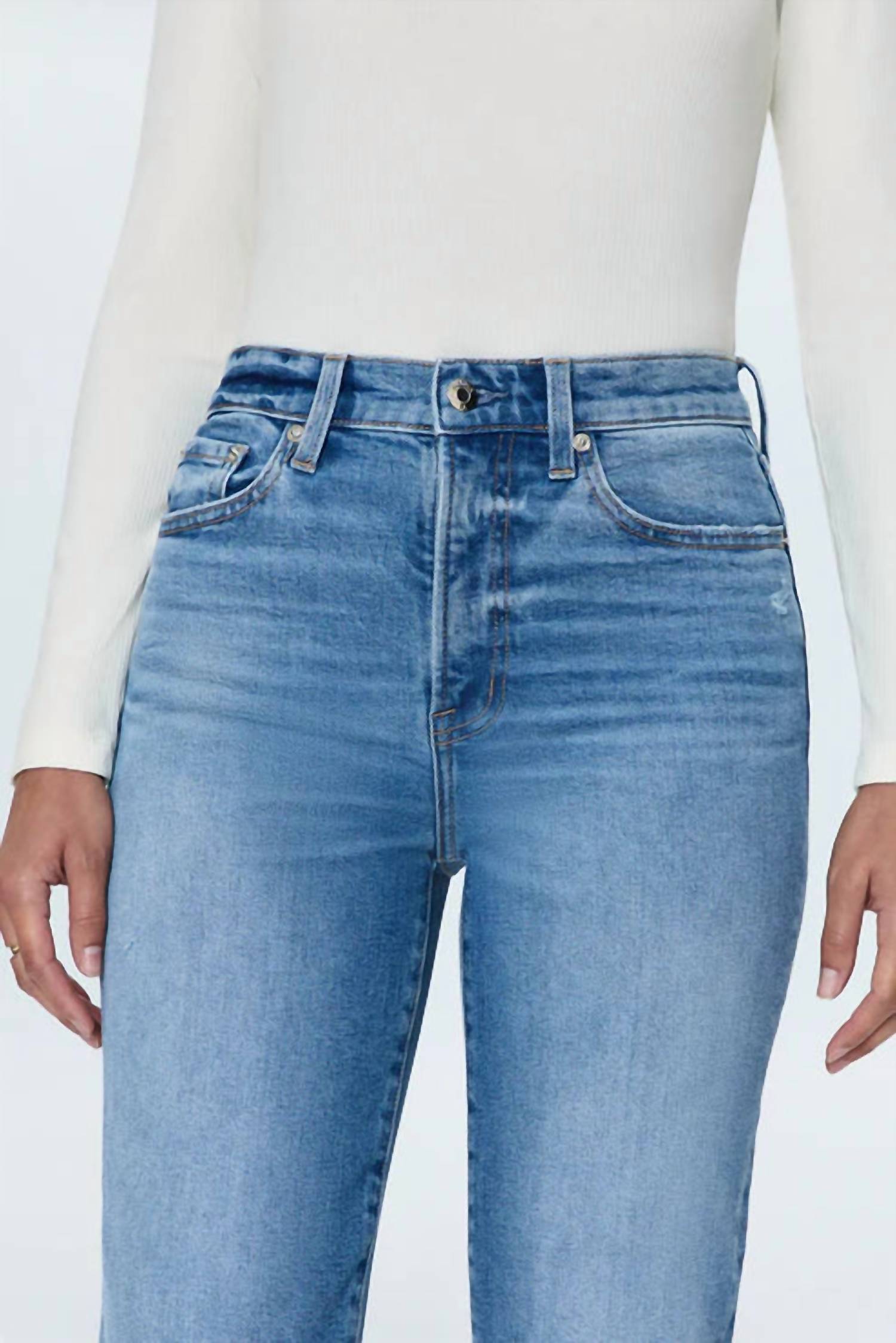 Fit to perfection, we love these high-waist jeans and you will too. Introducing the Charlie High Rise Classic Straight Leg Ankle Jean by PISTOLA, crafted for the modern woman seeking a stylish yet relaxed fit. This standout piece features a flattering high rise and a figure-hugging waist, complemented by a slim-straight leg silhouette and a 27" cropped clean hem. Made from a signature cotton blend of 99% Cotton and 1% Spandex, it ensures superior comfort and flexibility. This light wash denim, known as Rhythm Vintage, is equipped with a button closure and is machine washable for effortless care.