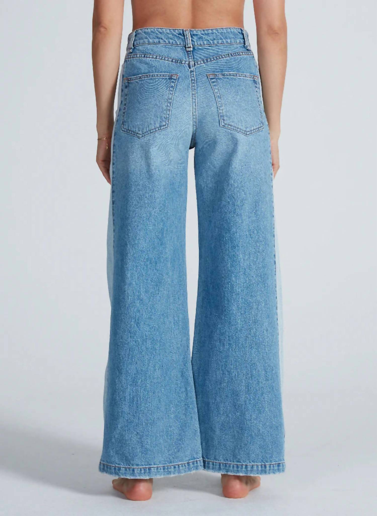 Fit to perfection, we love these high-waist jeans and you will too. The ASKK NY Barcelona Jean in Berkeley is an essential for those seeking both comfort and style with its high-rise design and relaxed fit. Made from 100% cotton in the USA, these jeans feature a button closure and a wide leg style perfect for a laid-back yet chic look. With an 11" rise and 31" inseam, it suits various occasions from church to streetwear settings. Easy to maintain, simply machine wash to keep it looking fresh.