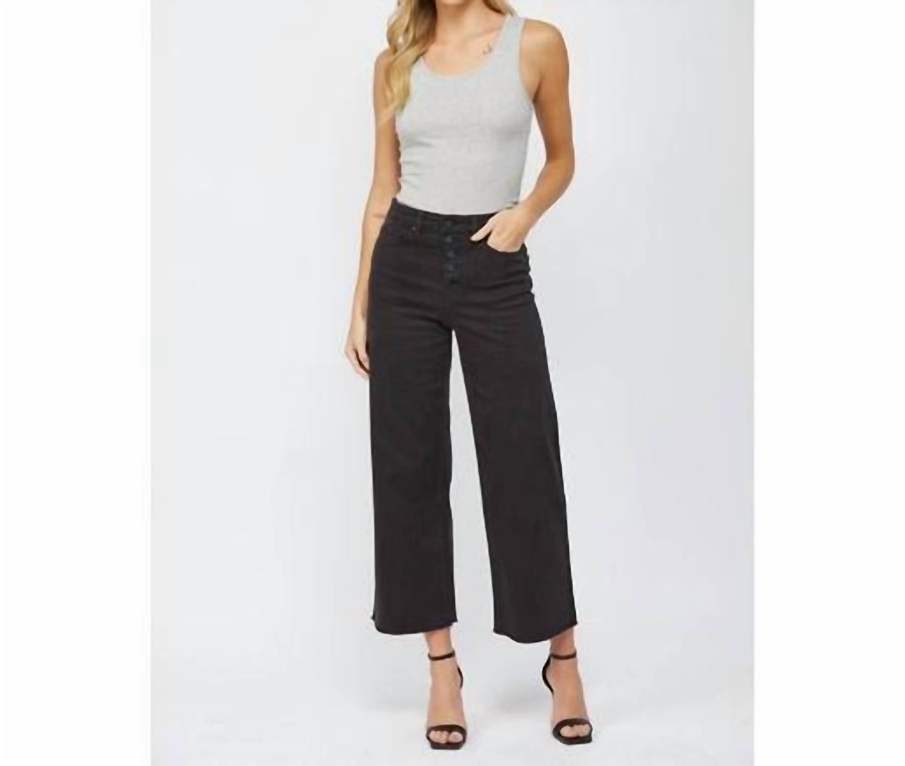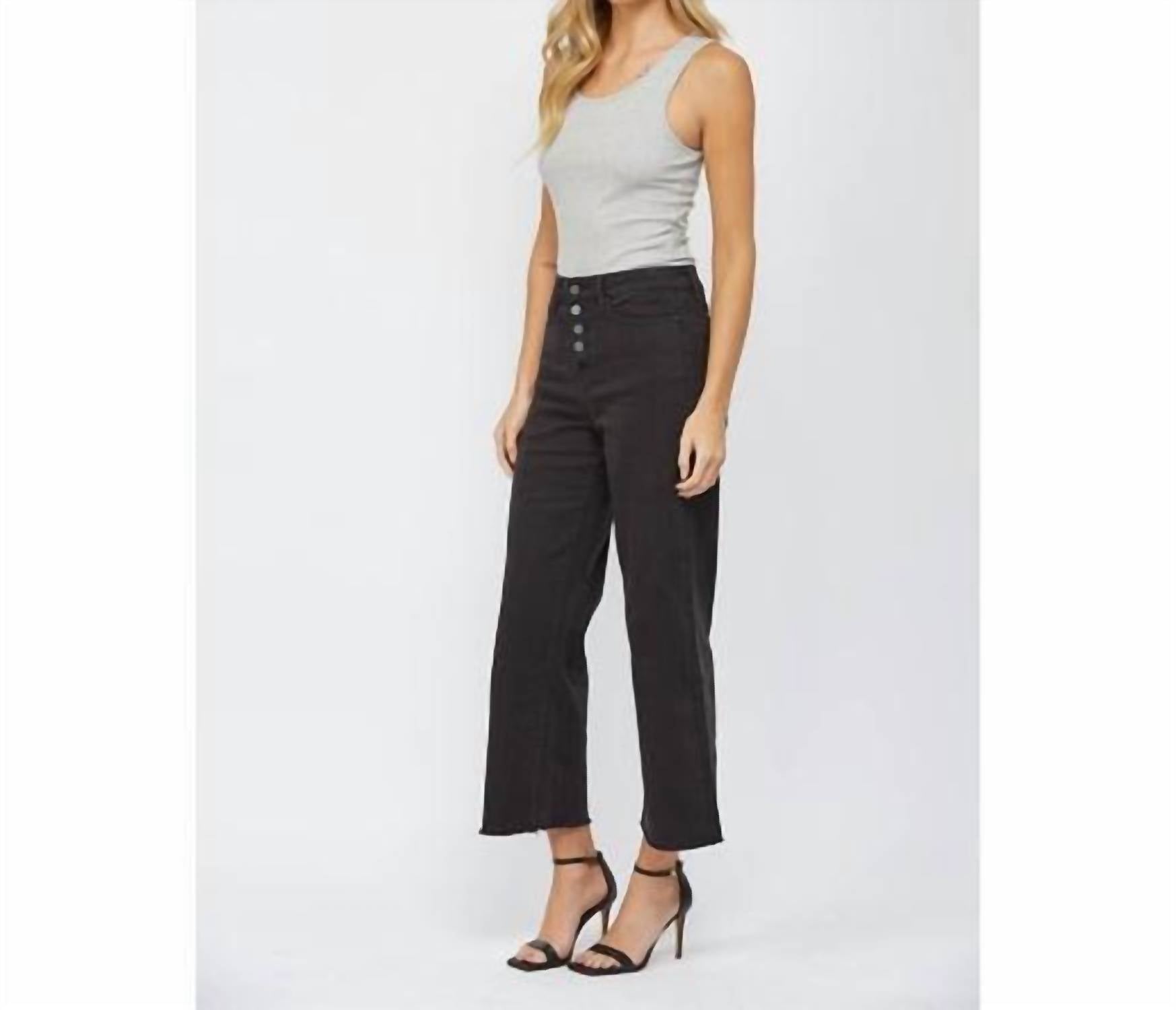 High-waist is here to stay and we especially love this style. Introducing the Chromatic High Rise Wide Crop Jeans by Mica Denim, crafted in a versatile cotton blend that's perfect for any wardrobe. Available in a chic charcoal hue, these solid wide-leg jeans offer a flattering regular fit with a high-rise waist for style and comfort. The pants are designed with functional pockets and a secure button closure, ensuring you look and feel your best. Embrace the classic California cool aesthetic with every wear.