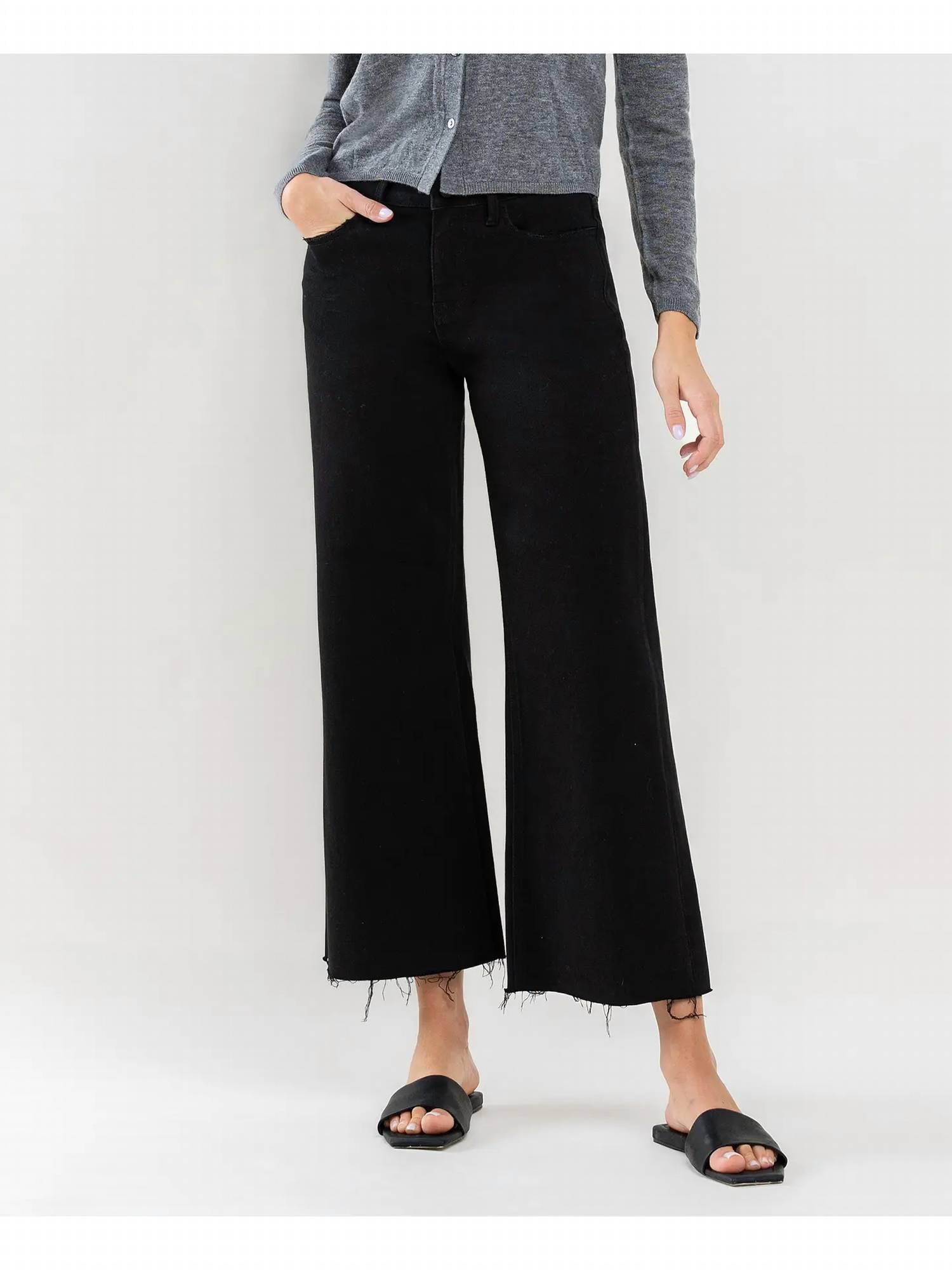 Lovervet - Plus High Rise Raw Hem Crop Jet Wide Leg Jean