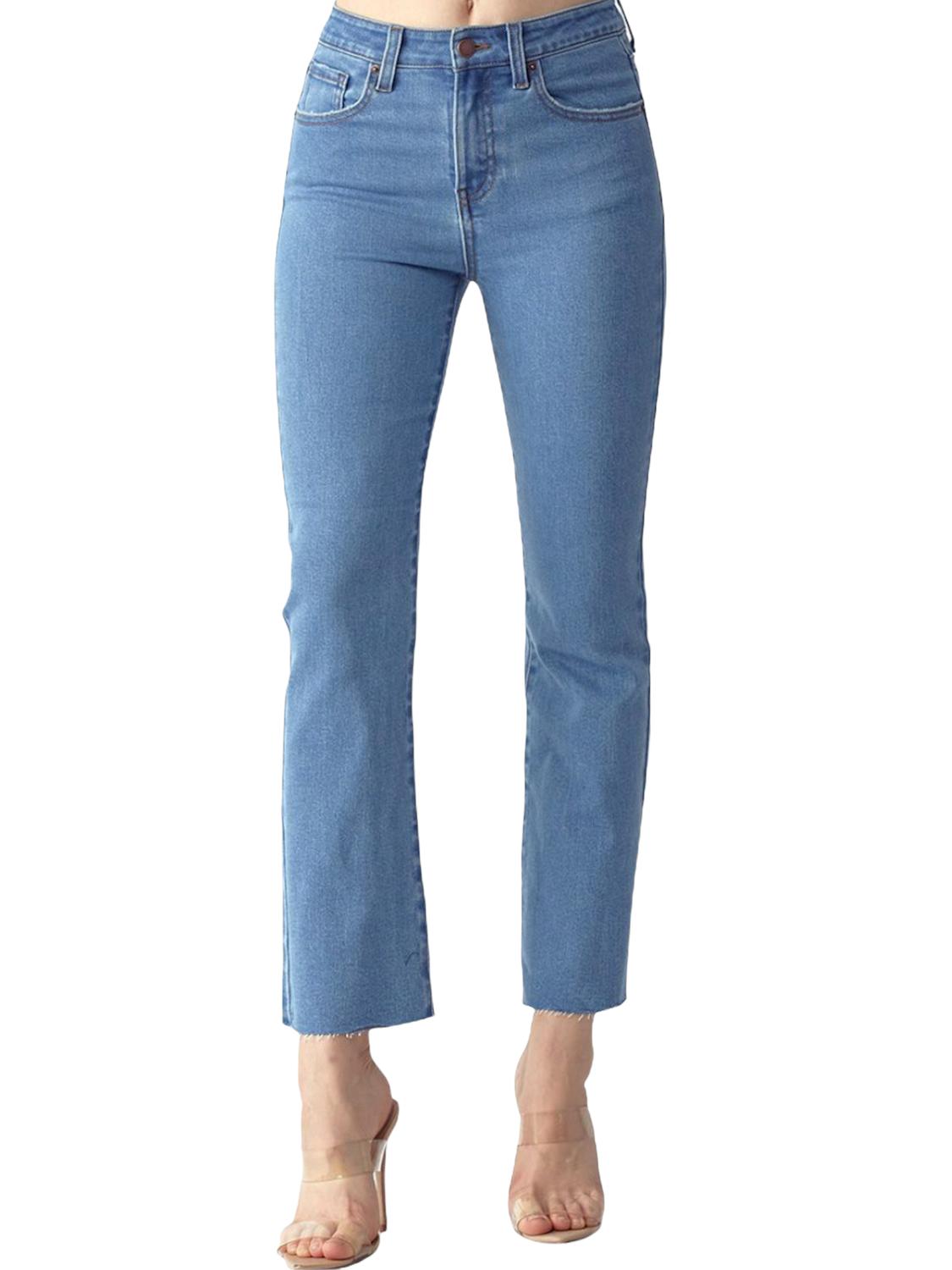 Fit to perfection, we love these high-waist jeans and you will too. Introducing the High-rise Clean Wash Straight Leg Jeans by RISEN, a streetwear staple perfect for any occasion. These blue denim jeans feature a slimming slim fit with a stylish frayed ankle hem and offer plenty of stretch for comfort. Composition: 95% Cotton, 4% Polyester, 1% Spandex. Closure: Zip closure. Care: Machine wash and tumble dry. The inseam measures 27.5 inches and the rise is 10.5 inches for a flattering high-rise fit. Model is 5'7" with a 24" waist and 35" hips.