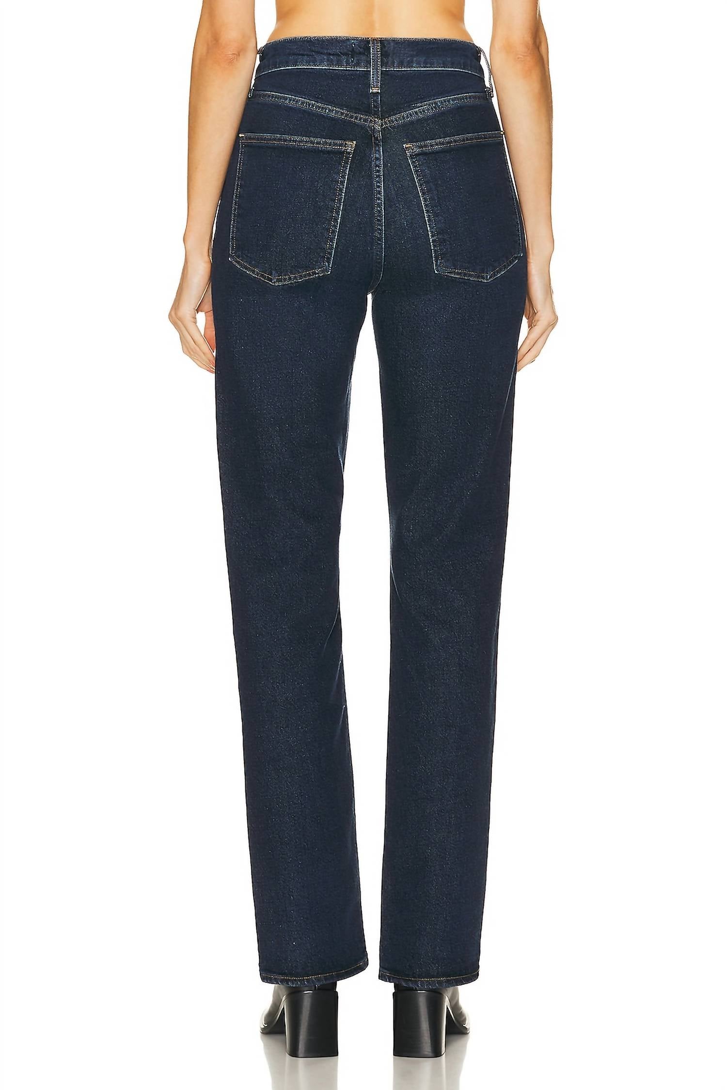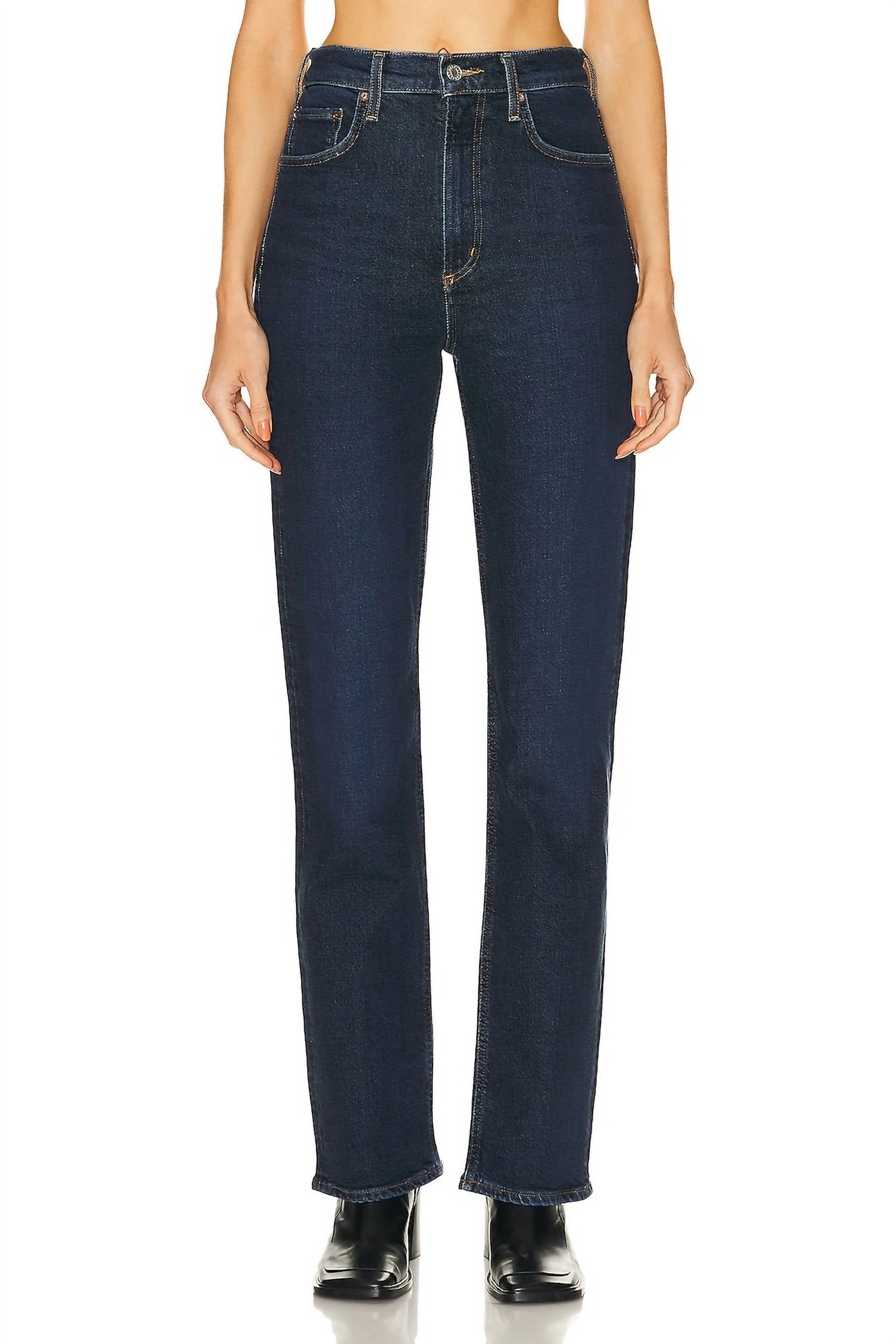 Fit to perfection, we love these high-waist jeans and you will too. Discover the AGOLDE High Rise Stove Pipe Jeans in a rich Song wash designed to elongate your frame with a high rise and a slim fit. Crafted from denim with a composition of 59% organic cotton, 40% ecovero, 1% elastane, these jeans promise comfort with a touch of stretch. They feature a 12" rise, 29.5" inseam, and a 15.5" leg opening with a classic zip closure. Made in Turkey, these jeans are machine washable and can be tumble dried for easy care. Model wears size 27 (5'10" height).