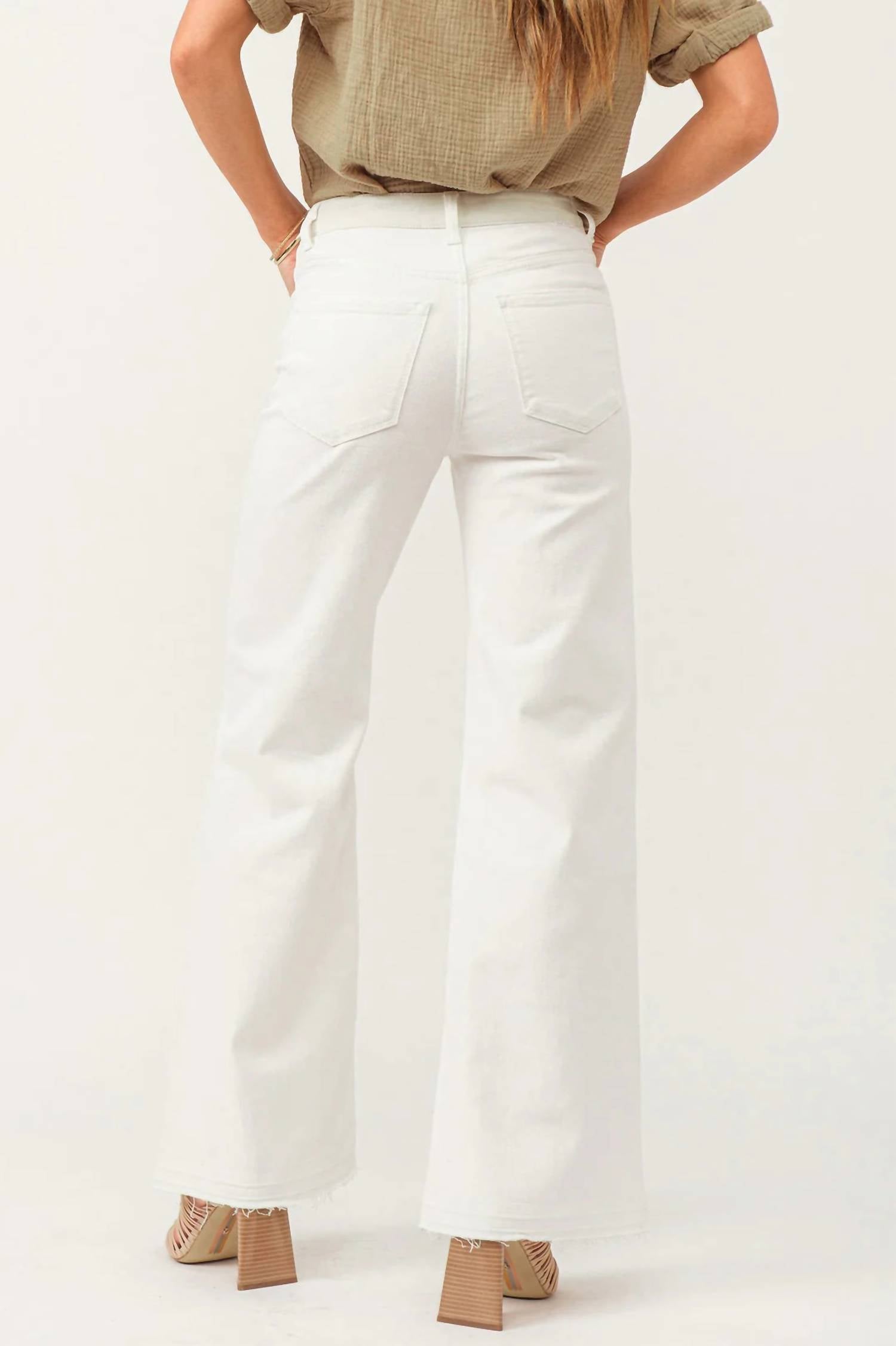 Tuck your favorite tee into these high-waist jeans for a more casual-cool feel. Introducing the Fiona Novelty Wide Leg Jeans by DEAR JOHN DENIM in Wheat And White, designed for a minimalist aesthetic this Spring. These super high rise jeans offer a cozy fit that accentuates your hips and thighs, made from a cotton blend comprising 91% Cotton, 7% Polyester, and 2% Spandex for perfect stretch. With a 31" inseam and an 11 1/2" front rise, they feature a wide leg style complemented by tonal color blocks and grindings. Closure is secured with a zip fly and button closure, and they are equipped with a five-pocket style. For care, machine wash cold and tumble dry low.