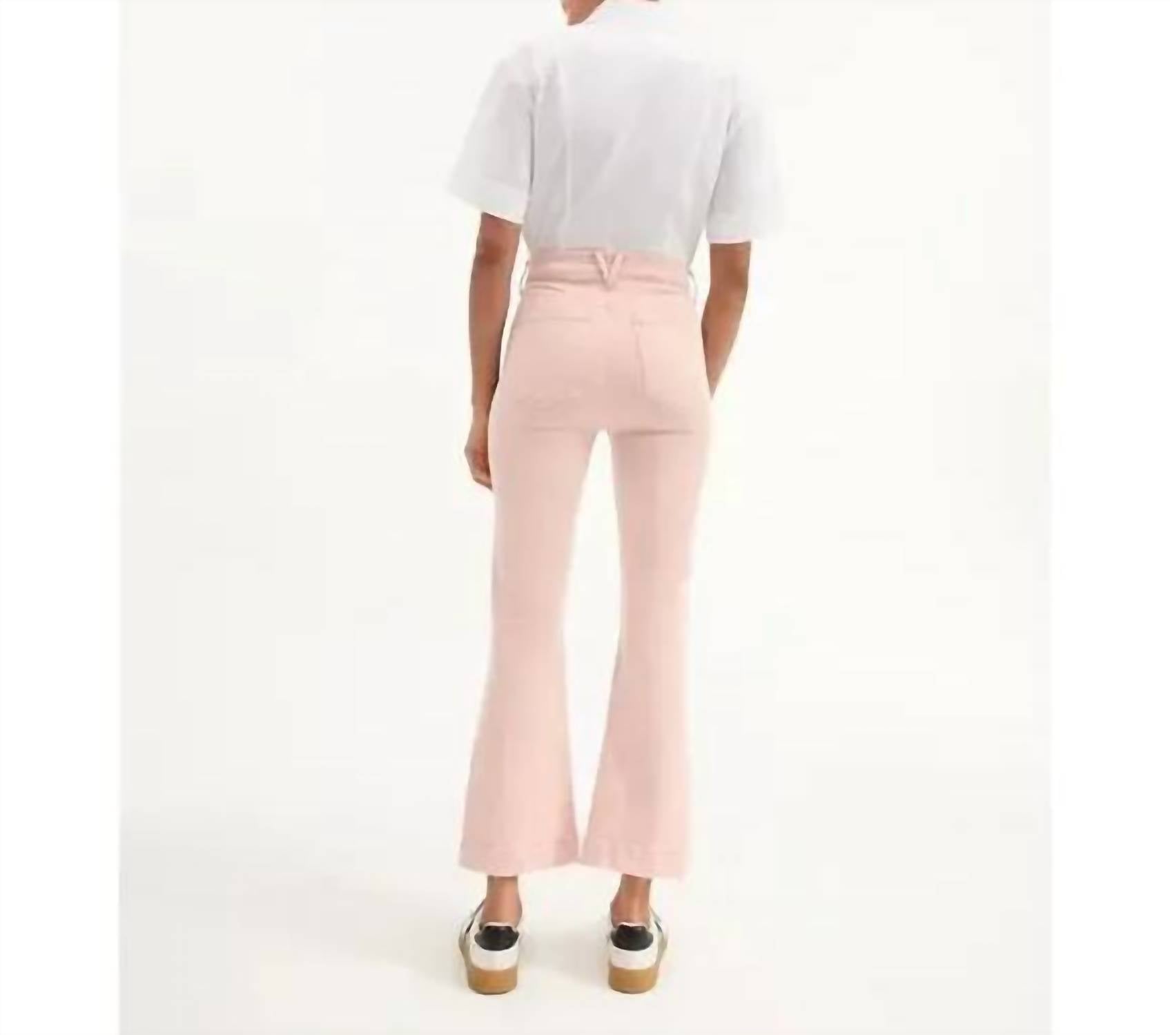 Tuck your favorite tee into these high-waist jeans for a more casual-cool feel. Elevate your spring wardrobe with the Carson High Rise Ankle Flare Jeans by Veronica Beard, designed in an elegant stone pink for a minimalist touch. These women's jeans feature a high-rise waist, flared leg style and solid pattern, delivering both comfort and sophistication. Made from a cotton blend, they boast an 11.5-inch rise and 28-inch inseam, complete with a button closure and functional pockets. Care for these jeans is easy with machine wash instructions, making them perfect for a Thanksgiving holiday party or any seasonal occasion.