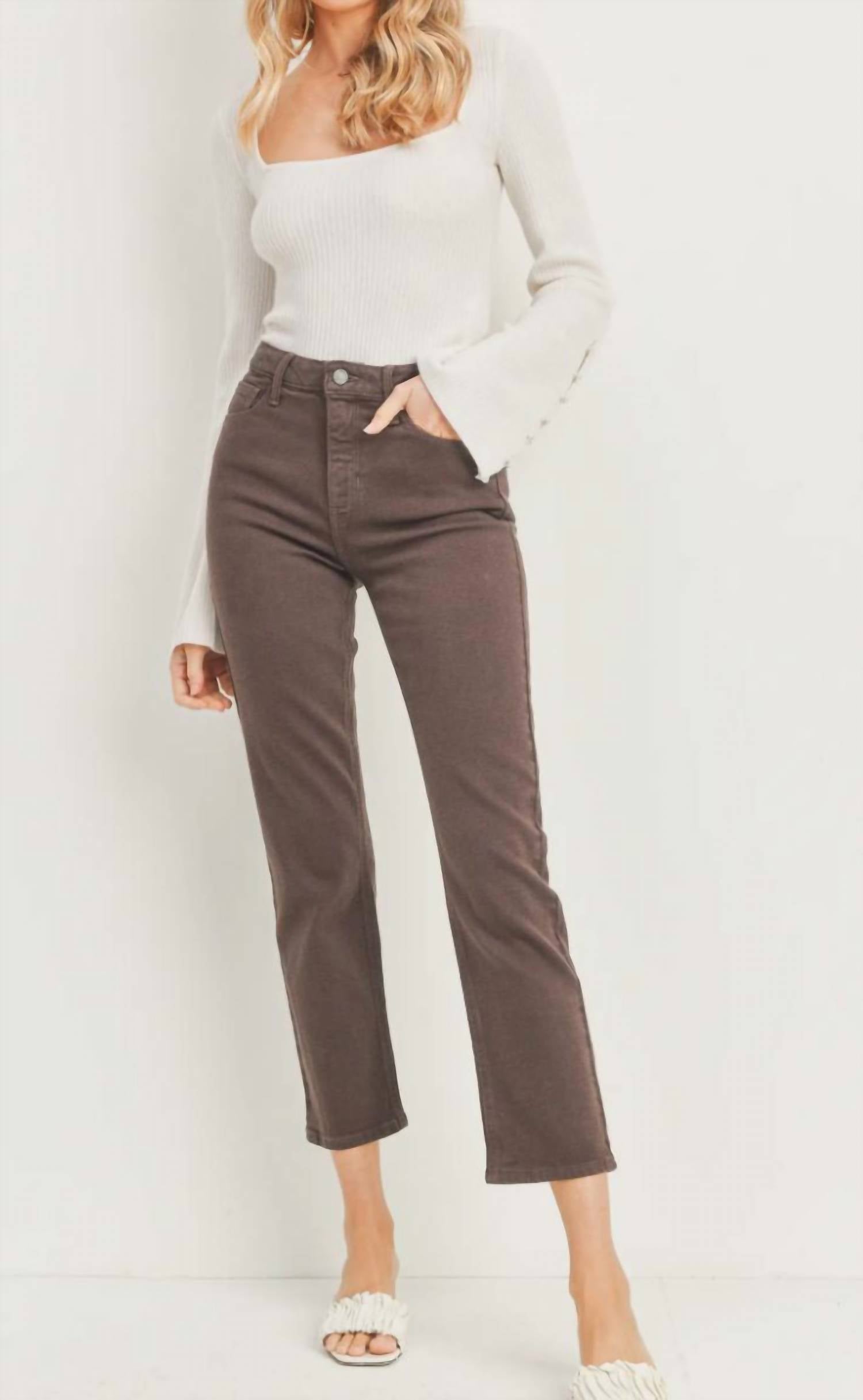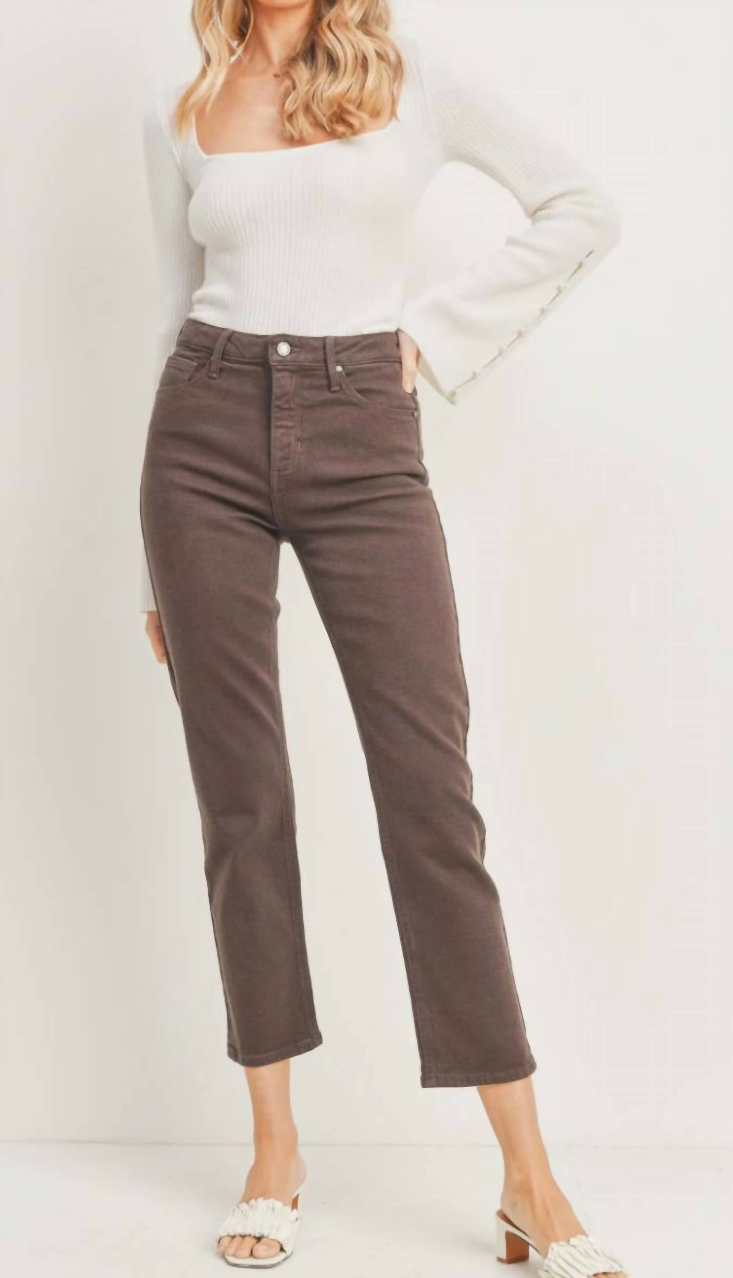 Tuck your favorite tee into these high-waist jeans for a more casual-cool feel. Introducing the High Waisted Jean by JUST BLACK DENIM, a stylish and versatile addition to your wardrobe. These jeans feature a high rise of 10.5 inches and a straight leg with a slim fit, perfect for both casual and sophisticated looks. Made in the USA from 98% cotton and 2% spandex, they offer a comfortable fit that contours to your body. Closure: Button closure. Care: Machine wash cold inside out, lay flat to dry recommended.