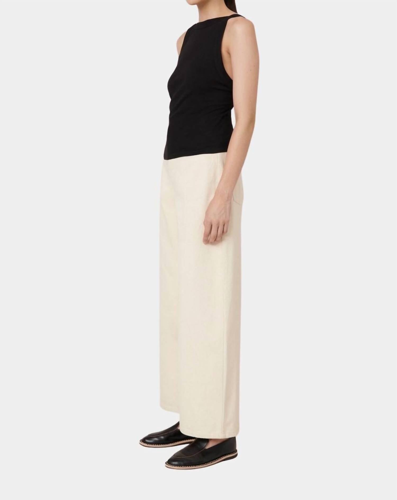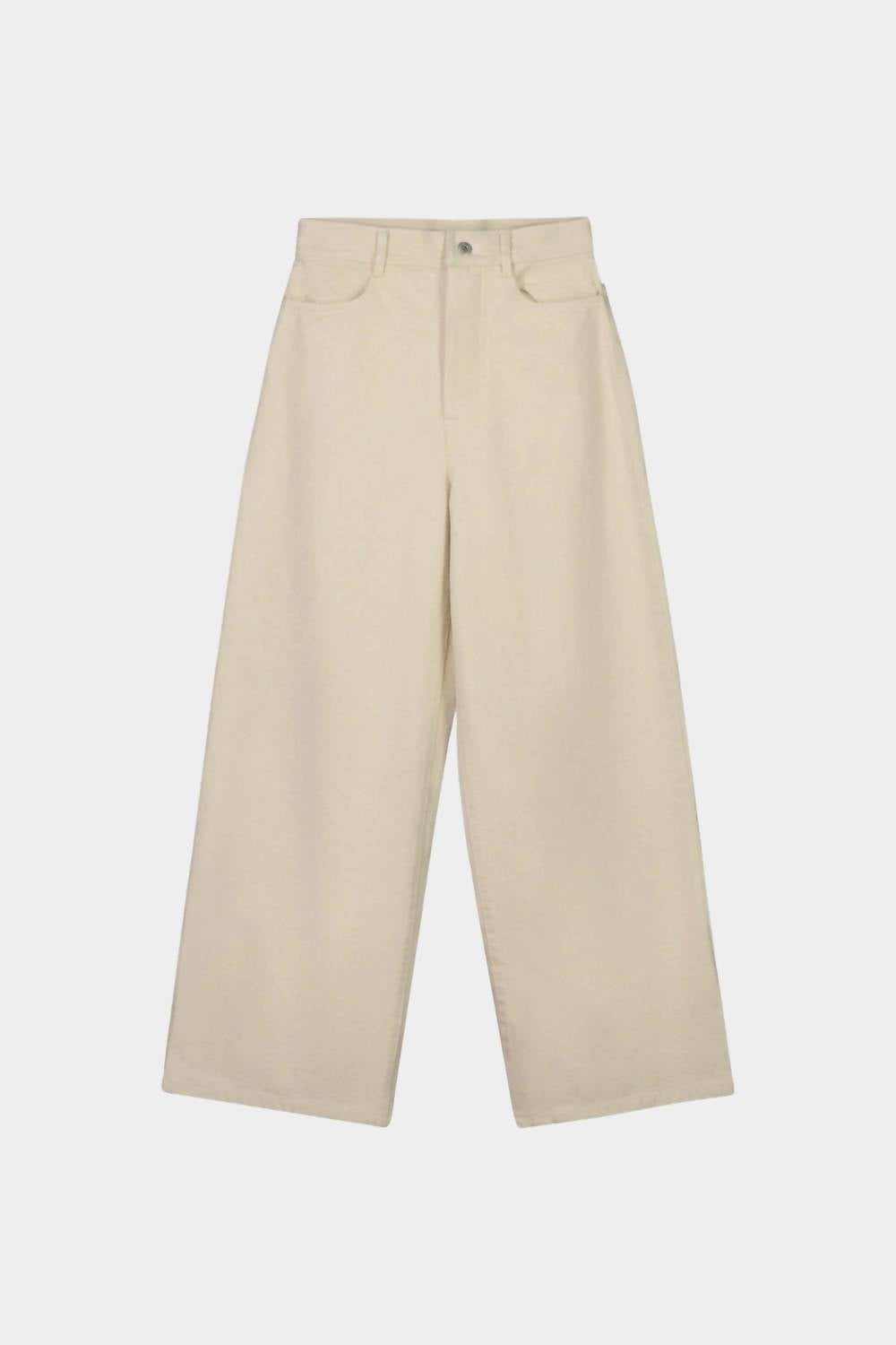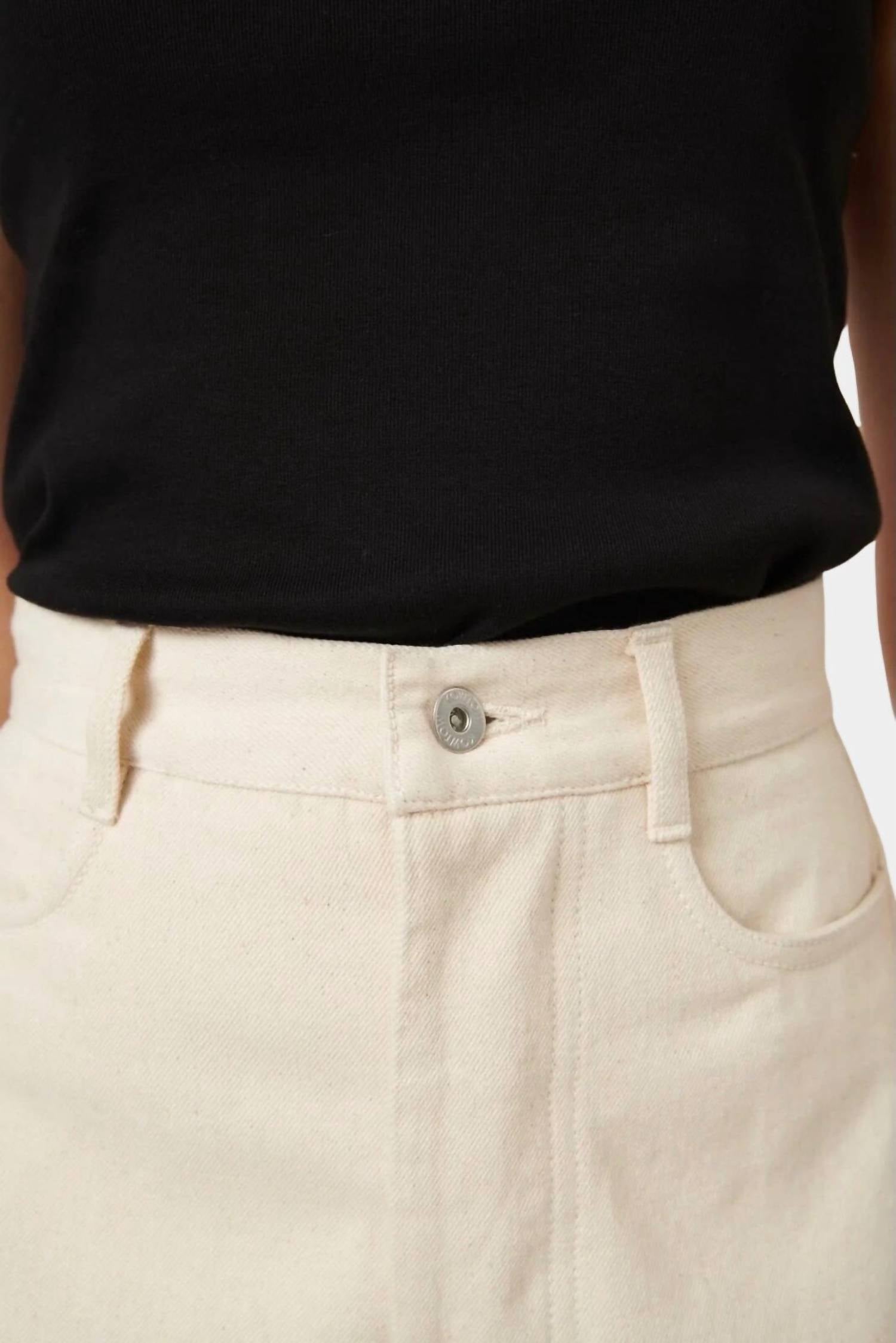 Tuck your favorite tee into these high-waist jeans for a more casual-cool feel. Introducing the Sailor High-rise Jeans by Kowtow, a minimalist choice in ecru denim perfect for any spring occasion. Made for women, these high-rise jeans feature a flattering straight, wide leg fit crafted from 100% certified Fairtrade organic cotton. Originating from New Zealand, the design includes a button closure with practical front and back pockets, enhancing its everyday appeal. Pre-washed for comfort, the fabric will relax with wear, and it measures a waist of 27" and hip of 38" on the model. Care instructions: Machine wash.