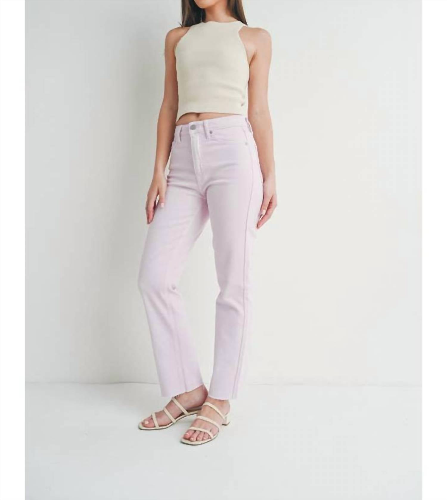 Tuck your favorite tee into these high-waist jeans for a more casual-cool feel. Embrace the summer vibes with the High Rise Cut Off Cropped Straight Leg Jeans by JUST BLACK DENIM, tailored for women who love a chic streetwear look. These jeans come in a refreshing lavender color and feature a high-rise fit with a straight leg style, complete with a zip closure. Crafted from 100% Cotton, they offer both style and comfort, perfect for music festivals or any casual summer occasion. Care for these jeans is a breeze with machine wash and tumble dry instructions.
