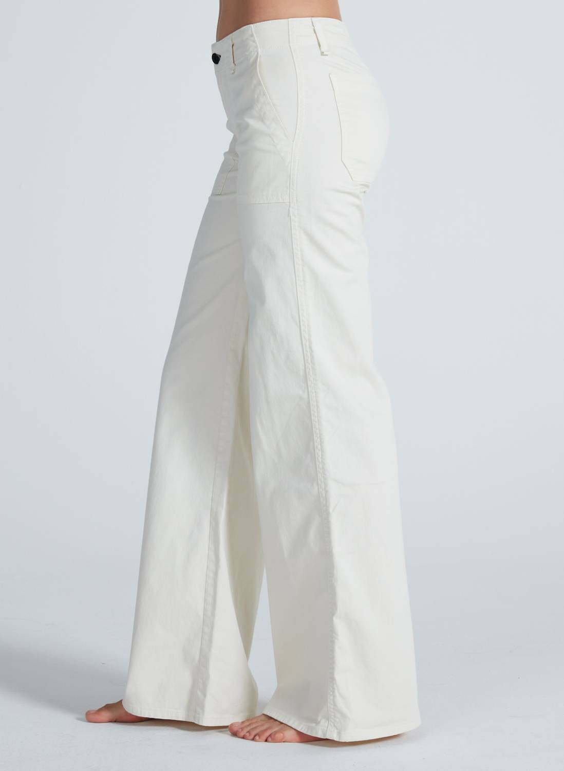 Tuck your favorite tee into these high-waist jeans for a more casual-cool feel. Discover the Women's Boma High Rise Jean by ASKK NY, featuring a flattering high-rise waist and a relaxed fit. These pants are crafted from 100% cotton twill in a solid sand shade, offering versatility and style. The wide-leg design is complemented by a button closure, making it perfect for minimalist, vacation-ready looks. Easy to care for, simply machine wash and tumble dry for convenience.