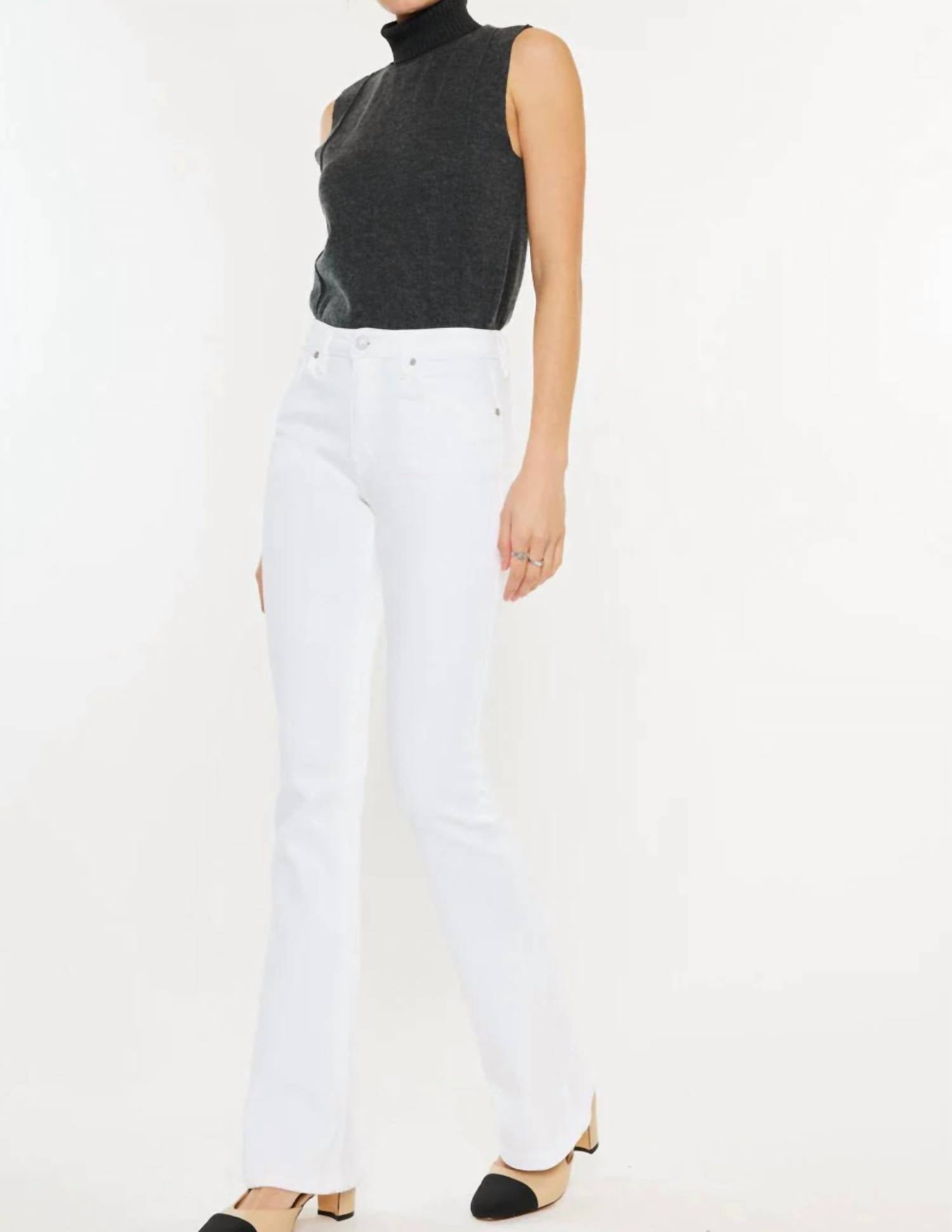 Fit to perfection, we love these high-waist jeans and you will too. Discover the Paulina High Rise Bootcut Jeans by KanCan, a chic addition to any wardrobe. These jeans feature a high-rise waist with a 10" rise and a relaxed fit, complemented by a bootcut leg style and a 33" inseam. Crafted from a cotton blend of 94.7% Cotton, 4% T400, and 1.3% Spandex, they offer comfort and flexibility. Closure: Button closure with a zip-fly. Care: Machine wash and lay flat to dry. Ideal for a minimalist spring look or a laid-back vacation vibe.