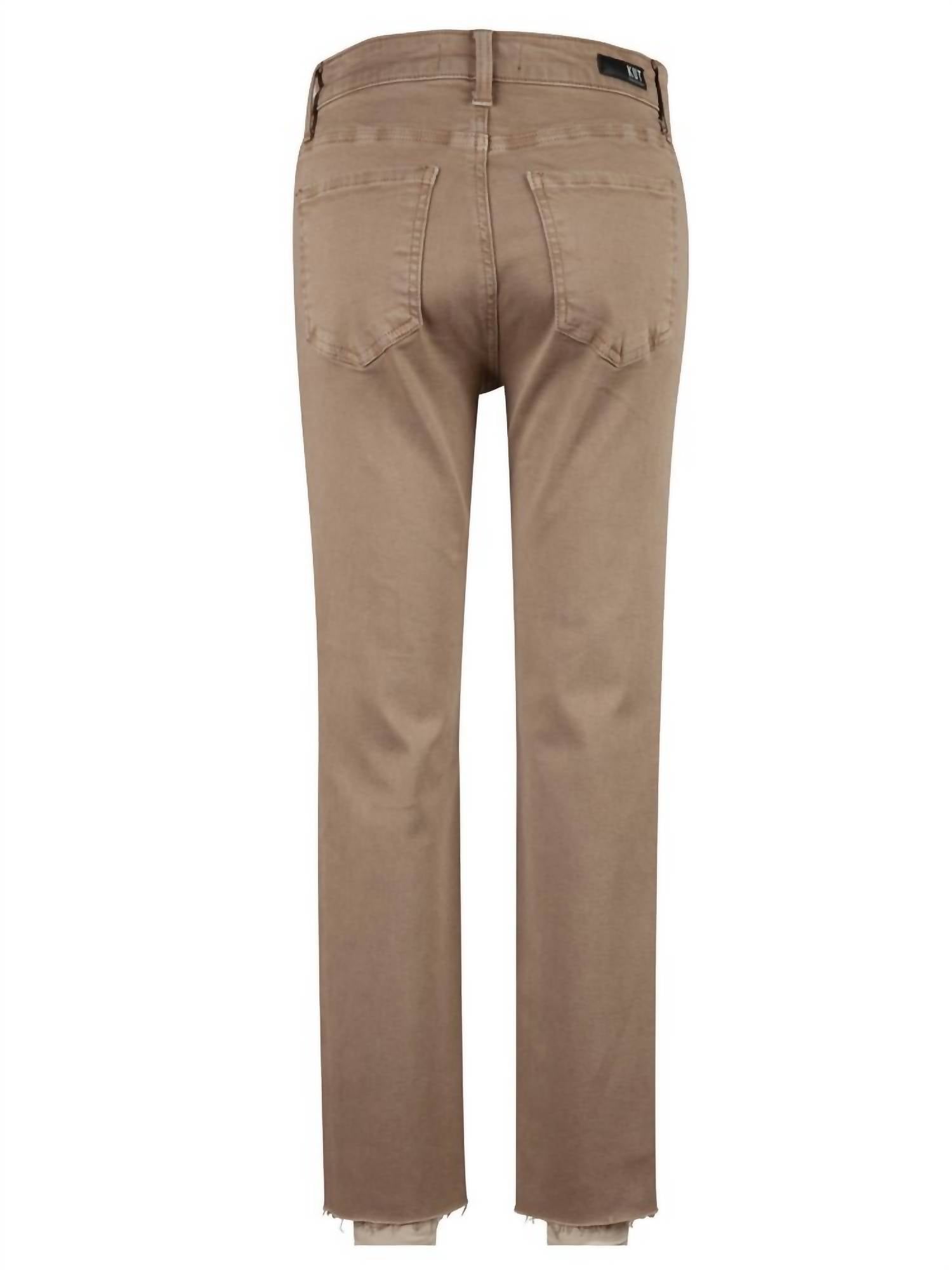 High-waist is here to stay and we especially love this style. Introducing the Rachael Hi Rise Mom Jean by KUT FROM THE KLOTH, a must-have for effortless style in "Emulate" color. Crafted with super stretch denim, this relaxed fit jean features a high rise and a straight leg silhouette with a delicate raw hem. Composition includes 66% Cotton, 30% Repreve Polyester, 3% Viscose, and 1% Spandex, complete with a flattering button closure and practical front pockets. Care for these eco-friendly jeans by machine washing cold inside out and tumble drying low, with an inseam of 26.25" and a rise of 10".