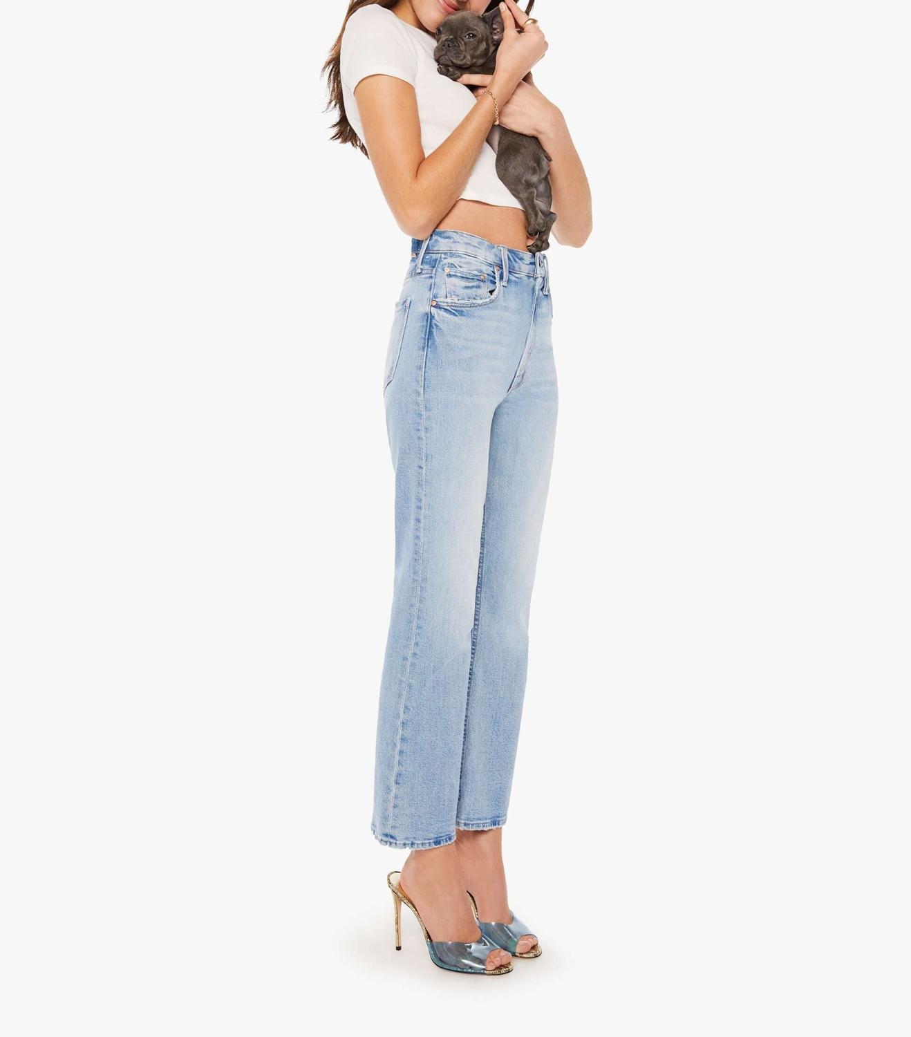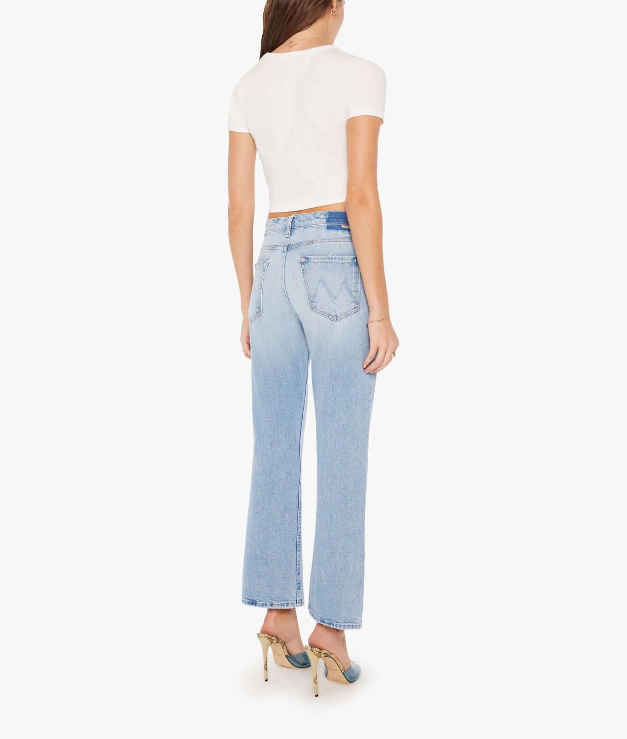 High-waist is here to stay and we especially love this style. Elevate your denim collection with the Scooter Ankle Jeans by Mother, crafted for a chic and casual summer style. These women's high-rise jeans feature a slouchier fit, with a straight leg and a slightly dropped crotch, designed to sit lower on the hips. Made from a light-blue wash cotton blend with 98% Cotton and 2% Elastane, they showcase subtle fading, whiskering, and distressed details. Closure: Button closure. Care: Machine wash and tumble dry.